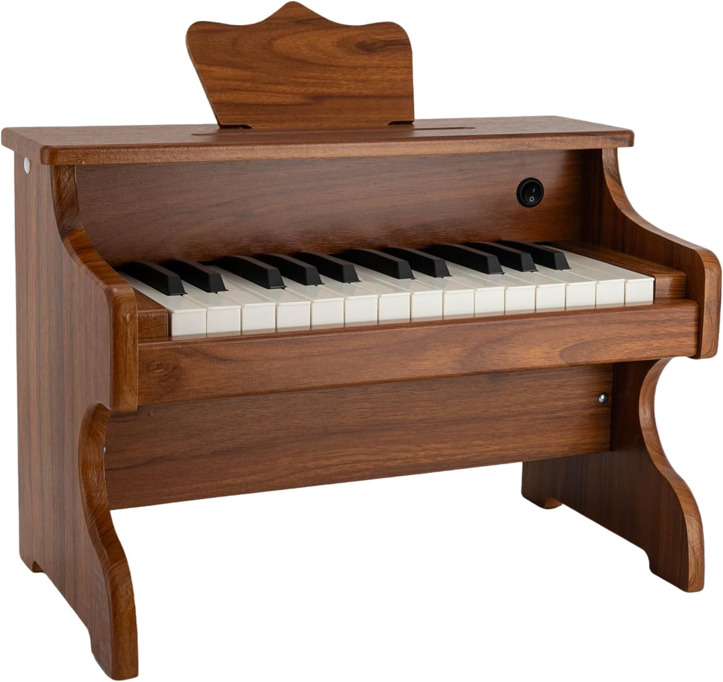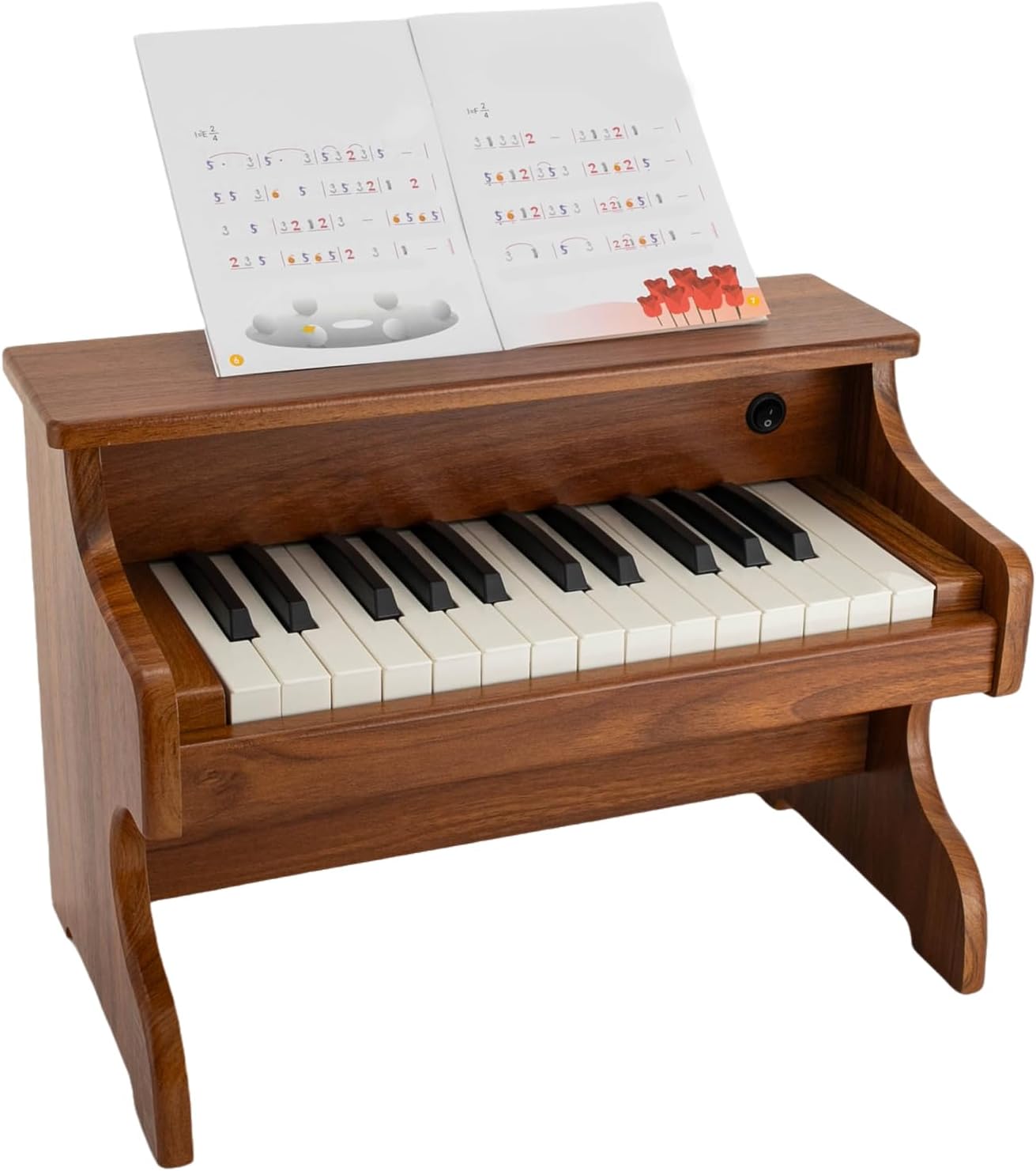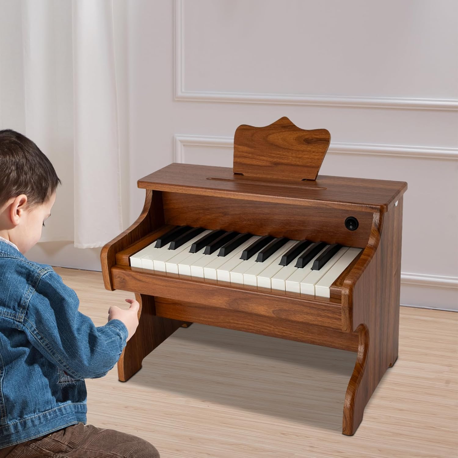Durevole per anni: MDF di alta qualità con superficie impiallacciata lucida e artificiale e ABS di alta qualità hanno un'elevata durezza e durata per resistere all'uso quotidiano del bambino e accompagnare il bambino in ogni fase della crescita. Ottima qualità del suono: con un chip di sorgente sonora indipendente e un tono standard da 440 Hz, questo prodotto ha una qualità del suono chiara e piacevole con bassi ricchi e alti morbidi. Il legno è più spesso della plastica, ha meno vibrazioni e una capacità più forte di assorbire le sfumature, quindi è più piacevole suonare. Progettato per i bambini: in base alla forza delle mani dei bambini, alle dimensioni delle dita e al livello cognitivo dei bambini, il nostro prodotto contiene 25 tasti per pianoforte più adatti alle dita dei bambini, nonché aree basse, medie e alte in grado di soddisfare le esigenze di apprendimento di base dei bambini, rendendo il gioco dei tasti del pianoforte comodo e fluido e aiuta i bambini con l'età e l'esperienza a un grande pianoforte intorno salire. Portatile e facile da riporre: le dimensioni compatte (16,7 x 9,3 x 11,6 pollici) e il peso ridotto (11,02 lbs) lo rendono facile da spostare e riporre senza occupare troppo spazio, adatto per l'uso flessibile in diversi spazi all'interno della casa, e anche facile da trasportare per i viaggi. Strumento educativo musicale: i bambini di tre anni sono più sensibili ai suoni, il nostro pianoforte per bambini può facilitare l'educazione musicale dei bambini, mobilitare le mani per coordinare la flessibilità delle dita, promuovere lo sviluppo del cervello e la coltivazione dell'intelligenza emotiva, migliorare l'immaginazione e fornire una piacevole opzione per l'intrattenimento senza schermo.