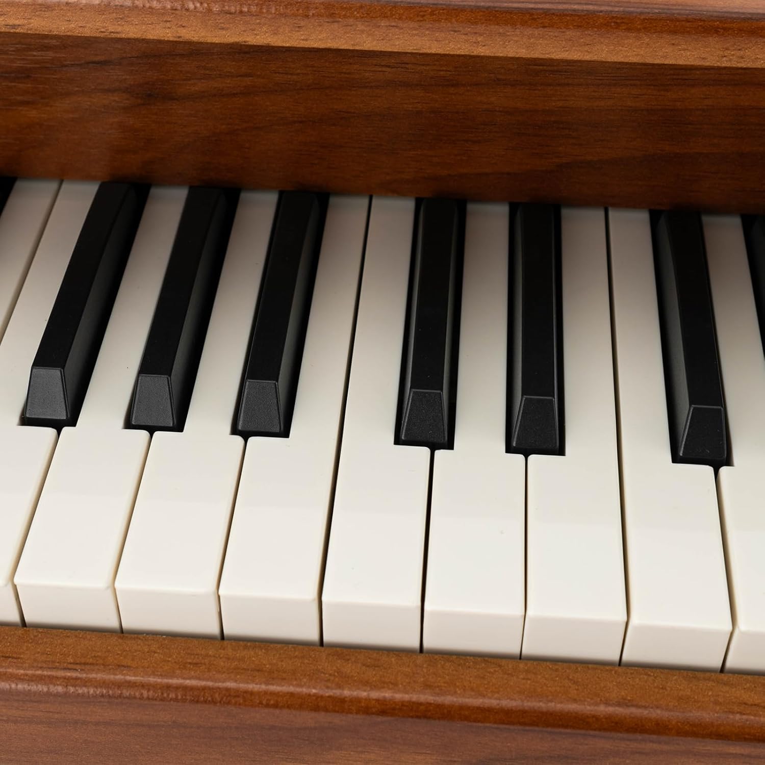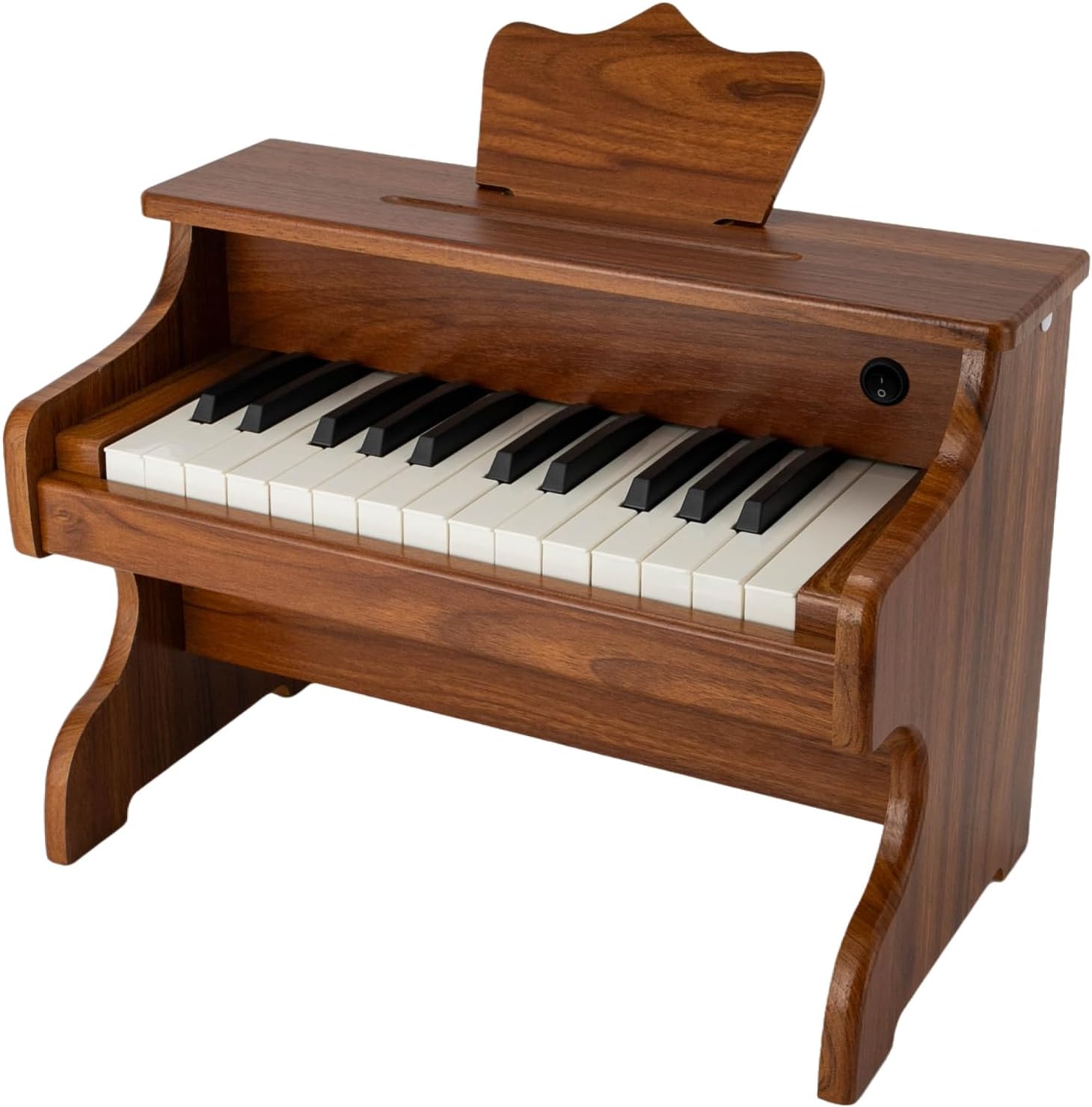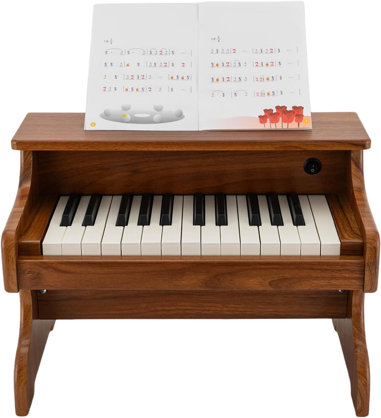 Durevole per anni: MDF di alta qualità con superficie impiallacciata lucida e artificiale e ABS di alta qualità hanno un'elevata durezza e durata per resistere all'uso quotidiano del bambino e accompagnare il bambino in ogni fase della crescita. Ottima qualità del suono: con un chip di sorgente sonora indipendente e un tono standard da 440 Hz, questo prodotto ha una qualità del suono chiara e piacevole con bassi ricchi e alti morbidi. Il legno è più spesso della plastica, ha meno vibrazioni e una capacità più forte di assorbire le sfumature, quindi è più piacevole suonare. Progettato per i bambini: in base alla forza delle mani dei bambini, alle dimensioni delle dita e al livello cognitivo dei bambini, il nostro prodotto contiene 25 tasti per pianoforte più adatti alle dita dei bambini, nonché aree basse, medie e alte in grado di soddisfare le esigenze di apprendimento di base dei bambini, rendendo il gioco dei tasti del pianoforte comodo e fluido e aiuta i bambini con l'età e l'esperienza a un grande pianoforte intorno salire. Portatile e facile da riporre: le dimensioni compatte (16,7 x 9,3 x 11,6 pollici) e il peso ridotto (11,02 lbs) lo rendono facile da spostare e riporre senza occupare troppo spazio, adatto per l'uso flessibile in diversi spazi all'interno della casa, e anche facile da trasportare per i viaggi. Strumento educativo musicale: i bambini di tre anni sono più sensibili ai suoni, il nostro pianoforte per bambini può facilitare l'educazione musicale dei bambini, mobilitare le mani per coordinare la flessibilità delle dita, promuovere lo sviluppo del cervello e la coltivazione dell'intelligenza emotiva, migliorare l'immaginazione e fornire una piacevole opzione per l'intrattenimento senza schermo.