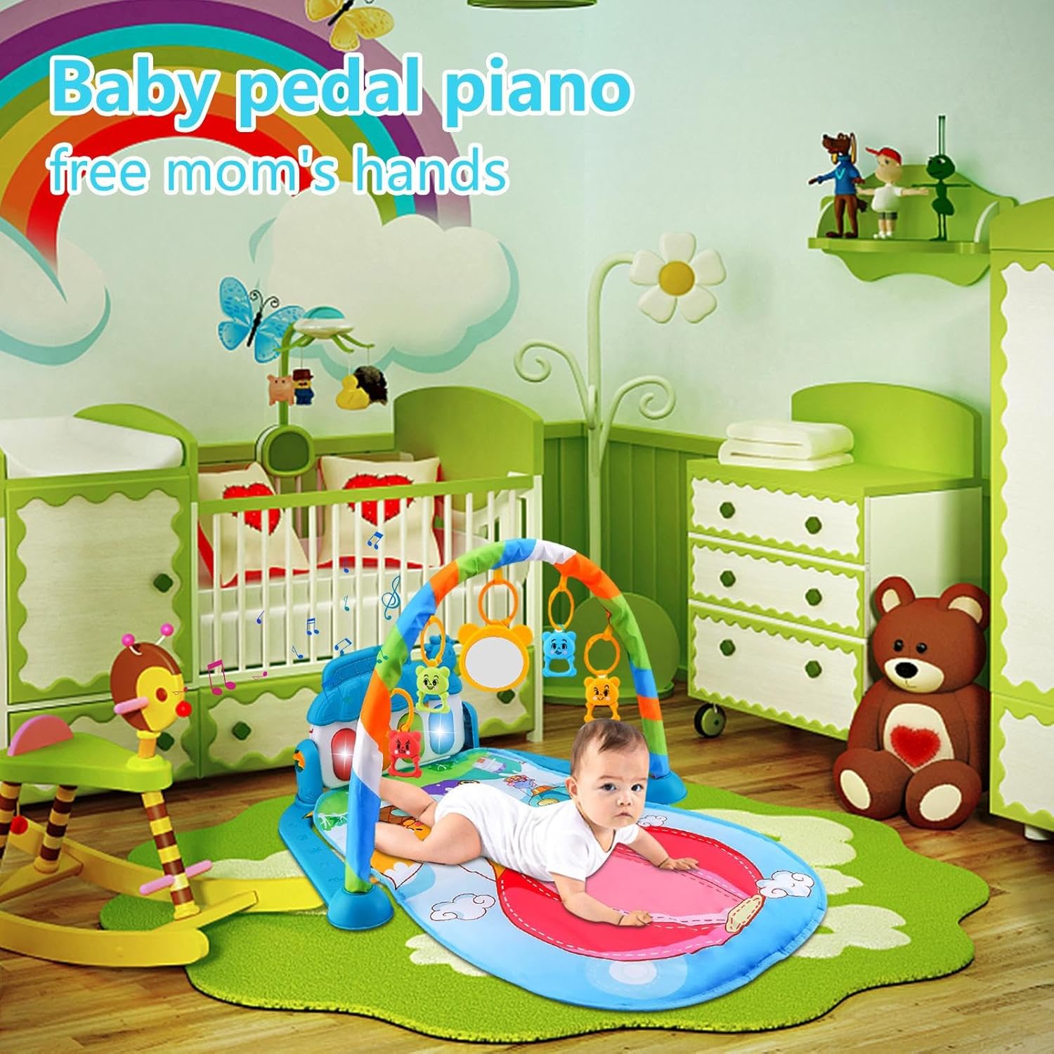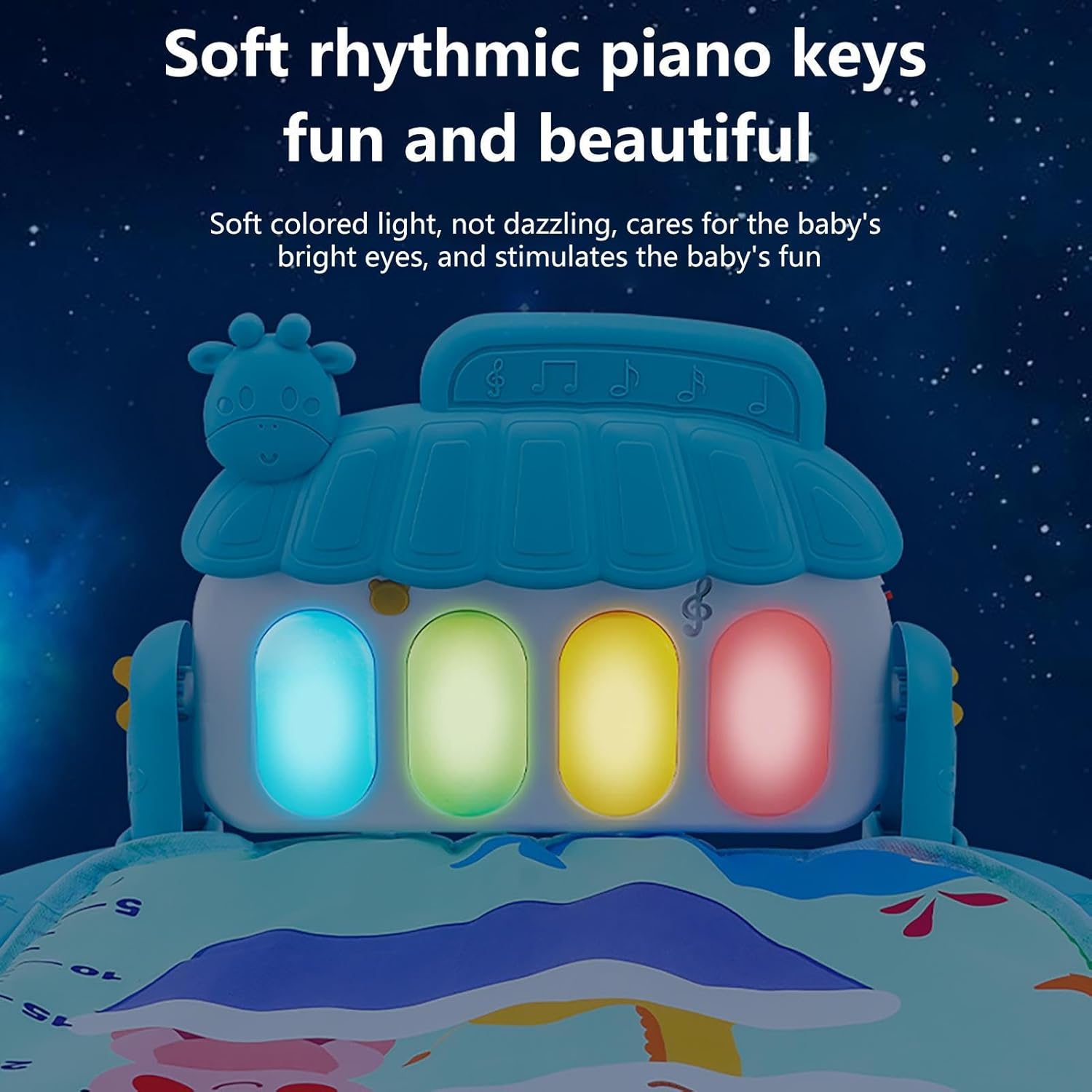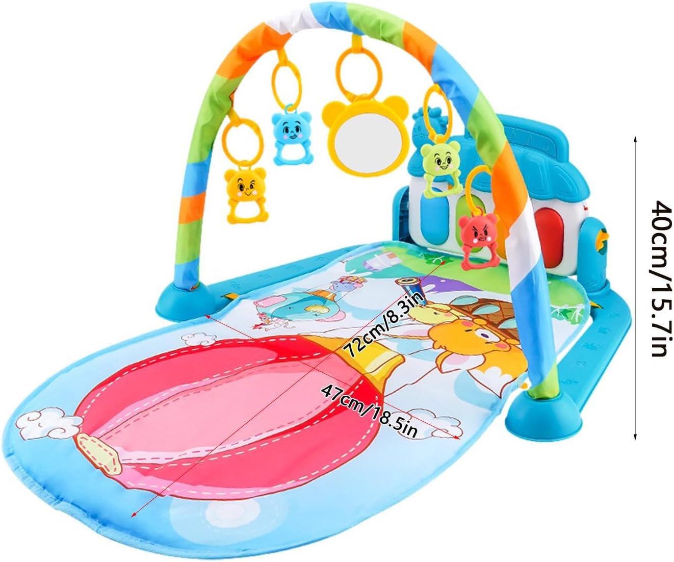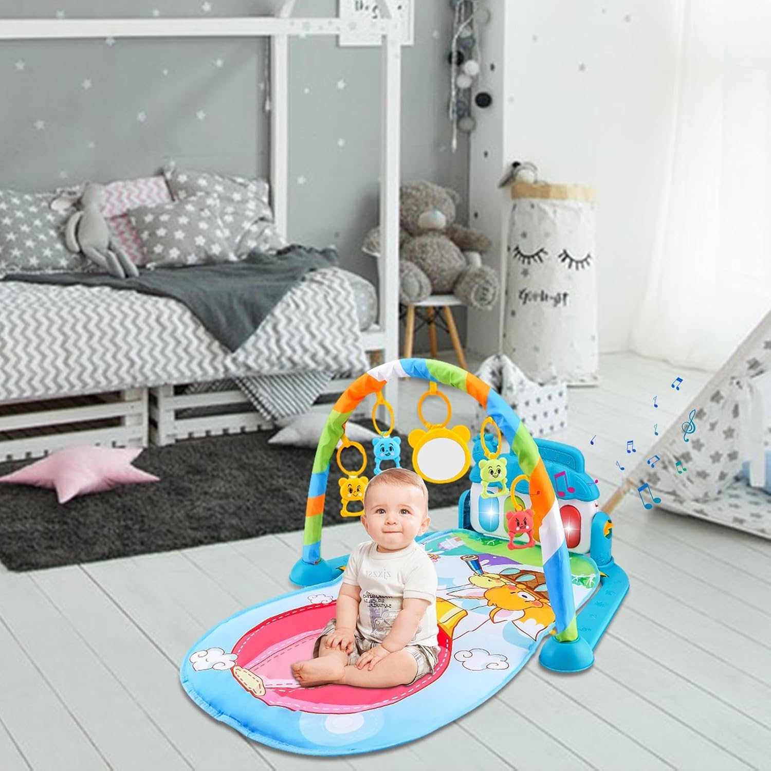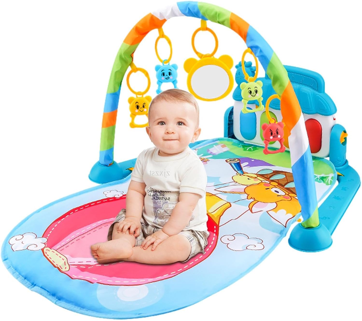 da gioco interattivo: questa palestra di attività per bambini è dotata di caratteristici che consentono ai bambini di giocare sul in vari modi. Possono sedersi, sdraiarsi, calciare, colpire e divertirsi. Inoltre è dotato di molte modalità musicali che stimolano le capacità di ascolto, applausi e calci dei bambini. Materiale di alta qualità: questa palestra per attività infantili aiuta il bambino a crescere e svilupparsi con giocattoli divertenti ed educativi che migliorano le sue capacità sensoriali e motorie. È realizzato con materiali sicuri e delicati sulla pelle che offrono al bambino un luogo morbido e confortevole su cui riposare. Stimolante e coinvolgente: questa palestra di attività per bambini offre una varietà di forme e motivi luminosi che attirano l'attenzione dei bambini e migliorano il riconoscimento del colore e della forma. Inoltre viene fornito con giocattoli morbidi e pieghevoli che incoraggiano lo sviluppo delle capacità motorie e della destrezza delle dita. Centro attività giocoso e stimolante: questa palestra per attività infantili ha 5 giocattoli colorati rimovibili che pendono dagli , invitando il bambino a giocare e interagire. Il morbido e lussuoso da gioco stimola i sensi e la coordinazione fisica del bambino. Regalo sorprendente: questa palestra di attività consente a figlio di premere i pulsanti delle e ascoltare dolci melodie, oltre a guardare le luci scintillanti che . È un regalo per la festa dei bambini, il compleanno o qualsiasi giorno speciale per deliziare e stimolare il bambino.