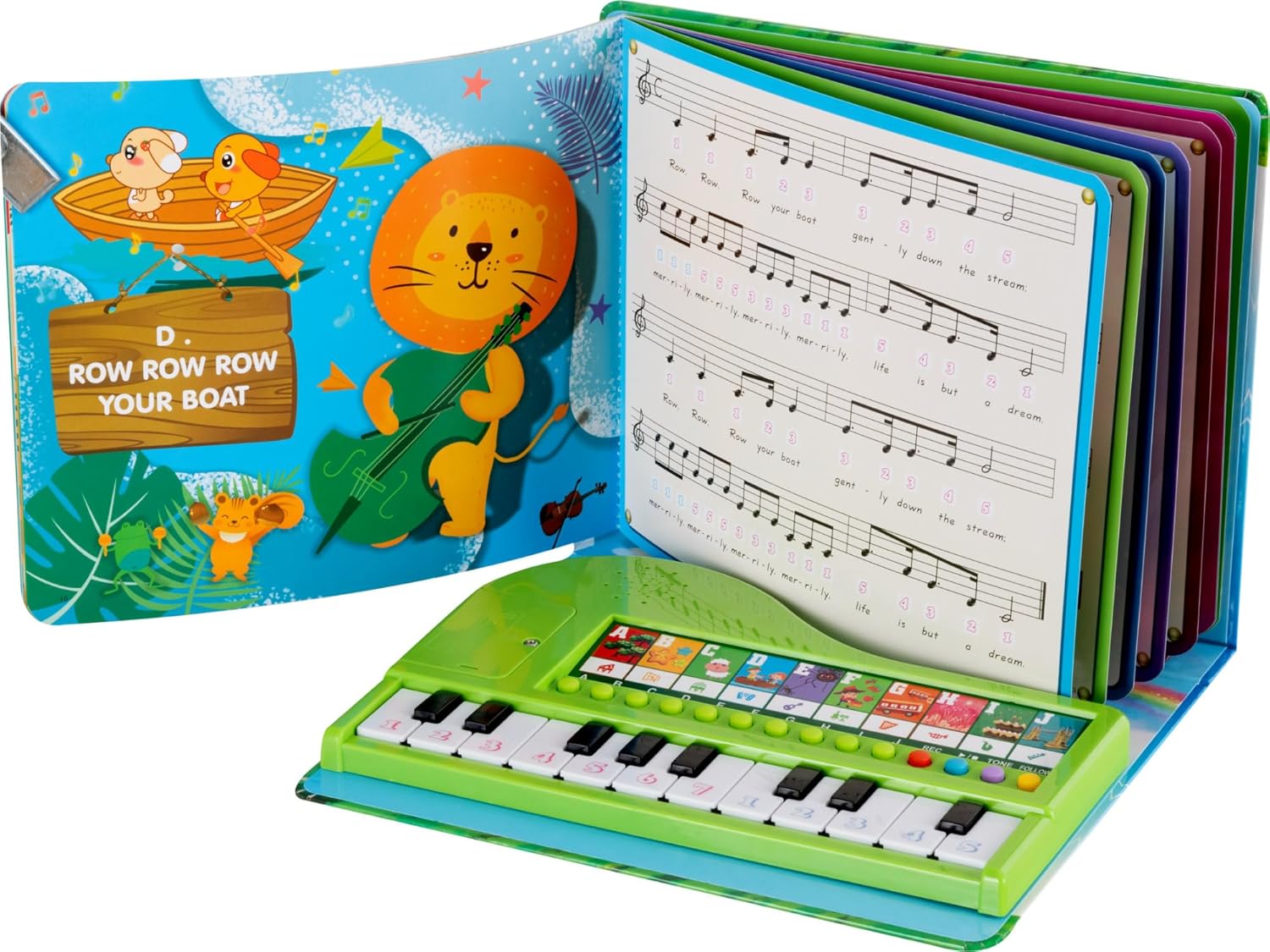 Esplorazione Musicale Formativa: Progettato con tasti sensibili che incoraggiano l'esercizio delle funzioni motorie, perfezionano la sincronizzazione tra vista e movimento e supportano lo sviluppo del senso ritmico attraverso l'interazione musicale intuitiva Esperienza Musicale Condivisa: Arricchite la relazione genitore-figlio con sessioni interattive di esplorazione ritmica, creando ricordi gioiosi attraverso lezioni musicali coinvolgenti Creatività Ritmica Guidata: Proposta educativa con tre livelli di gioco che unisce comprensione del ritmo e divertimento artistico, ideale per lo sviluppo cognitivo attraverso la musica Design a misura di bambino: Superficie opaca antiscivolo e bordi studiati per proteggere i più piccoli, realizzato con materiali tattili che assicurano comfort e stabilità durante il gioco musicale Regalo Educativo: Strumento musicale con design a animali , sviluppato per incoraggiare la creatività durante l'infanzia. Giocattolo come regalo di compleanno che unisce gioco e sviluppo cognitivo