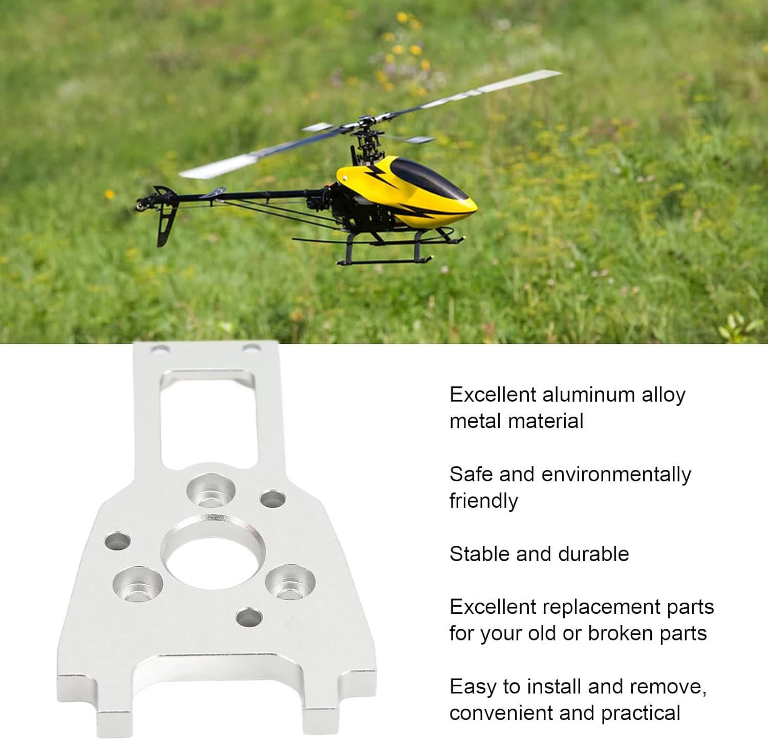 Materiale: la piastra centrale dell'elicottero RC è leggera, ha una buona robustezza e resistenza alla corrosione. LEGA DI ALLUMINIO STABILE: la piastra centrale dell'elicottero RC è realizzata in eccellente materiale metallico in lega di alluminio, sicuro ed ecologico, stabile. Si adatta bene: queste sono le parti originali dell'elicottero, si adattano perfettamente al modello originale, non devi preoccuparti. BUONA SOSTITUZIONE: la piastra centrale in metallo dell'elicottero RC in lega di alluminio è l'eccellente parte di ricambio per le parti vecchie o rotte, facile da installare e rimuovere, comoda e pratica STABILE: il pezzo di ricambio argento per elicottero RC presenta una struttura stabile, prestazioni eccellenti e lunga durata