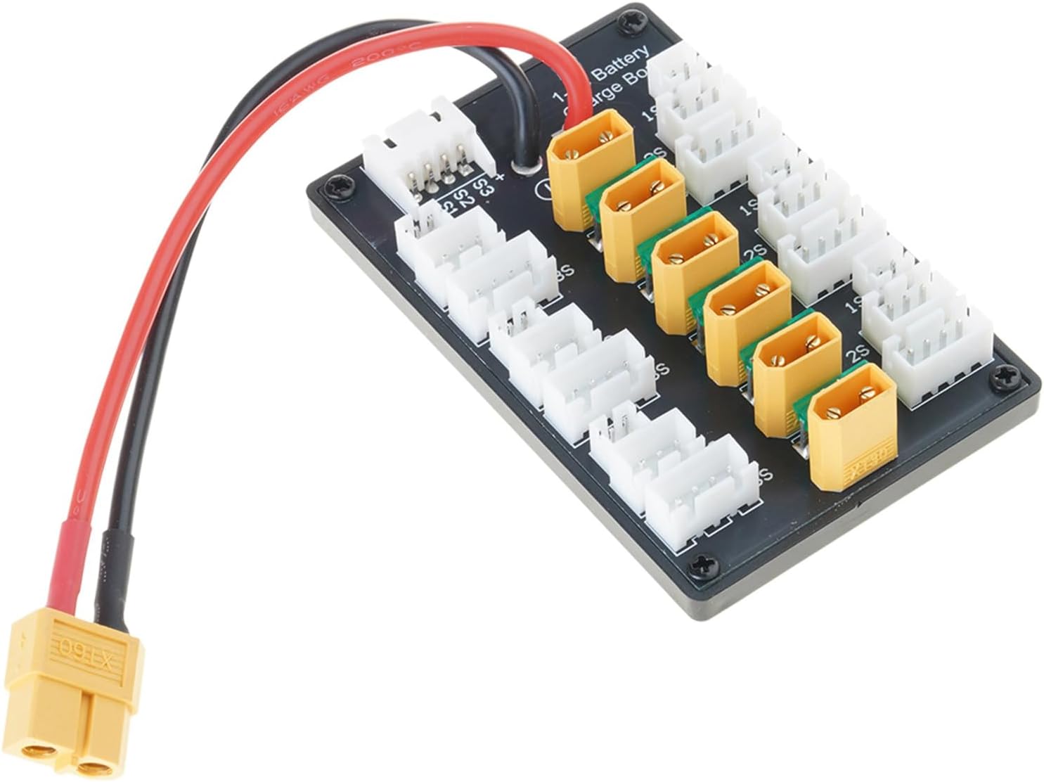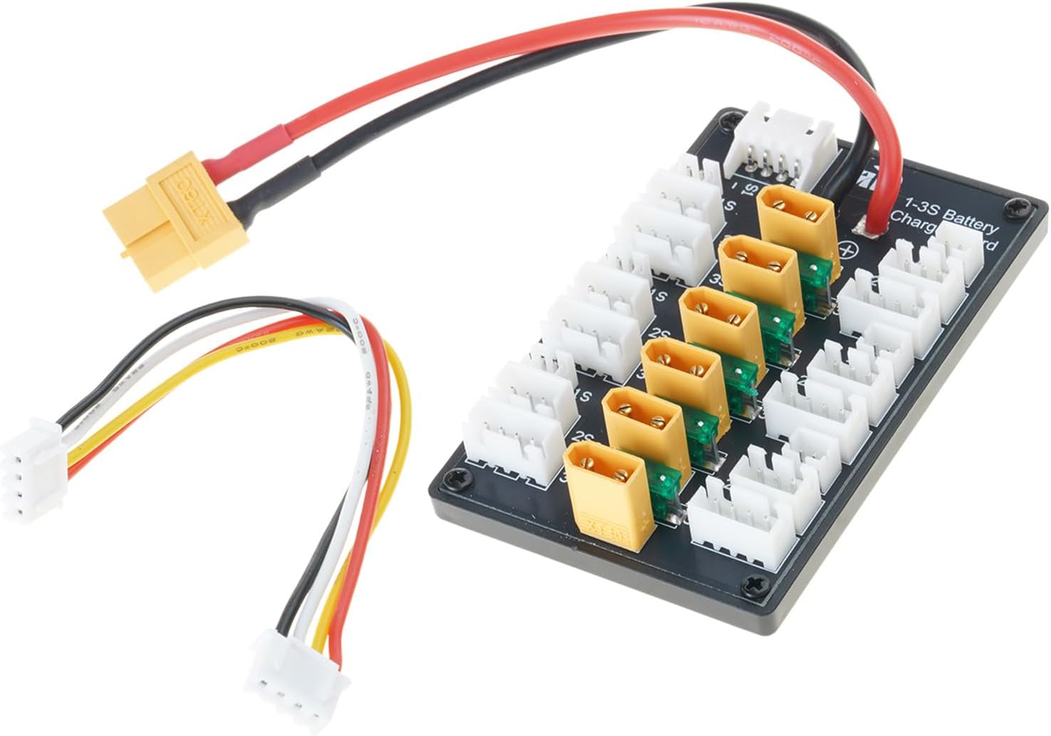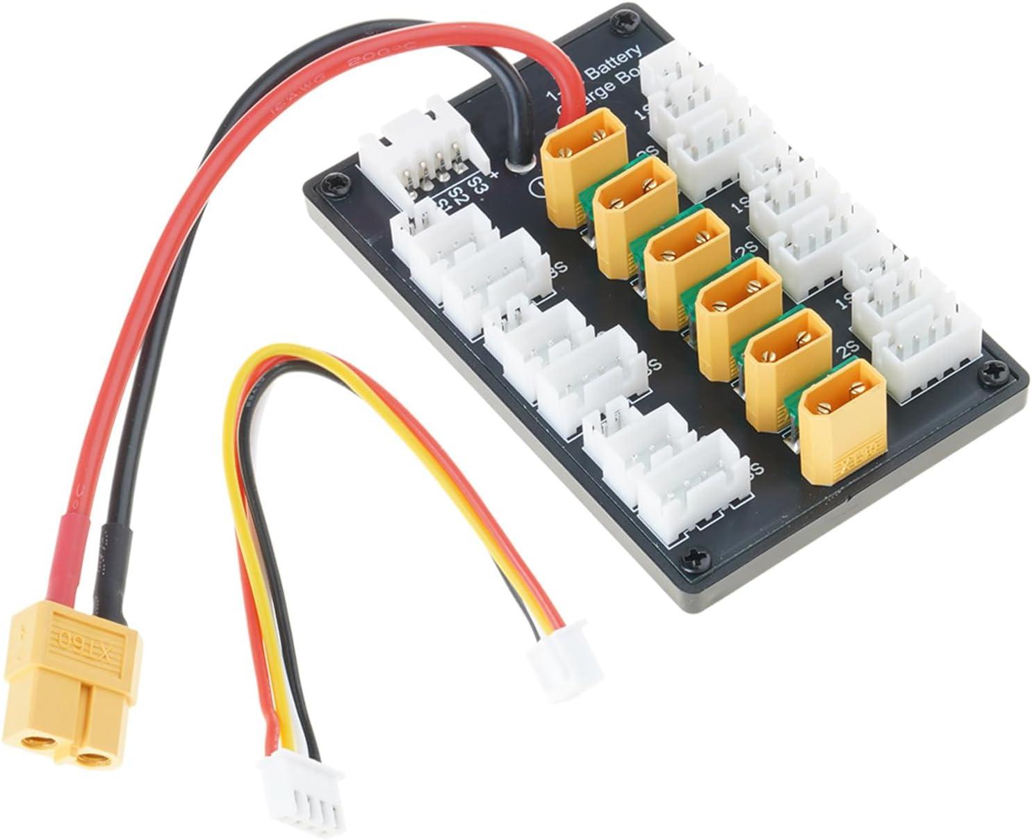 Compatibile B6 che rende necessario uno strumento essenziale per caricare la batteria veloce e affidabile Per gli appassionati di droni e hobbisti modello remoto, questo modello di ricarica consente agli utenti di caricare più batterie contemporaneamente e migliorare il tempo di volo e l'efficienza operativa. perfetto per attività all'aperto, lavori di laboratorio o progetti domestici e offre una soluzione flessibile ed efficiente per le batterie Lipro facilmente. XT30 Parallel Lading Board per una ricarica efficiente e supporta fino a 20 A di ricarica. Nella progettazione Durlility, questa scheda contiene un cavo in silicio 18AWG per l'uscita equilibrata, che garantisce un uso prolungato e una facile connessione senza cablaggio complesso.