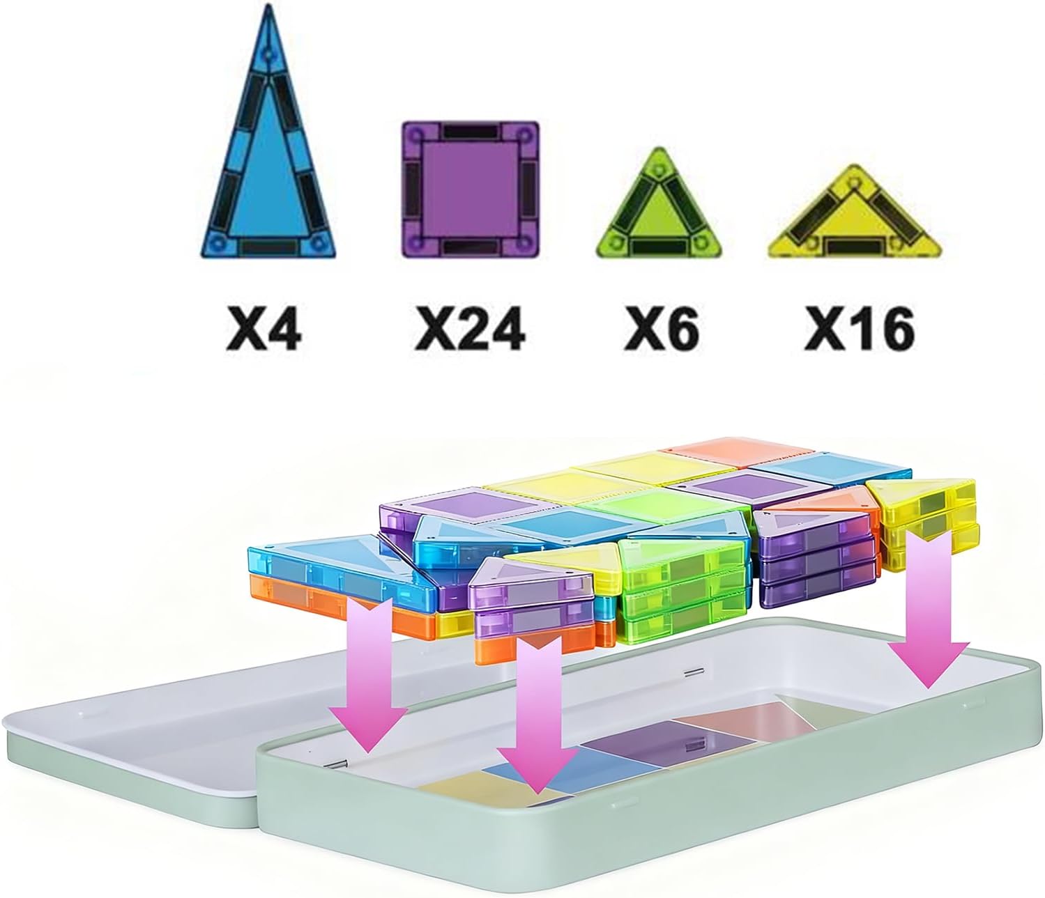 【Mini magnetico per i viaggi – sempre pronto per il gioco】Queste mini pietre magnetiche per bambini sono il compagno di viaggio perfetto, sia in aereo, treno o auto. Semplicemente togliere dalla tasca e mettere! Das kompakte Magnetspiel entusiasma bambini a partire da 3 4 5 6 7 anni per ore. Ideale come giocattolo magnetico per i viaggi – pietre magnetiche, giochi magnetici per bambini e piastrelle magnetiche in un set! 【Piastrelle magnetiche & dose】Le mini piastrelle magnetiche hanno bordi impugnabili e si possono collegare senza soluzioni di continuità. Dimensioni della scatola: 20cm x 12cm x 2cm, sviluppato appositamente per il gioco in viaggio, si adatta facilmente in una borsa o in uno zaino. Tutte le 50 pietre magnetiche si adattano esattamente alla scatola. Abbiamo allegato una mini istruzione di costruzione per poter iniziare subito! 【Scatola in metallo stabile】La scatola di stoccaggio in metallo, facile da viaggiare, serve allo stesso tempo come base magnetica per la costruzione di torri stabili e garantisce un ordine risparmioso di spazio per le 50 parti. 【Idee regalo per famiglie】Giocattolo pedagogico a partire da 3 anni, promuove la motorizzazione fine e la risoluzione creativa dei problemi – perfetto per giocare insieme o come regalo per compleanni e Natale. 【Regalo perfetto per ragazzi e ragazze】Che sia per il compleanno, per Natale o semplicemente così - questo giocattolo in pietre magnetiche è il regalo ideale per bambini a partire dai 3 anni. Adatto per scuola, asilo, attività di gruppo e viaggi. Amato da genitori, nonni e insegnanti. Magnetspielzeug Kinder – creativo, pedagogicamente prezioso e pieno di divertimento!