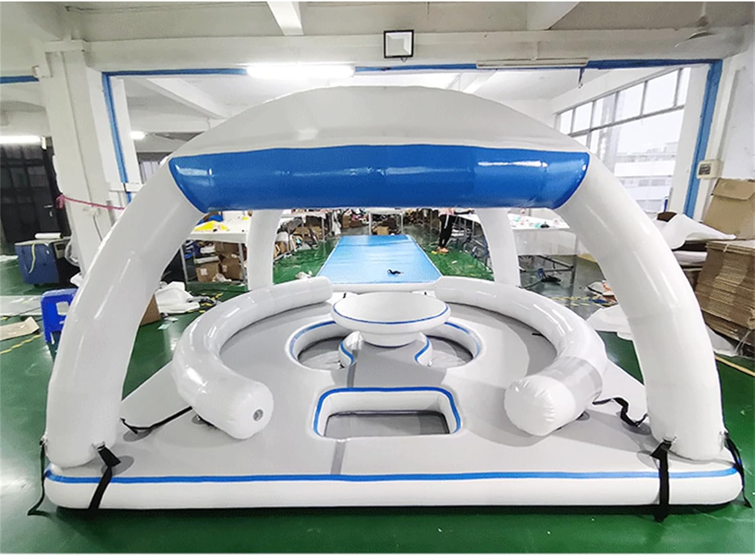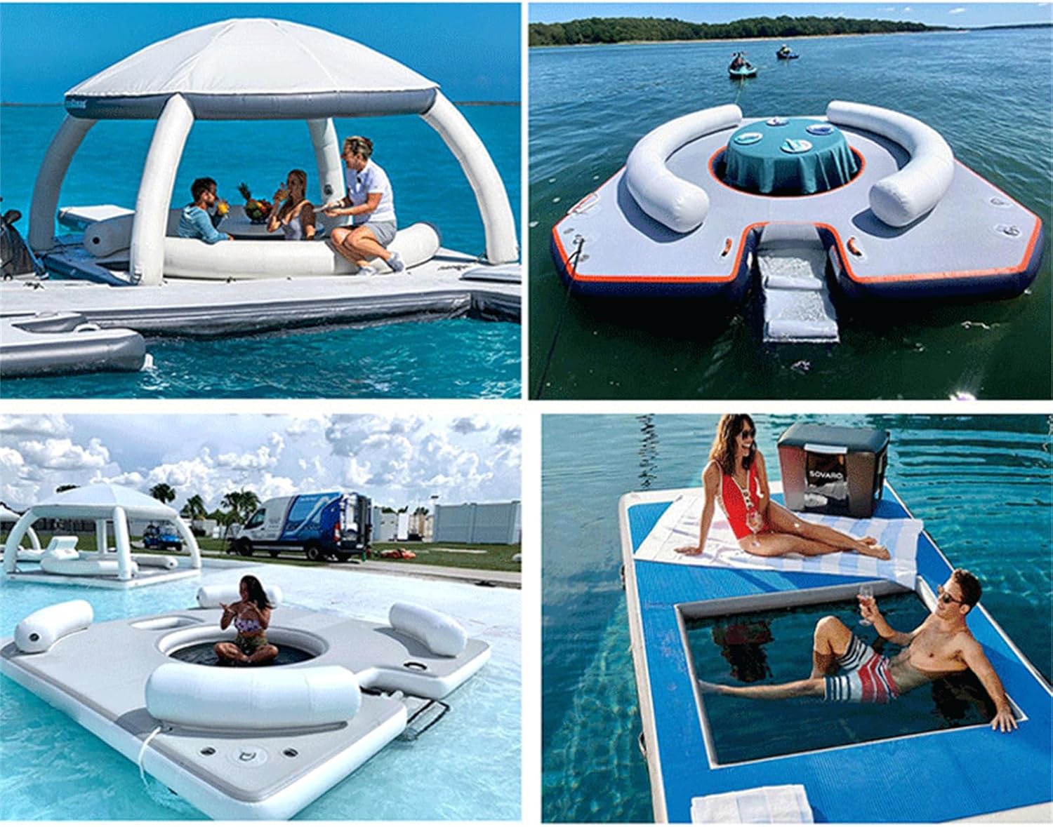 MATERIALE AD ALTA RESISTENZA: il nostro gigantesco pontile galleggiante sul lago è realizzato in PVC di alta qualità, leggero e resistente. Utilizziamo il materiale dell'ago più resistente del settore. Strato ad alta resistenza appositamente prodotto con eccellente ritenzione dell'aria. La superficie ha uno strato antiscivolo, la trama è chiara, bella e piena. fare sport GARANTISCE UN SONNO SANO: A seconda della posizione di sonno del corpo umano e delle esigenze ossee, il corpo e il materasso possono adattarsi perfettamente per mantenere il miglior stato di sonno. La sua robusta struttura a trave elicoidale lo rende non solo divertente ma confortevole e fornisce stabilità per l'uso come letto notturno. SOLO MATERIALI DI QUALITÀ: Il divano è realizzato in PVC resistente all'usura ad alta densità, combinato con la tecnologia di termosaldatura ad alta frequenza. CONVENIENZA: pensando alla comodità, puoi dedicare più tempo a divertirti e creare ricordi con meno crampi e meno tempo trascorso in acqua. Il gonfiabile è progettato per essere la perfetta stazione di lancio per il resto della tua attrezzatura per sport acquatici. La piattaforma ti dà la possibilità di attaccare facilmente la tua attrezzatura, fare a turno o rilassarti con gli amici.