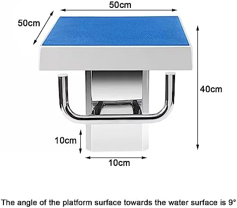1. FACILE DA MANUTENZIONE: la nostra attrezzatura subacquea misura 50x50x40 cm, offrendo ampio spazio per tutti gli utenti. Basta usare un panno umido per mantenere pulita la superficie. 2. DESIGN INCLINATO: la parte superiore della piattaforma per i tuffi è inclinata di 9° rispetto alla superficie dell'acqua, in modo che i nuotatori possano afferrare la piattaforma in modo stabile e sporgersi in avanti. Il blocco di partenza è adatto per giocatori professionisti individuali e competizioni. 3. RESISTENTE E SICURA: Realizzata in robusto acciaio inossidabile 304, la nostra piattaforma per immersioni è antiruggine e adatta all'uso esterno. Con una capacità di carico fino a 274 kg, puoi goderti le immersioni in tutta sicurezza. Il materiale in resina antiscivolo con dense particelle concavo-convesse riduce il rischio di scivolamenti e cadute, mentre il bordo liscio previene le lesioni. 4. COMODO DA USARE: La piattaforma per tuffi in piscina è stata progettata con una configurazione unitaria, non necessita di assemblaggio. Include quattro bulloni di espansione in acciaio inossidabile per un fissaggio sicuro sul bordo della piscina. Facile da installare sulla piscina attuale e non è necessario pretrattarla durante la costruzione. 5.AMPIO UTILIZZO: la piattaforma per tuffi da piscina è adatta per piscine private, impianti sportivi e varie competizioni professionali.
