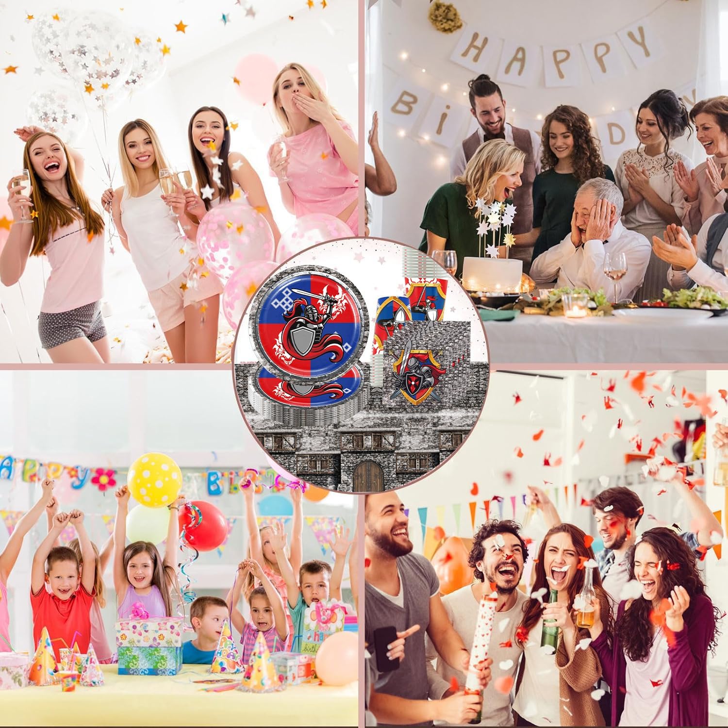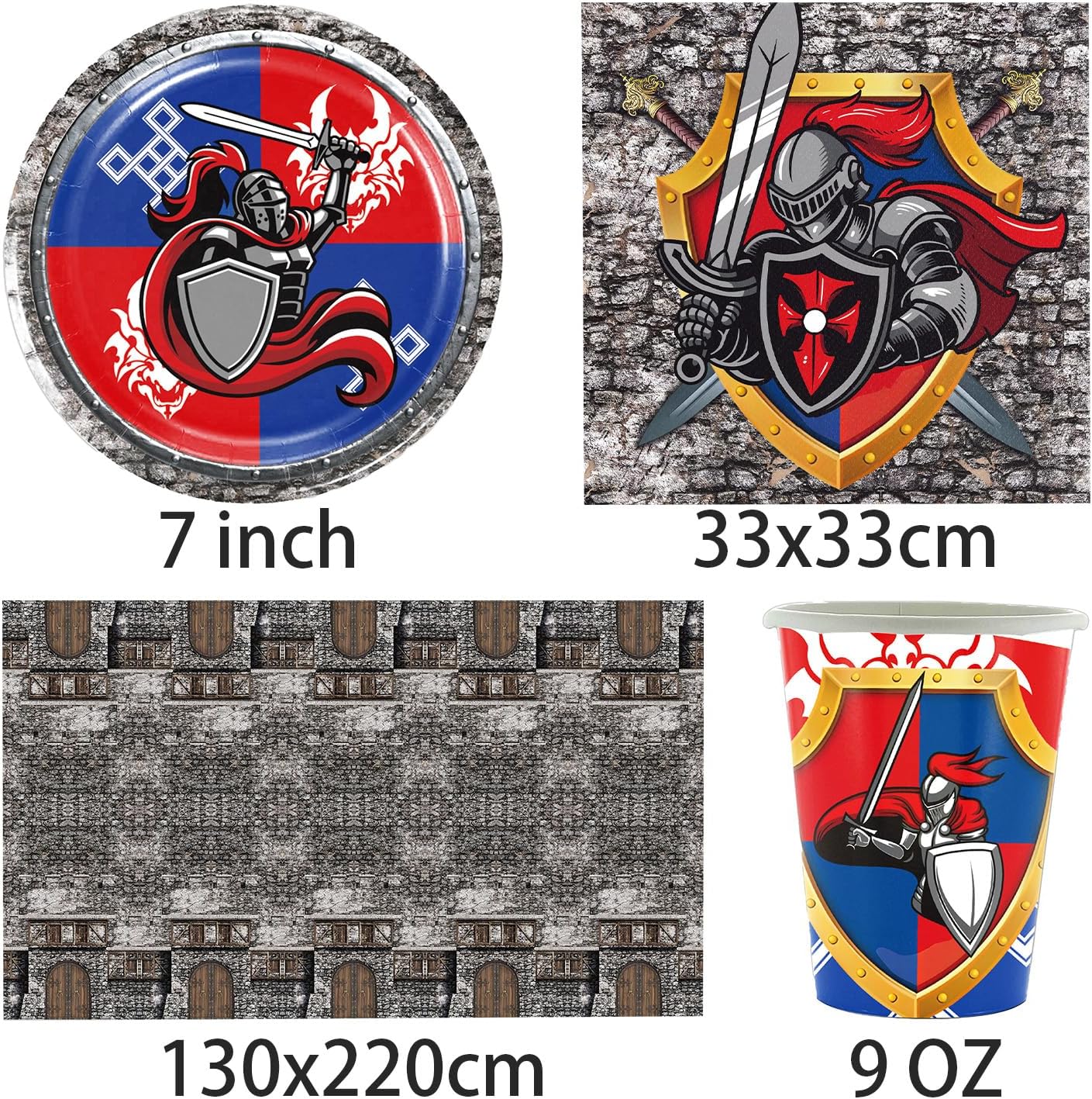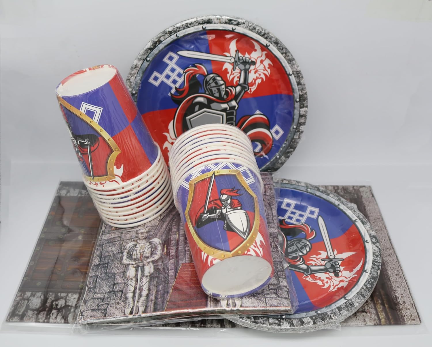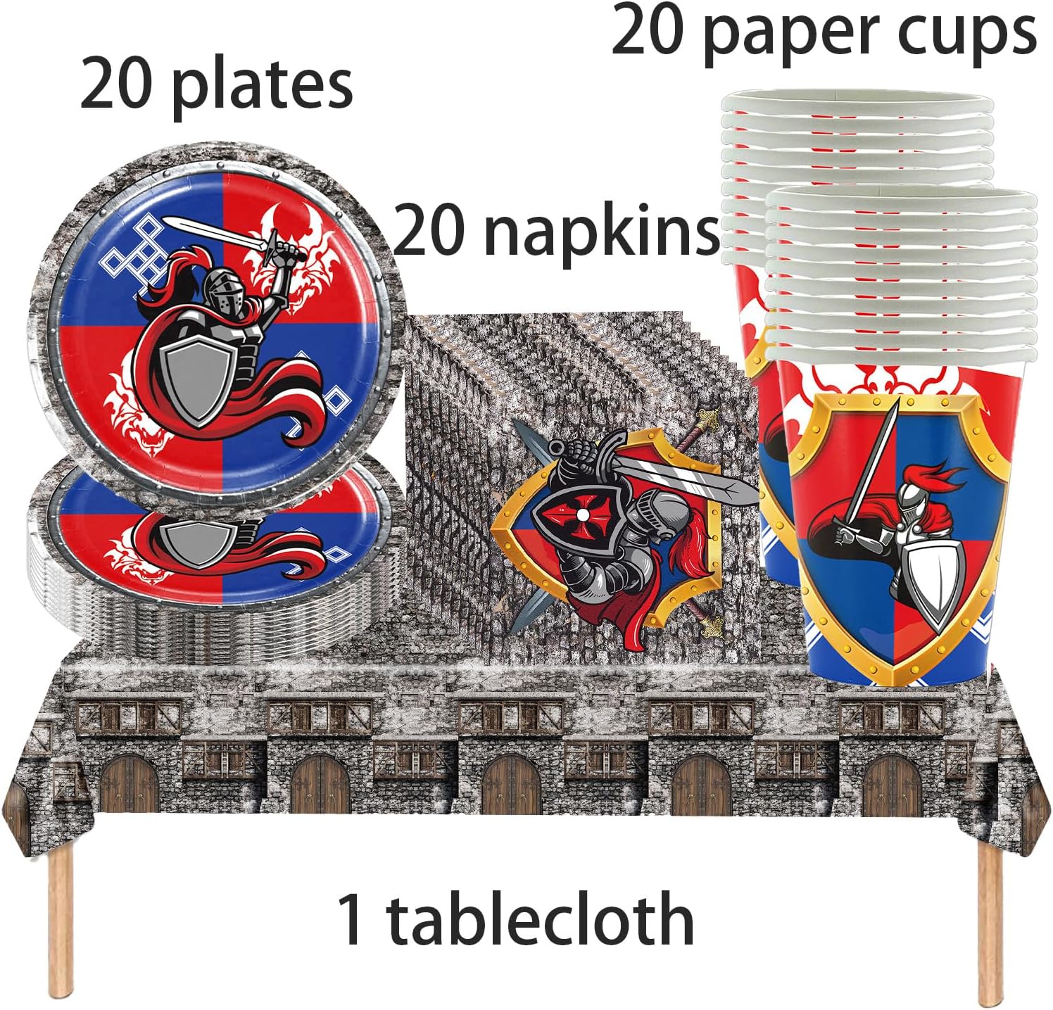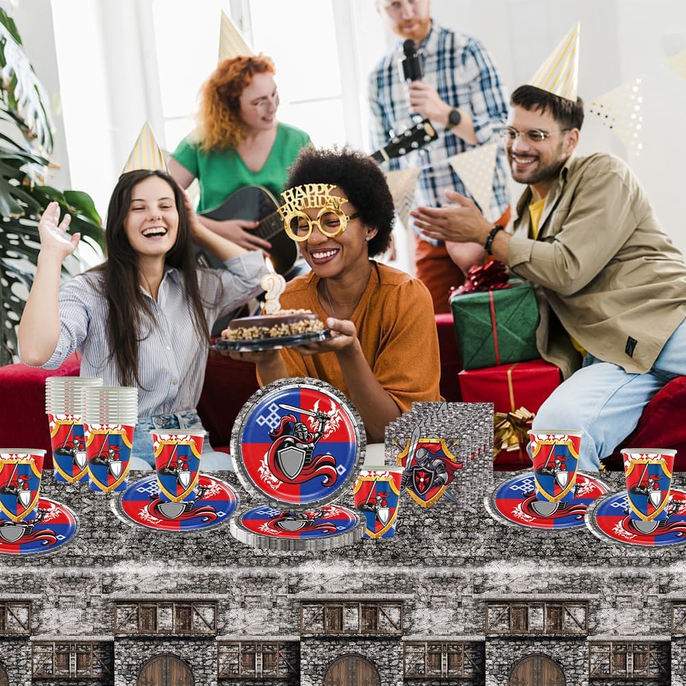 Decorazione medievale in 61 pezzi: con i nostri accessori per feste di compleanno da 61 pezzi, la festa può iniziare. Questo set di stoviglie per feste include piatti, tazze, tovaglioli e tovaglie, perfetto per un massimo di 20 ospiti. Dopo la festa non è più necessario lavare i piatti Pettorina medievale: che si tratti di una festa di compleanno o di un baby shower, con i nostri accessori per feste sarete al meglio. Dal taglio della torta agli antipasti, questi articoli sono pratici e pratici per qualsiasi evento. Risparmia tempo: quando hai finito il pasto, basta buttare via gli avanzi di cibo insieme alle posate, risparmiando tempo e fatica, in modo da poter trascorrere più tempo con i tuoi amici e familiari. Trascorri meno tempo a pulire e più tempo a goderti la festa Materiali di alta qualità: le nostre stoviglie per feste sono realizzate con materiali di alta qualità, robusti e durevoli. Perfetto per tutte le fuoriuscite e lo sporco che possono verificarsi durante la festa. Ampiamente utilizzato: i nostri accessori per feste sono perfetti per compleanni, matrimoni, baby shower e molto altro ancora, rendendo la pianificazione di eventi un gioco da ragazzi. Trascorri meno tempo a pulire e più tempo a goderti la festa