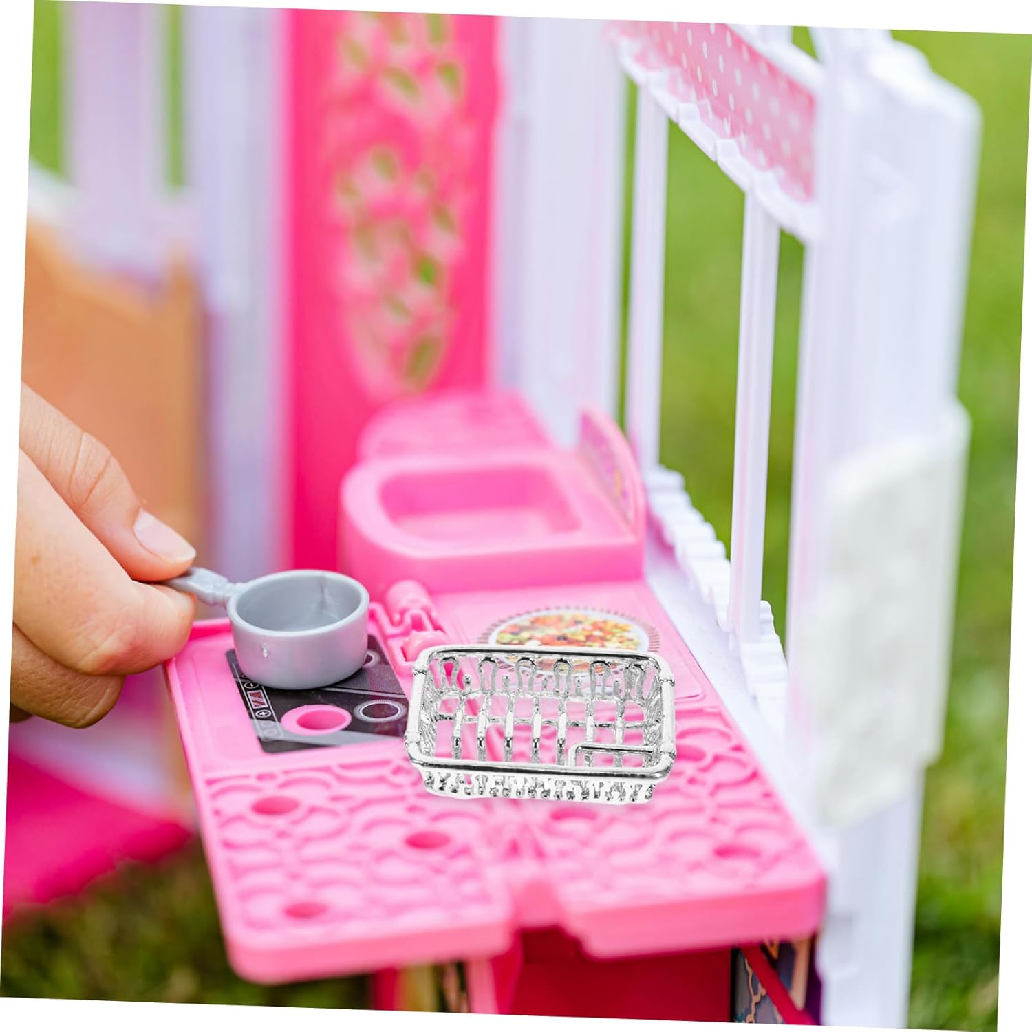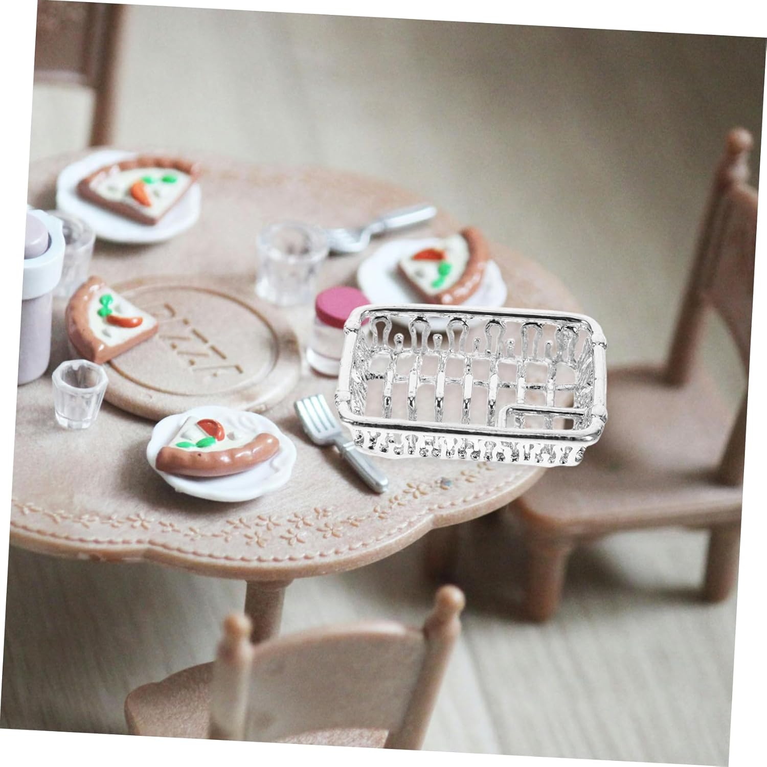 Accessorio in miniatura: questo scolapiatti in argento in scala è un accessorio in miniatura per case delle bambole, che aggiunge un tocco di realismo e fascino alla tua cucina in miniatura. Design raffinato: realizzato con precisione, questo scolapiatti in miniatura presenta dettagli intricati che lo fanno sembrare proprio un accessorio da cucina, migliorando l'estetica generale della tua casa delle bambole. Creatività fai da te: il design fai da te ti consente di disporre lo scolapiatti come preferisci, dandoti la libertà di esprimere la tua creatività e personalizzare la tua cucina in miniatura. Funzionale e pratico: nonostante le sue piccole dimensioni, questo scolapiatti in argento è progettato per essere funzionale e pratico, fornendo un posto comodo per riporre piatti e utensili in miniatura. Fascino decorativo: questo scolapiatti in miniatura non è solo pratico, ma funge anche da bellissimo pezzo decorativo, aggiungendo un tocco di e divertimento alla cucina della tua casa delle bambole.