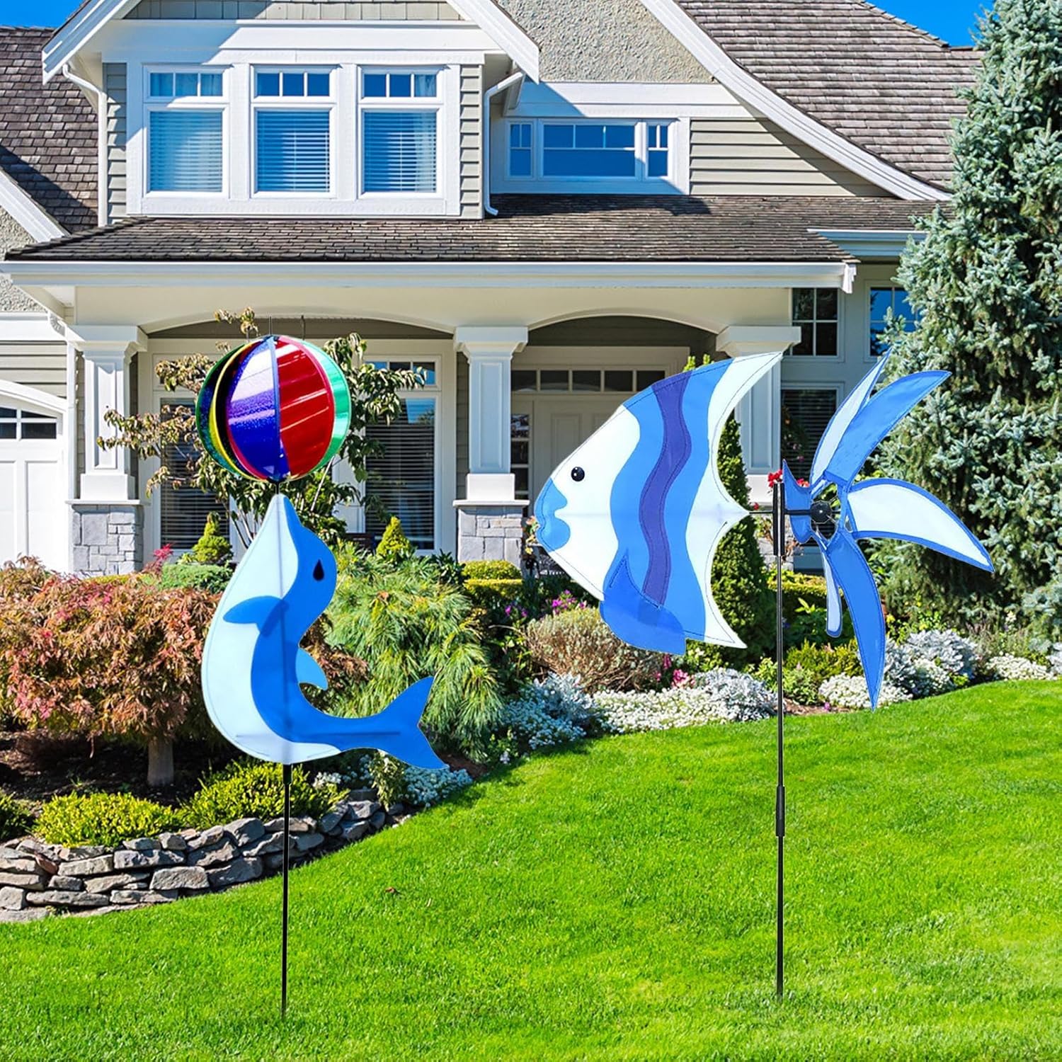 Gioco Rotante da Giardino: Questo mulino a rotante con un accattivante motivo di delfini crea un'atmosfera rilassante all'aperto, catturando l'attenzione dei bambini per ore di gioco immaginativo e divertente. Il design vivace del mulino a attira i giovani esploratori, rendendo il giardino un luogo magico per il divertimento e la scoperta creativa, per famiglie che cercano decorazioni funzionali e coinvolgenti. Durabilità in Ogni Condizione Meteo: Costruito con materiali adatti all'uso esterno, questo mulino a da giardino è impermeabile, antiruggine e progettato per resistere ai causati dalle intemperie, mantenendo colori vivaci per una durata eccezionale e prestazioni eccellenti in qualsiasi condizione climatica Regalo Rifinito: Una scelta premurosa per compleanni, festività, Natale e altre ricorrenze, questo mulino da giardino trasmette amore e apprezzamento. Adatto per familiari, amici e persone care, è un regalo che combina estetica e significato emotivo. Porta un tocco di eleganza e personalità al giardino, rendendolo unico e speciale Installazione Facile: Con il suo design innovativo di tappo a terra, questa girandola da giardino si inserisce facilmente nel terreno o nei vasi, offrendo immediatamente un tocco di vivacità e integrandosi perfettamente in qualsiasi spazio verde garantendo un'esperienza senza complicazioni per abbellire il tuo giardino con facilità Versatilità Elegante: Adatto per prati terrazze e corridoi questo mulino a è un'elegante aggiunta per matrimoni celebrazioni di compleanno o decorazioni quotidiane offrendo versatilità senza compromettere l'aspetto estetico e garantendo un impatto visivo duraturo
