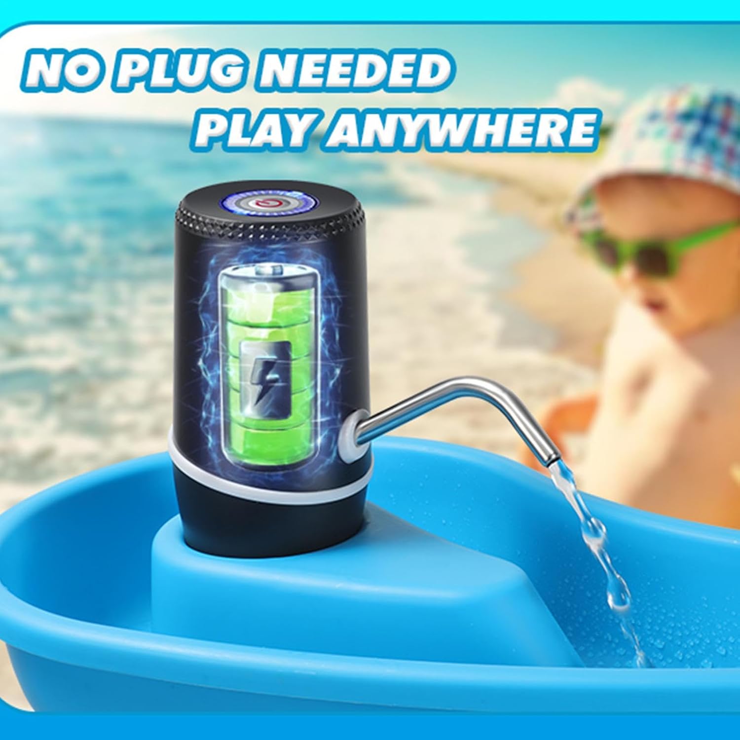 Design senza fili: goditi il piacere estivo senza interruzioni con la nostra pompa da tavolo senza fili, che offre un design wireless migliorato per il tuo tavolo da gioco d'acqua, completa di accessori indispensabili per la pompa dell'acqua. Facile da installare: riduci lo sforzo con la nostra pompa da tavolo dell'acqua. Praticando un foro nella parte superiore, collegando il tubo nella parte inferiore e posizionandolo attraverso il tavolo, consentirai il flusso naturale dell'acqua e assicurerai una circolazione efficiente dell'acqua. Soluzione sicura: assicurate il tempo di gioco del vostro bambino con la nostra pompa da tavolo dell'acqua. L'attivazione one-touch e la batteria ricaricabile lo rendono una scelta portatile per divertirsi senza preoccupazioni. Gioco d'acqua avanzato: preparati per una lunga giornata di divertimento in acqua con la nostra pompa da tavolo. Tienilo carico e goditi oltre 2 ore di gioco ininterrotto. I vostri bambini lo adoreranno! Versatile: aumenta il divertimento dal gioco quotidiano alle feste di compleanno. per feste all'aperto, il suo utilizzo multifunzionale rende più divertente tutte le età e rende il vostro incontro indimenticabile.