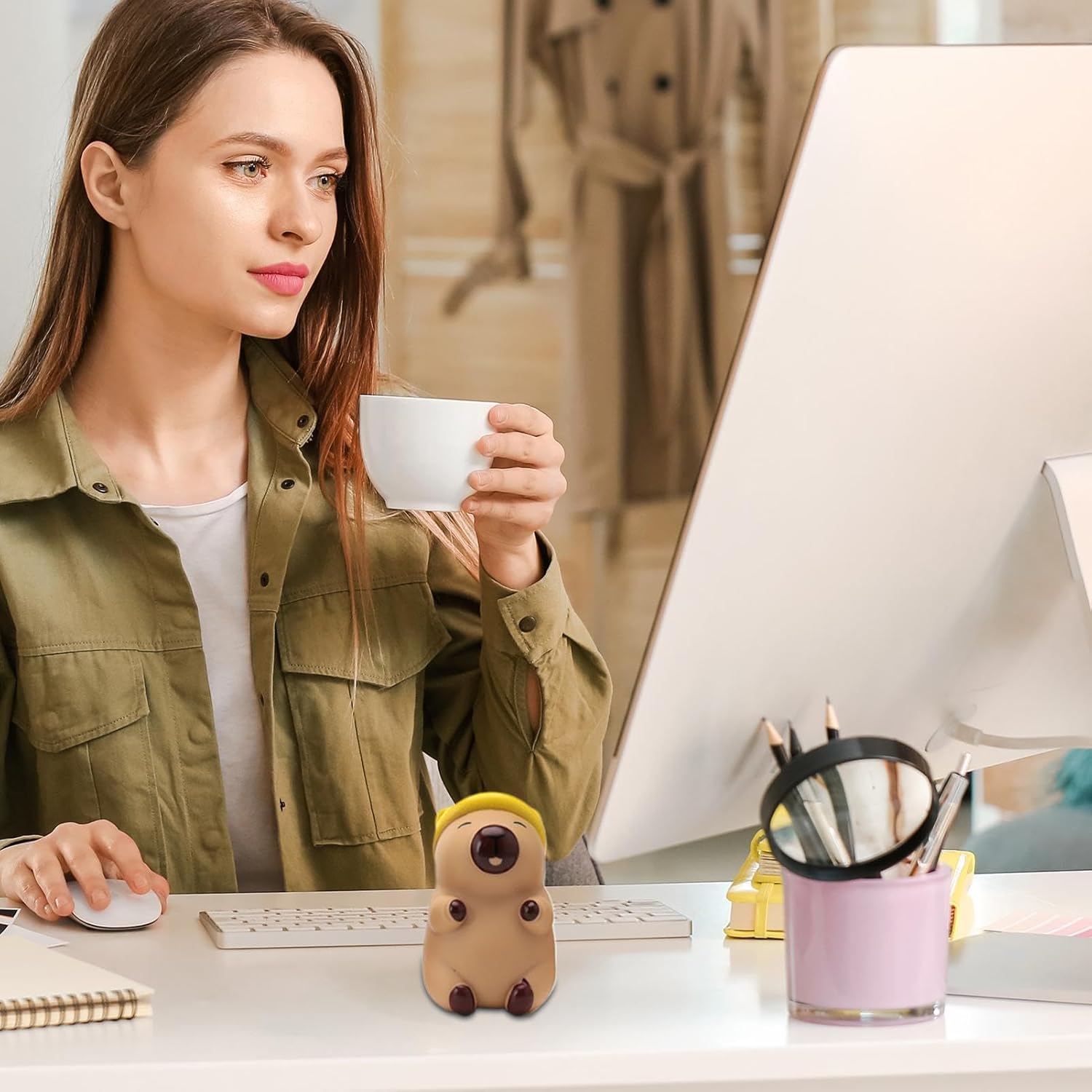 Elegante pezzo di capibara: caratterizzato da un grazioso design di capibara accentuato da espressioni e accessori unici, questa statua mostra un'eccellente maestria con la sua forma e dettagli unici. 【Sicurezza ambientale】 Con un design durevole realizzato in materiale PVC sicuro ed ecologico, le nostre statue di capibara garantiscono innocuità pur essendo morbide al tatto e resistenti all'usura. Ampiamente usato in molti ambienti: decora il tuo comodino, esponilo come libreria o come attraente centrotavola del tuo tavolo da pranzo Aumenta l'estetica della casa: graziosi ornamenti da scrivania che migliorano la decorazione degli interni, aggiungono un'atmosfera calda a qualsiasi stanza e ti aiutano a dire addio alle stanze monotone senza sforzo. Che si tratti di un posto di lavoro o di un soggiorno, il design piccolo e raffinato abbellisce facilmente l'area