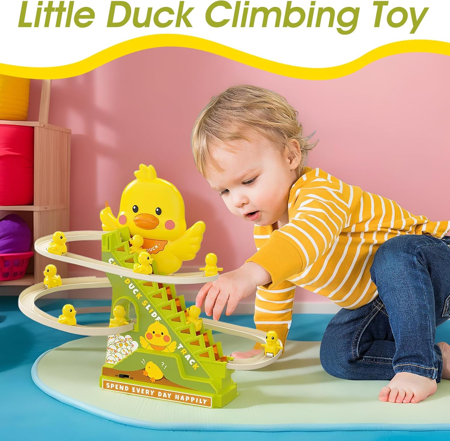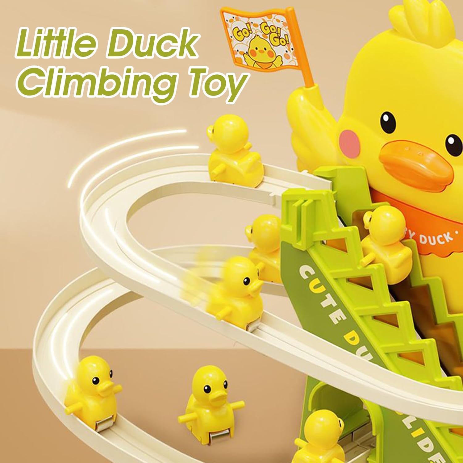 Azione di arrampicata carina: questo giocattolo combina un'adorabile azione di arrampicata con un design a pista scorrevole, accattivante grazie a movimenti interattivi che ispirano curiosità e promuovono lo sviluppo cognitivo precoce. Si divertiranno osservando le anatre piccole salire e sulla pista appositamente progettata per offrire momenti divertenti ed educativi coinvolgenti Sicurezza approvata dai genitori: i bordi lisci prevengono i graffi consentendo avventure fantasiose. Questo giocattolo realizzato con materiali ecologici garantisce una durata eccezionale per ore di divertimento senza compromettere la sicurezza o il rispetto dell'ambiente. Una soluzione ideale per i genitori che cercano prodotti sicuri e durevoli per i loro Giocattolo portatile accattivante: adatto per ambienti interni ed esterni, garantisce momenti di gioco ininterrotti, rafforzando le connessioni familiari grazie a una semplice installazione e una vera portabilità grazie alle 3 batterie AA Aiuto giocoso alla crescita: questo giocattolo combina il perfezionamento delle abilità motorie, il miglioramento della logica e l'esplorazione musicale in un'esperienza accattivante Offre più divertimento sostenendo lo sviluppo generale di ragazzi e ragazze. Le anatre rampicanti consentono di sviluppare le loro abilità mentre si divertono con sfide adatte all'età Perfetto per incoraggiare il loro apprendimento naturale attraverso il gioco interattivo Design stimolante: le attività coinvolgenti e le melodie allegre migliorano la concentrazione fornendo stimolazione sensoriale grazie ad effetti sonori dinamici che arricchiscono l'esperienza di gioco e rendono ogni sessione ancora più divertente ed educativa