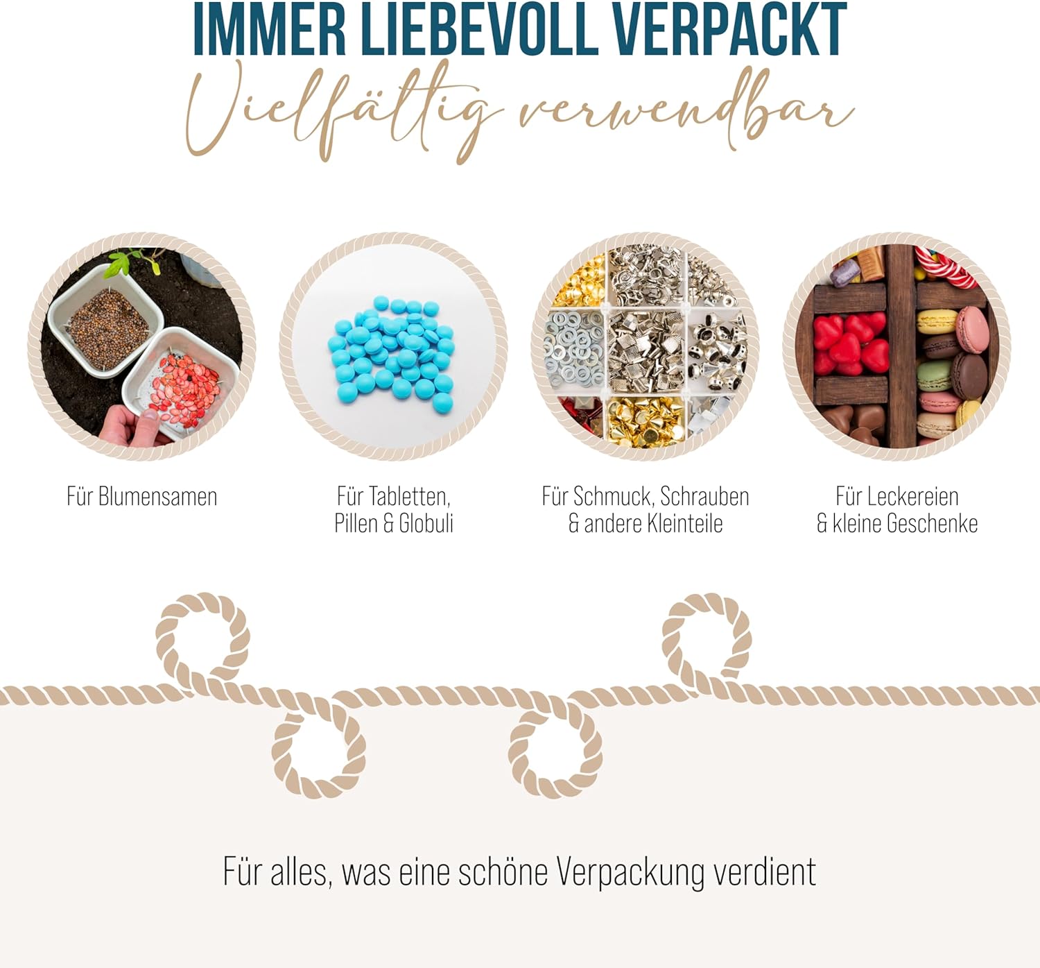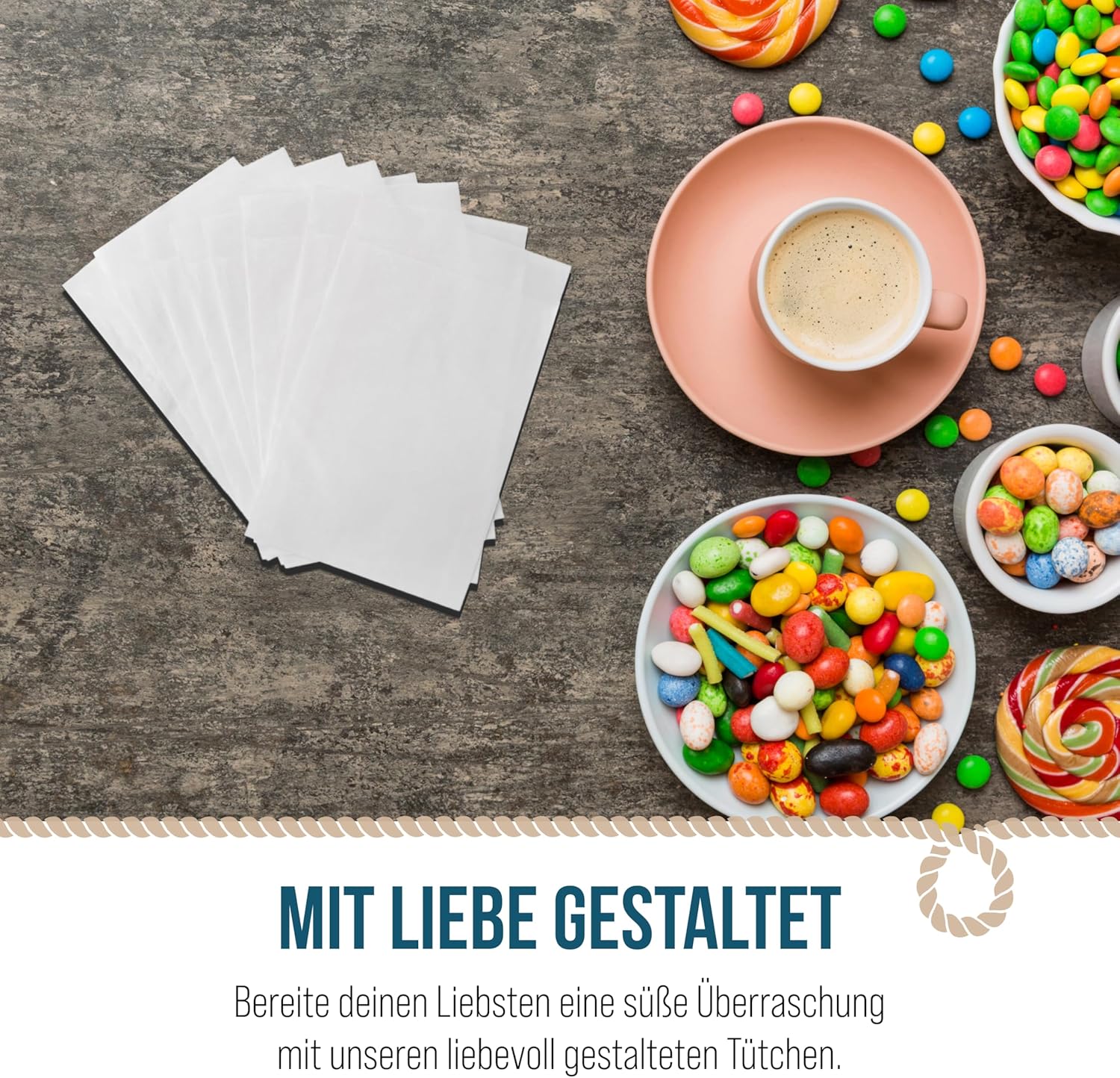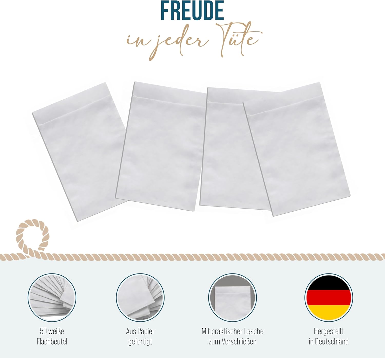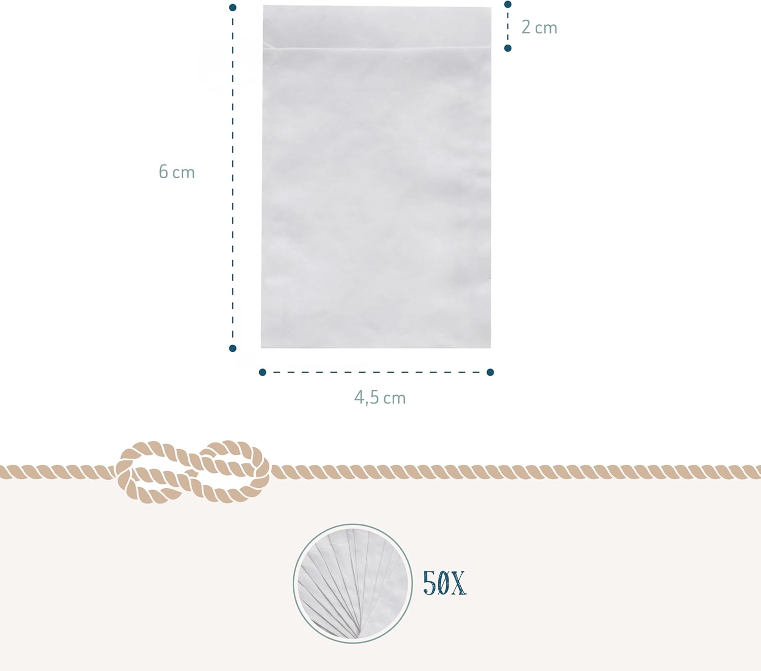 MINI BAGS PRATICI: I sacchetti di carta bianca sono perfetti per piccoli contenuti come semi, globuli, caramelle, compresse o viti e offrono un imballaggio semplice con fascino CON LINGUETTA DI CHIUSURA: Grazie alla linguetta larga 2 cm, i sacchetti possono essere facilmente chiusi per proteggere il contenuto in modo sicuro e affidabile PER OGNI OCCASIONE: Ideali come sacchetti per semi, confezioni per omaggi o come regali per gli ospiti a matrimoni, eventi o compleanni - un piccolo Packaging Meraviglioso per molte occasioni ALTA QUALITÀ: I sacchetti piccoli piatti sono realizzati in Germania, sono realizzati in carta robusta e colpiscono per il loro aspetto semplice e naturale PER UN DESIGN CREATIVO: Che si tratti di adesivi, fascette o etichette, i sacchetti possono essere meravigliosamente personalizzati e sono ideali per progetti fai da te e confezioni regalo amorevoli