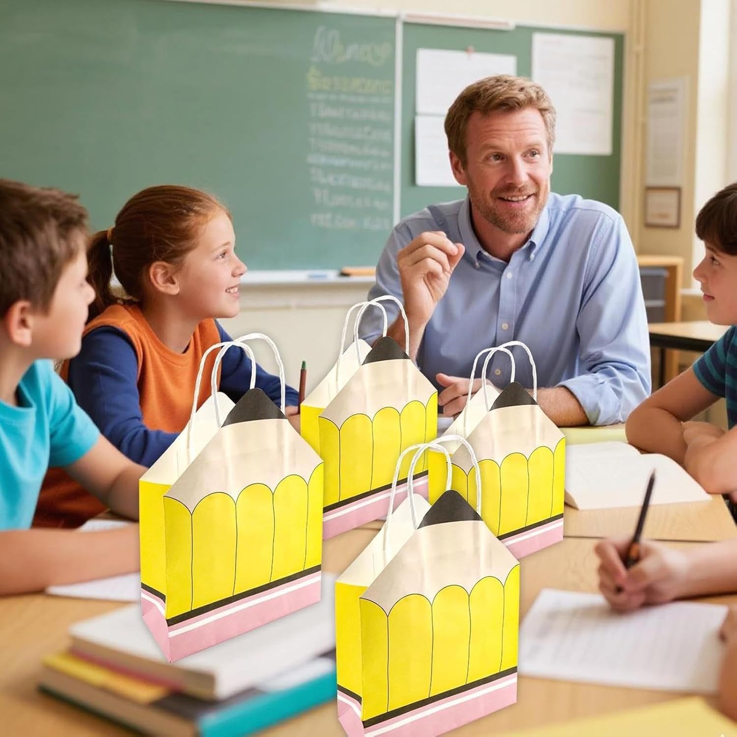 Sacchetti regalo per eventi: caratterizzati da dimensioni ottimali, questi sacchetti sono progettati per soddisfare le diverse esigenze e costituiscono una soluzione versatile per le feste di riconoscimento degli insegnanti poiché possono ospitare comodamente molti tipi di regali. Soluzione ecologica da regalare: questi sacchetti di carta riutilizzabili sono ideali per attività educative, celebrazioni del giorno degli insegnanti e altro ancora, offrendo versatilità a vantaggio di utenti e destinatari in molteplici usi e pratiche. Incantevole design a matita: questi sacchetti di carta dal design ispirato alla matita portano fantasia ed eleganza alla Festa degli insegnanti, migliorando la presentazione e l'emozione dei tuoi regali scelti con cura. Regali premurosi: questi sacchetti di carta a forma di matita sono perfetti per la Settimana dell'Apprezzamento degli Insegnanti, con 12 sacchetti inclusi in ogni confezione per condividere la tua gratitudine e garantire che gli educatori si sentano celebrati e apprezzati durante questo evento speciale. Robusti e durevoli: questi sacchetti a forma di matita sono realizzati in carta resistente per proteggere i tuoi regali in modo sicuro, offrendo agli educatori una soluzione affidabile per esprimere gratitudine con un display elegante e durevole che impedisce gli strappi