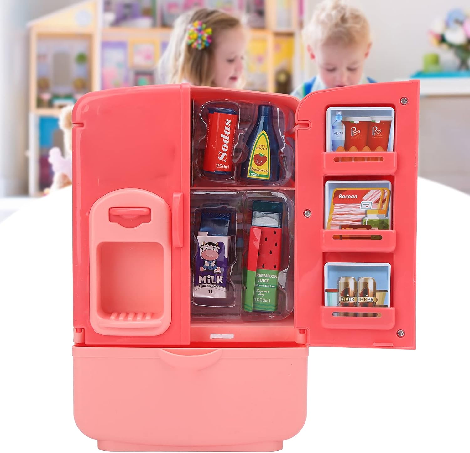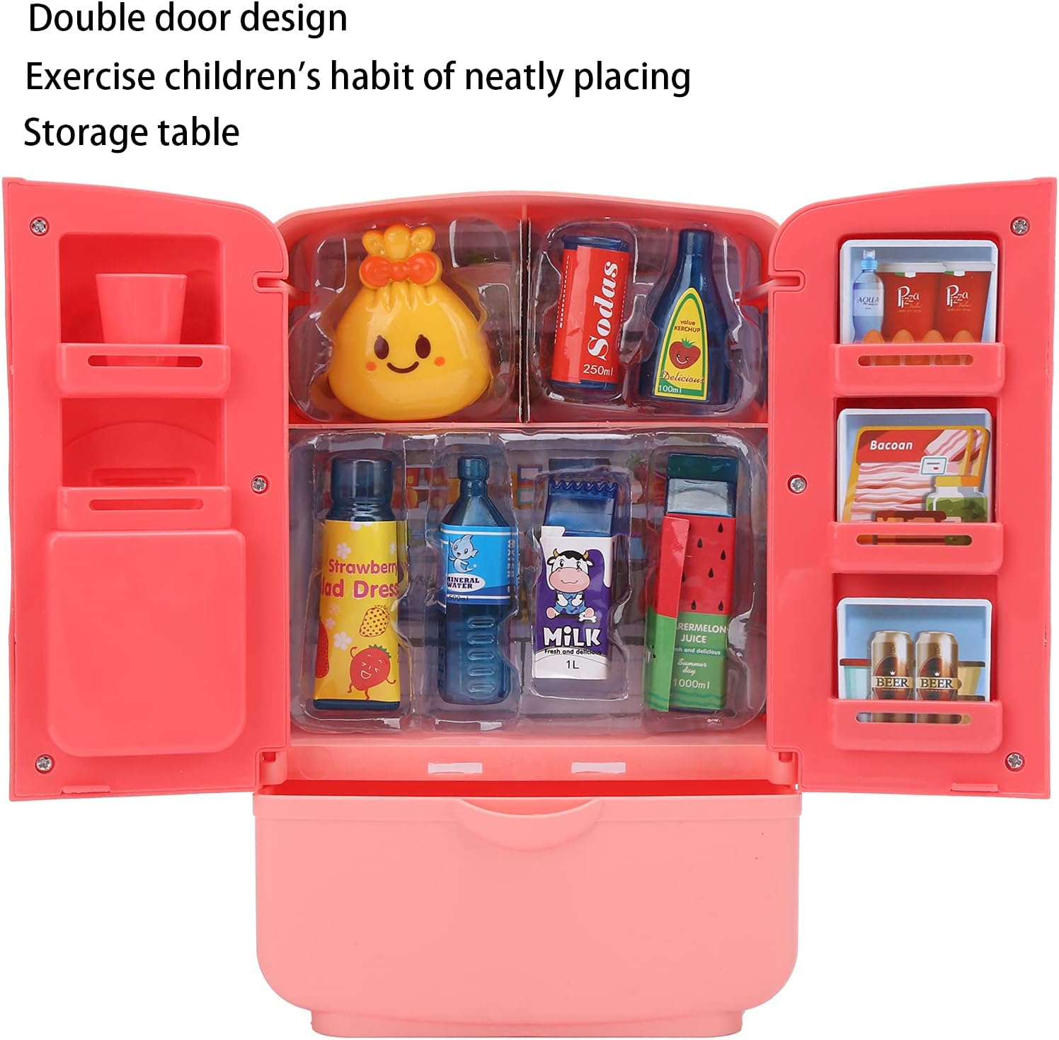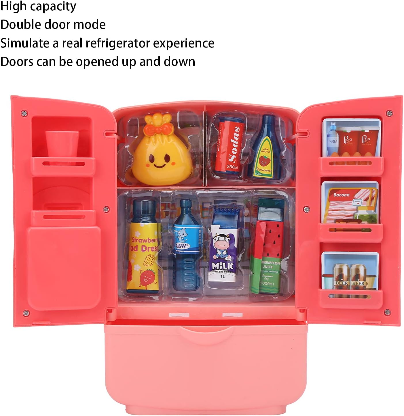 Realizzato in materiale ABS di alta qualità, è sicuro e innocuo e non presenta pericoli nascosti per la salute dei bambini. La modalità a doppia porta simula la vera esperienza del frigorifero e migliora il senso di esperienza del bambino. Il cassetto del frigorifero di grande capacità può contenere più accessori da cucina. Una buona scelta che dovresti fare. Conservazione delle partizioni interne, coltiva i bambini per sviluppare buone abitudini di conservazione fin dalla tenera età. Cibo da gioco per giochi di finzione, cucina giocattolo o qualsiasi occasione di regali per i bambini.