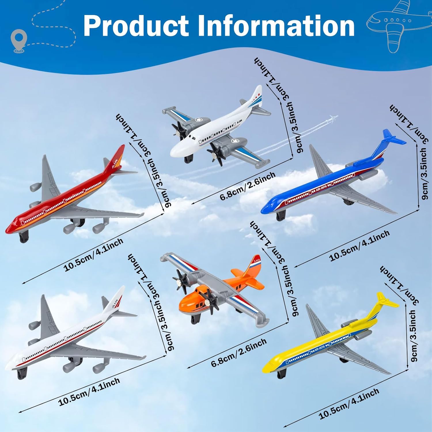 ✈️ Ampia Scelta: questo set di giocattoli include sei aereo modello metallo miniatura, offrendo ai bambini la libertà di scegliere e vivere esperienze di gioco uniche. ✈️ Costruzione Durevole: realizzati in lega di alta qualità, questi miniatura metallo airplane sono resistenti, mantengono il loro aspetto elegante e resistono efficacemente a urti e cadute. ✈️ Dimensioni Compatte: progettati per le manine dei più piccoli, questi giocattolo aeroplano sono compatti e adatti al gioco in interni ed esterni, facili da riporre e ideali da collezione per i giovani appassionati di aviazione. ✈️ Interazione Creativa: ogni aereo giocattolo per bambini può essere spostato avanti e indietro, permettendo ai bambini di sperimentare voli e avventure emozionanti, migliorando la loro esperienza di gioco creativa. ✈️ Ottima Idea Regalo: questi modellino aereo linea sono il regalo perfetto per un compleanno o una festa, suscitando l'interesse dei bambini per l'aviazione e portando una gioia infinita.