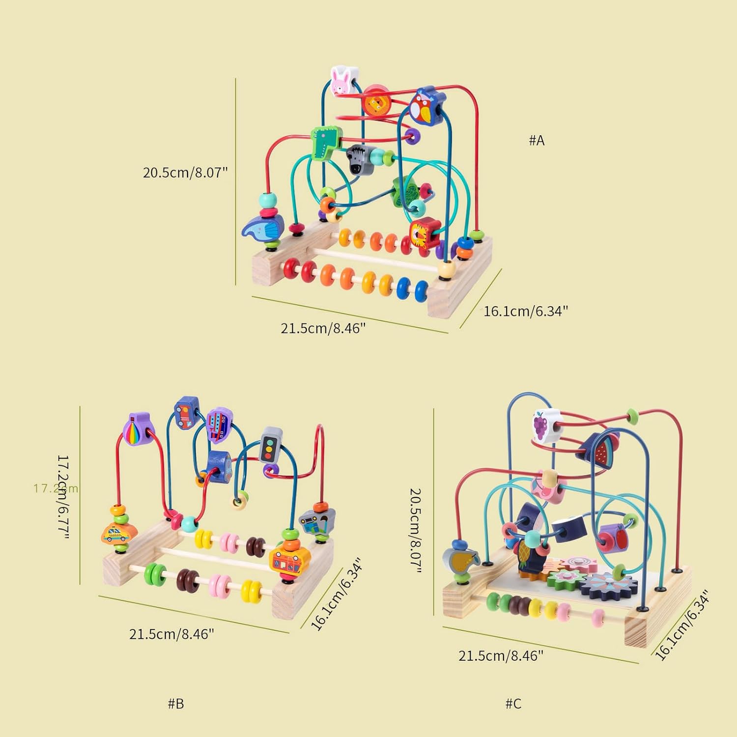 Scopo educativo: ottimo strumento educativo e non solo può indurre i bambini a parlare di più e ad imparare la matematica, ma anche guidarli in termini e capacità espressive Coltiva la coordinazione e la collaborazione delle mani, del cervello e degli occhi in questo gioco, che è buono per l'attività motoria fine e lo sviluppo delle funzioni fisiche Con colori vivaci, aspetto carino e funzioni educative adatte ai bambini a divertirsi molto mentre imparano in modo più efficace e migliorano le loro abilità pratiche Materiale di legno: resistente e facile da usare Molto interessante ed è amato dai bambini. può anche migliorare il rapporto tra genitori e figli e trascorrere il tempo libero con i bambini