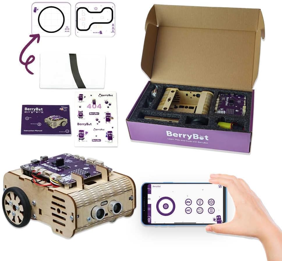 Codifica e robotica passo dopo passo: non ti sentirai più bloccato dietro schermi complicati: BerryBot utilizza un giocoso sistema di codifica drag-and-drop che rende la programmazione di apprendimento proprio come mettere insieme blocchi di costruzione. Divertimento per tutti: che tu sia un principiante curioso o un futuro inventore, BerryBot porta gioiosa scoperta a tutte le età. Non si tratta di chi sei, ma di quanto sei divertente che sei pronto ad avere! Facile da installare e utilizzare: senza piccole viti, senza stress. Il design rapido di Berrybot ti consente di essere operativo in pochi minuti. Basta agganciarlo insieme e iniziare a esplorare! Tecnologia avanzata: alimentato dal chip Raspberry Pi RP2040 e dotato di sensori intelligenti, BerryBot prende decisioni intelligenti, evita gli ostacoli e reagisce all'ambiente circostante in tempo reale. 4 modalità pronte all'uso: pronto a giocare subito fuori dalla scatola: scegli tra evitare gli ostacoli, seguire la linea, tracciamento leggero o lotta sumo e scopri ogni volta una nuova avventura!
