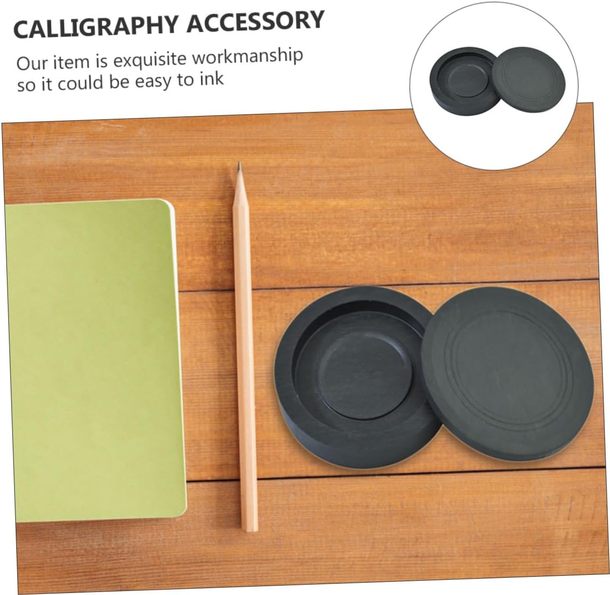 Pietra per inchiostro tradizionale - realizzata in materiale resistente e pratico, pietra per inchiostro creativa con coperchio Pietra per inchiostro per calligrafia - pregevole fattura e bell'aspetto ne garantiscono la popolarità, pietra per inchiostro rotonda con inchiostro Accessori per calligrafia - il prodotto è leggero e facile da trasportare, pietra per inchiostro per pittura Accessori per calligrafia tradizionali - aspetto liscio, sicuro da usare, non taglia facilmente le mani, pietra per macinare inchiostro Pietra per inchiostro per calligrafia cinese - Selezione del materiale per durata e utilizzo, pratica pietra per inchiostro da disegno