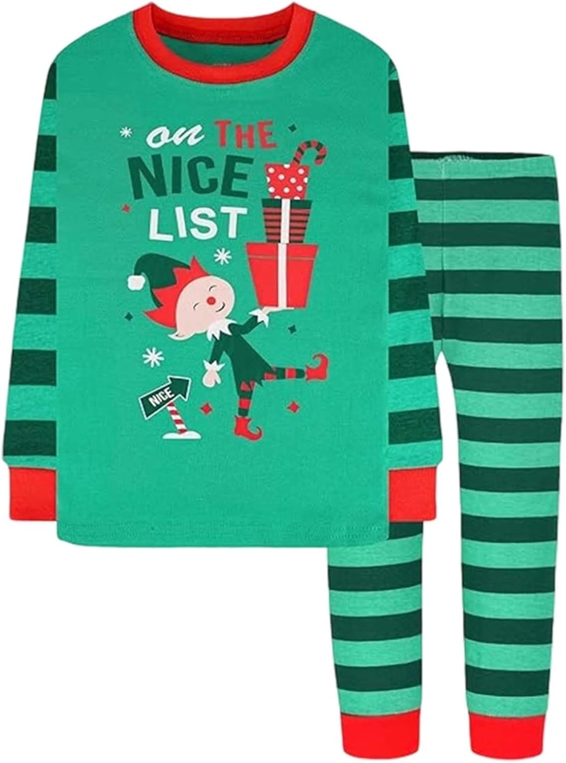 Si tratta di un pigiama natalizio per bambini in design cartone animato. Il pigiama a maniche lunghe in due pezzi offre comodità, la biancheria da notte in materiale morbido garantisce un sonno riposante, adatto per l'inverno