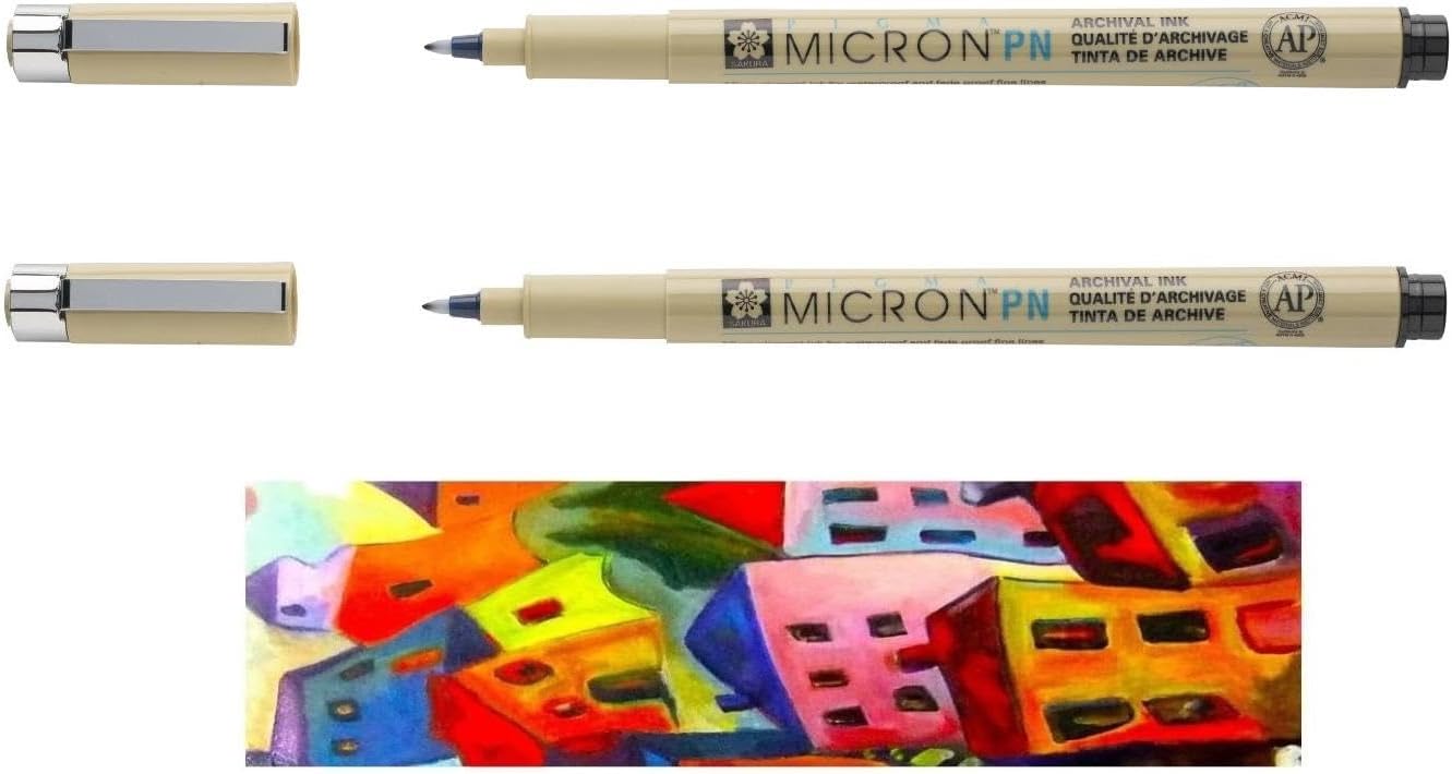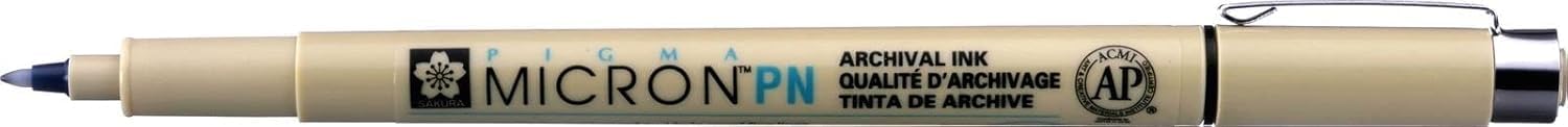 Pigma Micron SAKURA PN - Nero. 2 pezzi e 1 carta Le linee sottili da 0,4 mm a media 0,5 mm possono essere ottenute a seconda della pressione. La struttura della punta rende questa penna ideale per i mancini