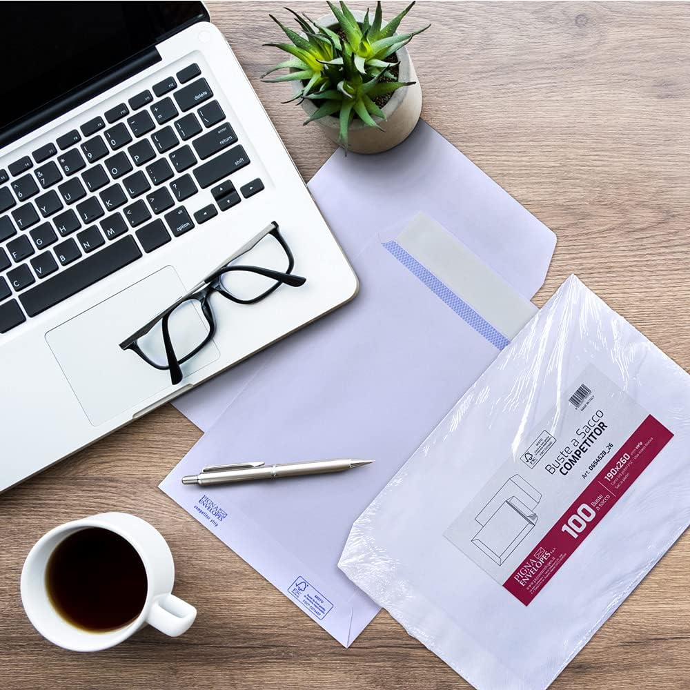 Confezione da 100 buste Buste a sacco strip formato 190x260 Carta naturale uso mano bianca fsc da 80 grammi Chiusura patella strip Senza finestra