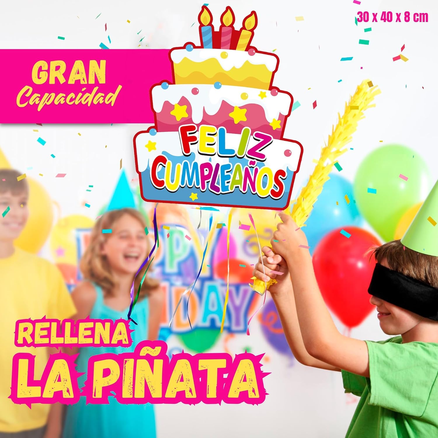 Riempi la pignata con coriandoli e tira le corde per liberare la sorpresa. Montaggio rapido, senza attrezzi e sistema sicuro per appendere in qualsiasi spazio. Ideale per compleanni, feste a tema o eventi scolastici. Il suo design colorato e accattivante diventa al centro dell'attenzione e assicura momenti indimenticabili per i bambini. Con 40 x 30 x 8 cm, è adatto per interni ed esterni e permette di riempirlo in modo che tutti i bambini ricevano il loro premio. Compatto, ma con grande capacità di divertimento. Realizzato in cartone spesso e materiali atossici. Supporta il peso senza rompersi e garantisce sicurezza in ogni utilizzo, così i genitori godono proprio dei bambini.