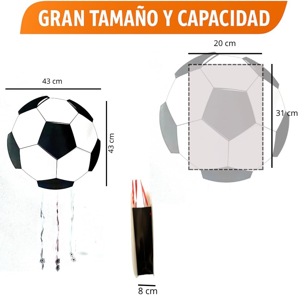 Contenuto completo: include una pinata da calcio con nastri decorativi e un set da 155 pezzi per feste a tema calcio DESIGN SPORTIVO: Pignatta a forma di pallone da calcio bianco e nero con dettagli esagonali classici e nastro rosso per appendere Kit di riempimento: contiene vari giocattoli a tema, adesivi da calcio, bracciali, medaglie e accessori per una festa completa Dimensioni ideali: grande pignata perfetta per feste per bambini, con spazio sufficiente per tutte le imbottiture incluse DECORAZIONE FESTIVA: I nastri multicolori appesi aggiungono un tocco festivo e allegro, ideale per ravvivare qualsiasi celebrazione a tema calcistico