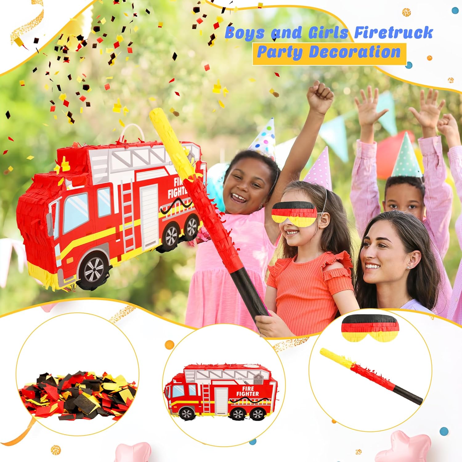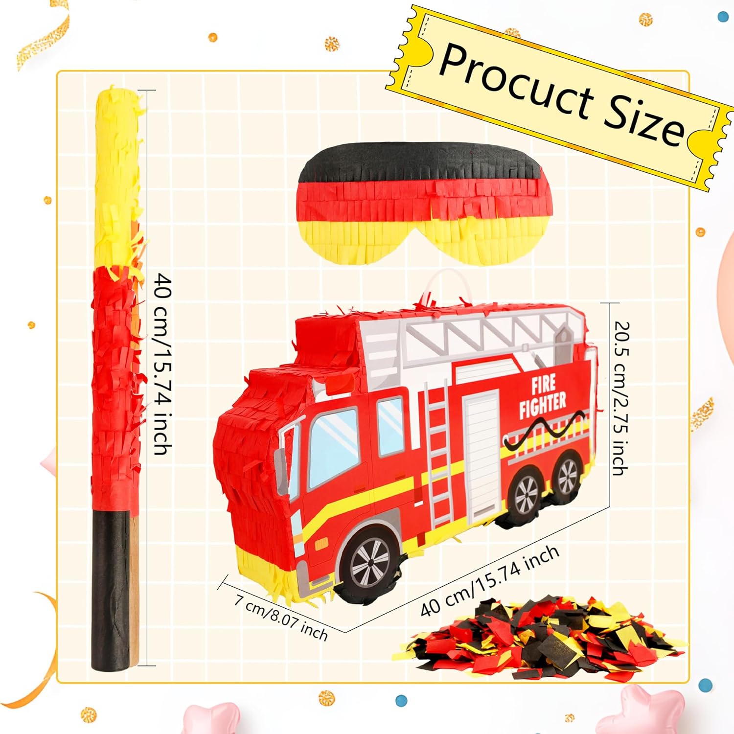 Pignatta a forma di camion dei pompieri con bastone da appendere e coriandoli a forma di camion dei pompieri, decorazione per feste di compleanno, 40 x 20 cm Dimensioni della pignatta con autopompa antincendio: la pignatta per ragazzi misura circa 40 x 20,5 x 8 cm, basta tagliare l'apertura pre-delineata sulla parte superiore, fornendo molto spazio per riporre piccoli giocattoli, caramelle, cioccolatini, regali e coriandoli, ecc., Prepara sorprese e gioia per la tua famiglia e gli amici. Dimensioni del bastone: 40 cm Materiale affidabile: la pignatta per camion dei pompieri per bambini è realizzata in cartone ondulato rinforzato ed è progettata con un robusto anello di plastica sulla parte superiore per la comodità di appendere. Il set di pignatta è splendidamente dipinto e non è facile da sbiadire o rompere, quindi puoi usarlo con fiducia. I bambini possono mettere molti piccoli regali nella pignatta del camion dei pompieri, quindi appenderla, mettere una benda e romperla con un bastone fino a quando non rilascia i regali Design unico: la pignatta a tema fuoco adotta un design del camion dei pompieri, che è vivido e interessante, combinato con colori vivaci, è facile attirare l'attenzione di più persone e può essere utilizzata come decorazioni per feste, centrotavola, oggetti di scena fotografici, ecc. Ampiamente applicabile: questa piñata per camion dei pompieri è decorativa e divertente e può essere utilizzata in varie occasioni, come feste a tema camion dei pompieri, feste a tema pompieri, giorni di carriera, compleanni, feste di gioco, carnevale, riunioni di amici, vacanze, ecc.