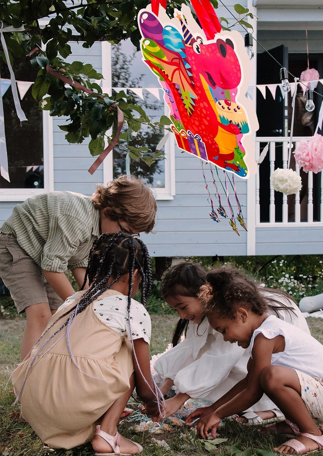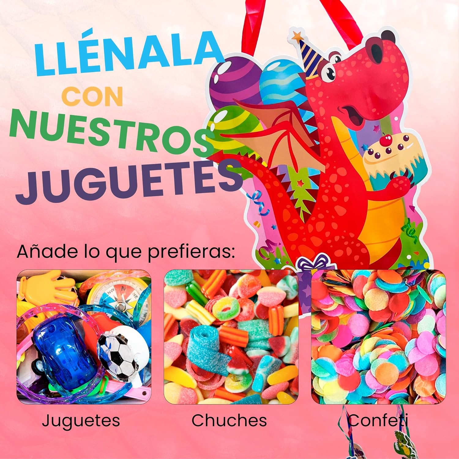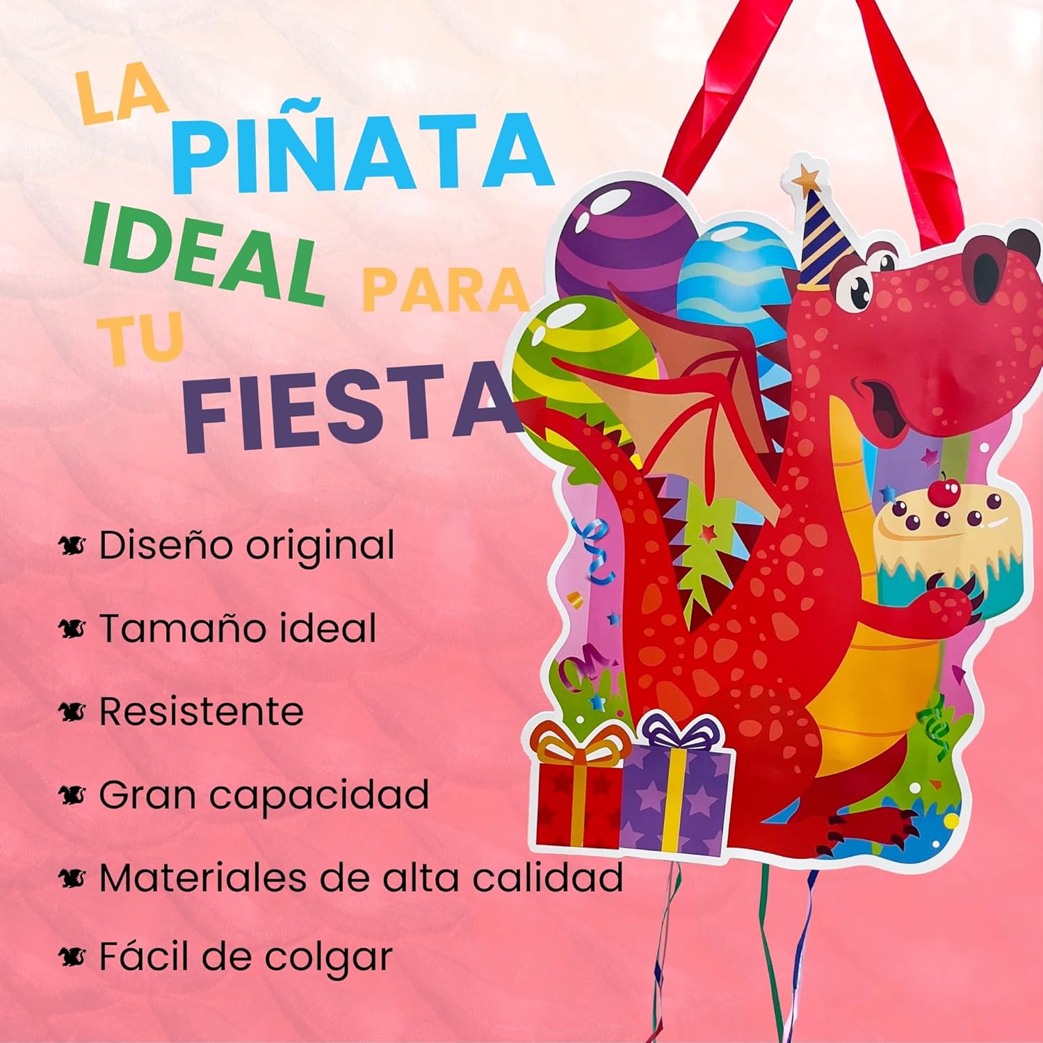 [FACILE DA USARE]: La pignatta è molto facile da usare. Tutto ciò che dovete fare è prendere i giocattoli, i dolci e tutto ciò che avete scelto e metterli all'interno della pignatta di compleanno. È importante che tutti i bambini presenti alla festa tirino contemporaneamente i fili della pignatta per bambini in modo che si rompa e tutti i giocattoli cadano. [DIMENSIONE IDEALE:] La pignatta dinosauro è perfetta per essere posizionata con i riempitivi per pignatte di compleanno per bambini. Le misure sono 40x30x8cm, ideali per posizionare la pignatta con riempimento in qualsiasi spazio dove si festeggia il compleanno. [QUALITÀ PREMIUM]: La pignatta è realizzata con cartone pieghevole di alta qualità per adattarsi ai giocattoli pignatta per bambini senza rompersi. Grazie a questi materiali, il riempimento della pignatta può essere inserito nella pignatta, assicurando la resistenza e la durata della pignatta e dei giocattoli, garantendo ore di divertimento. [RIEMPIMENTO A PIACERE]: Questa pignatta di compleanno per bambini può essere riempita con ciò che si preferisce, come dolci, coriandoli, maschere... Per godervi la vostra festa con una pignatta di compleanno a vostro piacimento. [FACILE DA MONTARE]: La pignatta di compleanno viene consegnata per essere montata facilmente. Bastano pochi semplici passaggi per essere pronti per la festa, senza bisogno di strumenti o abilità particolari. La pignatta di compleanno è molto facile da usare. [DESIGN COLORATO E ATTRAENTE]: La pignatta ha un design vivace e colorato che catturerà l'attenzione dei bambini presenti alla festa di compleanno e sarà un'ulteriore attrazione per qualsiasi festa di compleanno. [FACILE DA APPENDERE]: La pignatta dinosauro di compleanno è dotata di un robusto occhiello per essere appesa ovunque, all'interno o all'esterno, garantendo un fissaggio sicuro durante la festa.