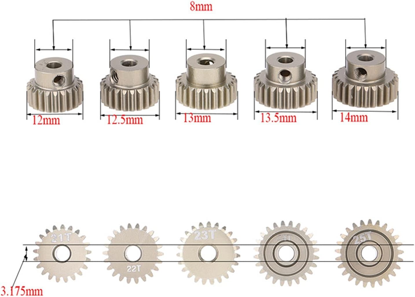 Pignone Ingranaggio, Ingranaggio per Motori 5pcs Durevole 2. 1T 22T 23T 24T 25T Set Combo per Motori a pignone per Un Motore brushless Spazzolato per Auto da 1/10 RC