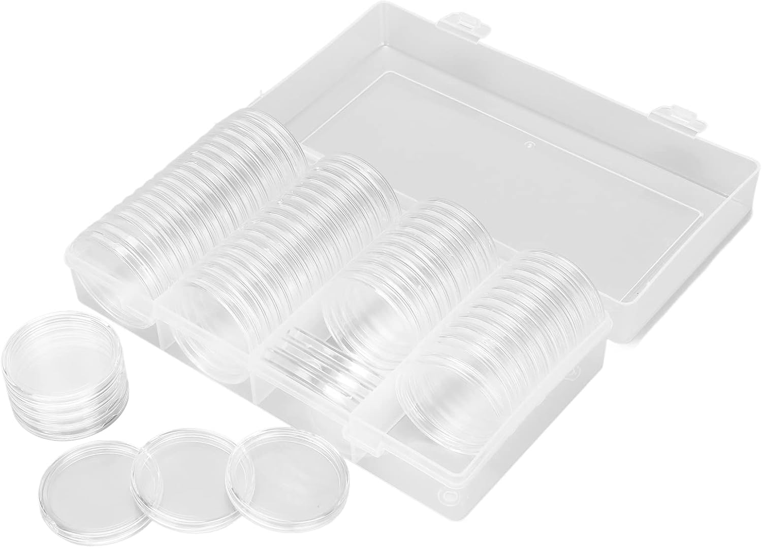 [MATERIALE PLASTICO TRASPARENTE PREMIUM] La capsula per monete è realizzata in plastica spessa trasparente di alta qualità, che offre un tocco morbido garantendo stesso tempo una lunga durata. Il suo design antipolvere e antiruggine mantiene le tue monete in ottime condizioni, rendendole ideali per la conservazione e la protezione a lungo termine. [STOCCAGGIO SPAZIOSO E ORGANIZZATO] Questa scatola portamonete può contenere fino a 60 monete con un diametro massimo di 41 mm / 1,6 pollici. Gli scomparti ben organizzati assicurano che la tua collezione di monete rimanga organizzata e facilmente accessibile, risparmiando tempo e fatica. [DESIGN A MEZZA LUNA FACILE DA APRIRE] Ogni capsula rotonda presenta una comoda apertura a forma di mezza luna sul bordo esterno, che consente un accesso semplice alle tue monete. Questo design intuitivo elimina la frustrazione di dover lottare per aprire contenitori stretti. [VISIBILITÀ CRISTALLINA] La base e il coperchio si adattano saldamente per fornire la massima protezione alle tue monete. Il design trasparente ti consente di visualizzare la tua collezione senza aprire la scatola, rendendola perfetta per l'esposizione e l'identificazione rapida. [ PER I COLLEZIONISTI DI MONETE] Progettato per ospitare una varietà di monete popolari tra cui il dollaro Silver Eagle da 1 oncia, l'oro commemorativo da $ 50, il panda d'argento da 1 oncia e molti altri. Questa scatola portaoggetti è un must per i collezionisti seri che apprezzano sia la protezione che la presentazione.