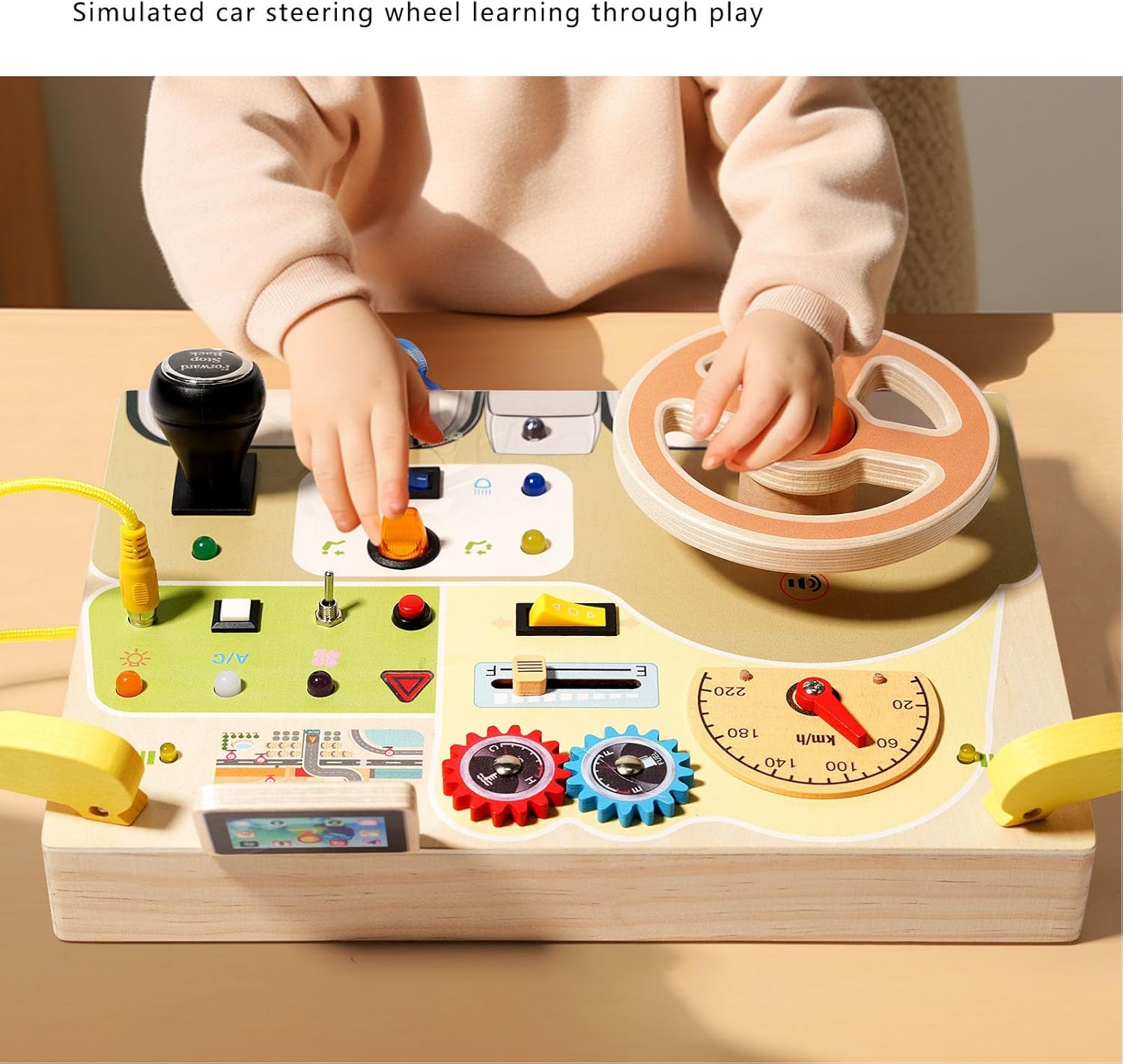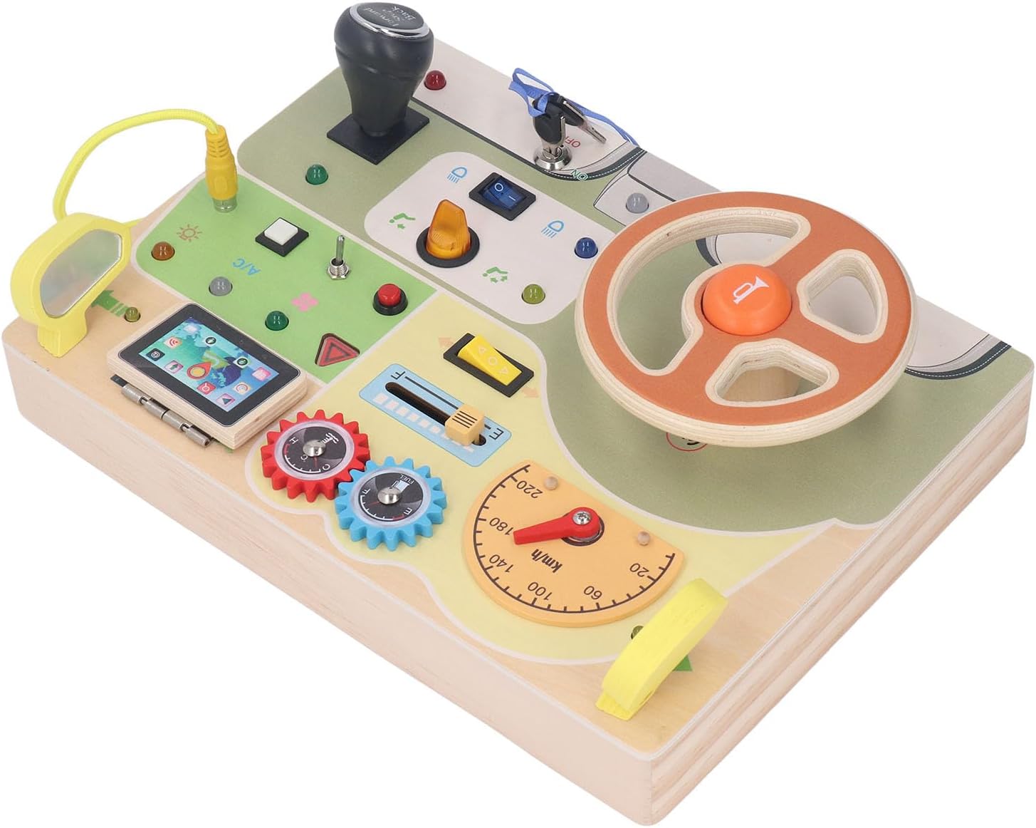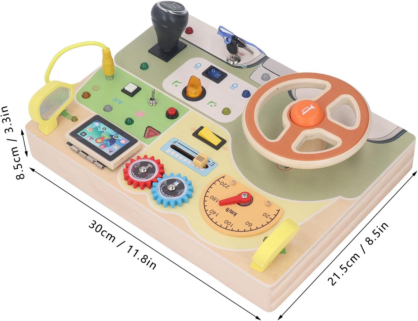 [Design interattivo per l'interruttore in legno] Questo giocattolo del volante in legno presenta una presa a interruttore appositamente realizzata che migliora la coordinazione dell'occhio a mano abilità motorie e scintilla l'immaginazione nei bambini. Il design di legno tattile incoraggia l'esplorazione sensoriale mentre gli elementi interattivi promuovono lo sviluppo cognitivo e il gioco creativo. [Affattive luci a LED regolabili] Le luci a LED coinvolgenti brillanti forniscono stimolazione visiva e migliorano lo sviluppo sensoriale. Con il controllo della luminosità regolabile, i genitori possono personalizzare l'esperienza di gioco per adattarsi alle preferenze dei loro figli. Le luci colorate catturano l'attenzione e rendono divertente l'apprendimento per bambini e bambini in età prescolare. [Early Education Development Tool] progettato per bambini di età pari o superiore a 3 anni multifunzionale supporta l'apprendimento precoce interattivo. Cresce con il bambino che offre attività progressivamente impegnative che sviluppano la creatività delle competenze di risoluzione dei problemi e il coordinamento motorio attraverso un'esplorazione giocosa. [Multiple coinvolgenti opzioni di gioco] stimola lo sviluppo dell'infanzia con un'ampia varietà di giochi interattivi che favoriscono la creatività e il pensiero critico. Le diverse attività fanno intrattenere i bambini mentre insegnano sottilmente il riconoscimento del modello di causa ed effetto relazioni e i concetti di ingegneria di base. [Costruzione durevole ] Realizzato con bassino di alta qualità e materiali plastici durevoli Questo giocattolo è inodore non tossico e costruito per durare. I bordi lisci e la costruzione robusta garantiscono un gioco sicuro mentre la dimensione compatta di 11,8 x 8,5 x 3,3 pollici lo rende per piccole mani e viaggi.