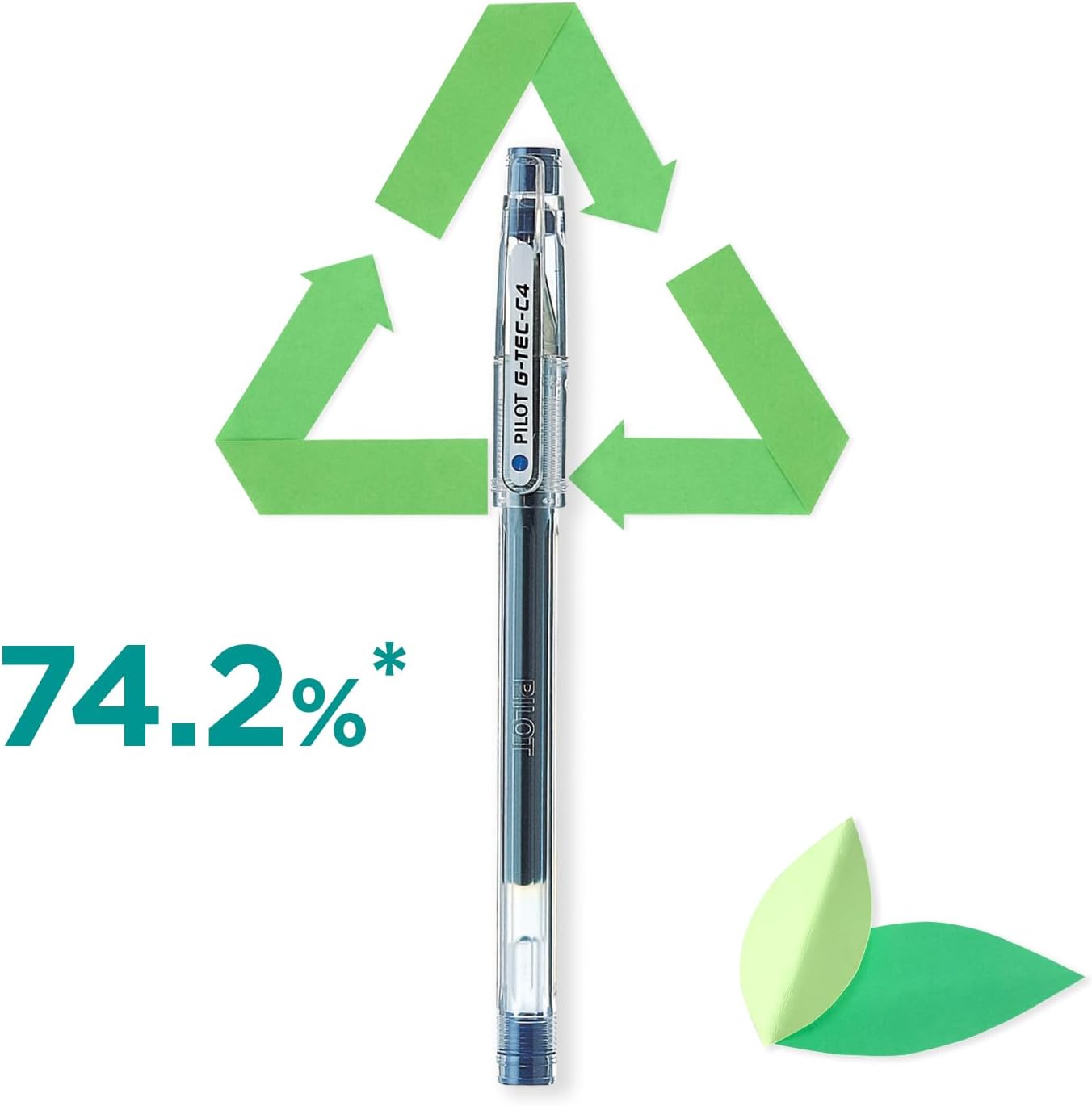 Massima precisione: grazie alla punta ultra-fine HI-TEC da 0,4 mm, la G-TEC-C4 è perfetta per una scrittura nitida e precisa, ideale per i dettagli e i lavori creativi che richiedono un'estrema precisione. Precisione e scorrevolezza: la combinazione di inchiostro gel e di una sfera in carburo di tungsteno resistente all'usura garantisce una scrittura scorrevole e senza sbavature. L'inchiostro scivola facilmente sulla carta per un'esperienza di scrittura fluida. Ricaricabile ed economica: dotata di tappo e ricaricabile, la G-TEC-C4 è una soluzione a lungo termine, più economica ed ecologica, per prestazioni di scrittura sempre ottimali. Durata e robustezza: la sfera in carburo di tungsteno del G-TEC-C4 è dimensionalmente stabile e resistente all'usura, garantendo una durata ottimale per un uso quotidiano affidabile. Rispetto per l'ambiente: realizzata in plastica riciclata, la G-TEC-C4 fa parte della gamma Begreen di PILOT, a dimostrazione dell'impegno del marchio per una scrittura eco-responsabile.