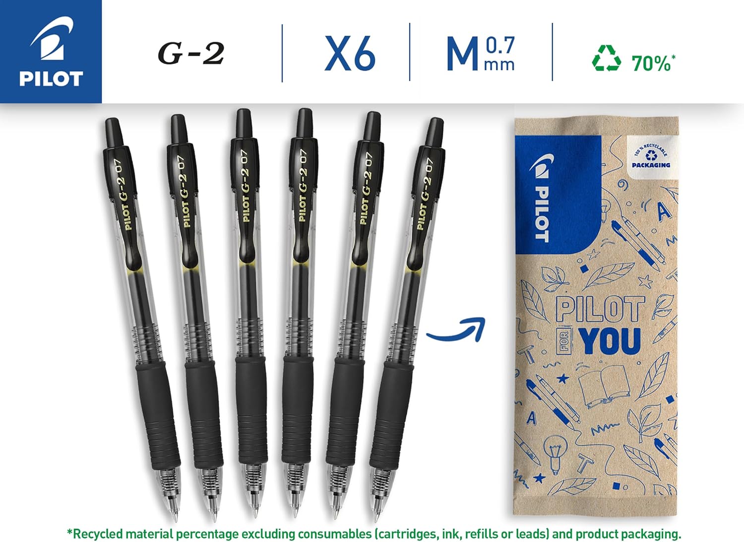 La penna a inchiostro gel più venduta: la punta in acciaio inossidabile resiste alla pressione e la sfera in carburo di tungsteno mantiene la forma ed è estremamente resistente. Non ti pianterà mai in asso Eccezionale comfort di scrittura: la penna roller a punta media (0,7 mm) scorre velocemente e senza intoppi sulla carta erogando una linea di inchiostro vivace e nitida fino all’ultima goccia. Penna retrattile gel ideale per prendere note, per lavorare a progetti creativi e per compilare documenti ufficiali Penna dal design ecologico: realizzata con un minimo del 70% di plastica riciclata, questa penna roller G2-7 dimostra l'impegno di Pilot nei confronti dell'ambiente. Inoltre, è facilmente ricaricabile, riducendo l'impatto ambientale e offrendo una soluzione sostenibile. Praticità quotidiana: dimentica i tappi fuori posto! Questa penna roller retrattile si ritrae con un semplice clic, per offrirti un utilizzo comodo e senza problemi ogni giorno, a casa, in ufficio o in viaggio. Ampia gamma di Colori: disponibile in 31 Colori vivaci, questa penna a inchiostro gel offre un'ampia scelta per tutte le tue esigenze di scrittura, dalle più classiche alle più creative. I Colori pastello, neon e metallizzati aggiungono un tocco di fantasia ai tuoi documenti.