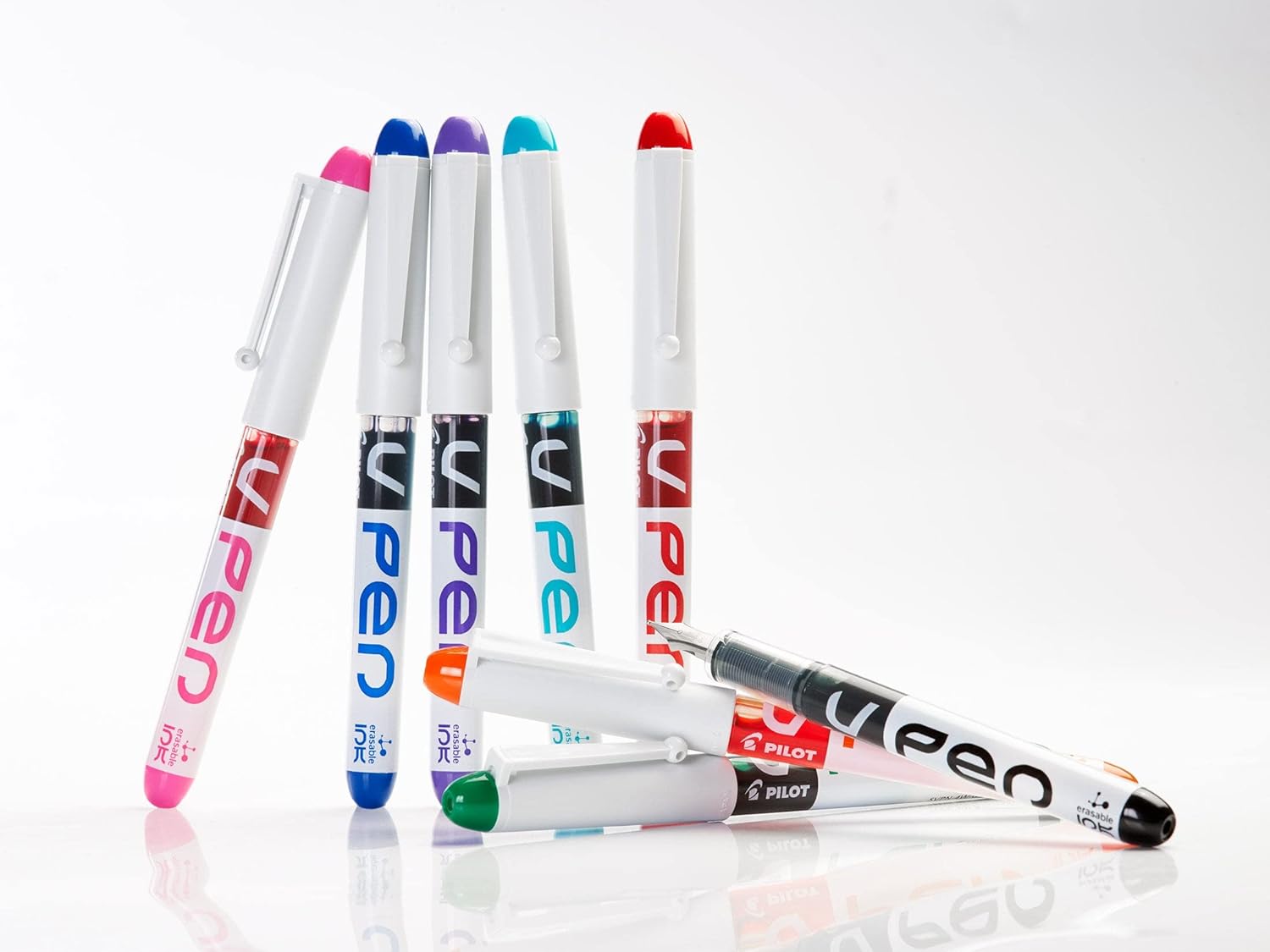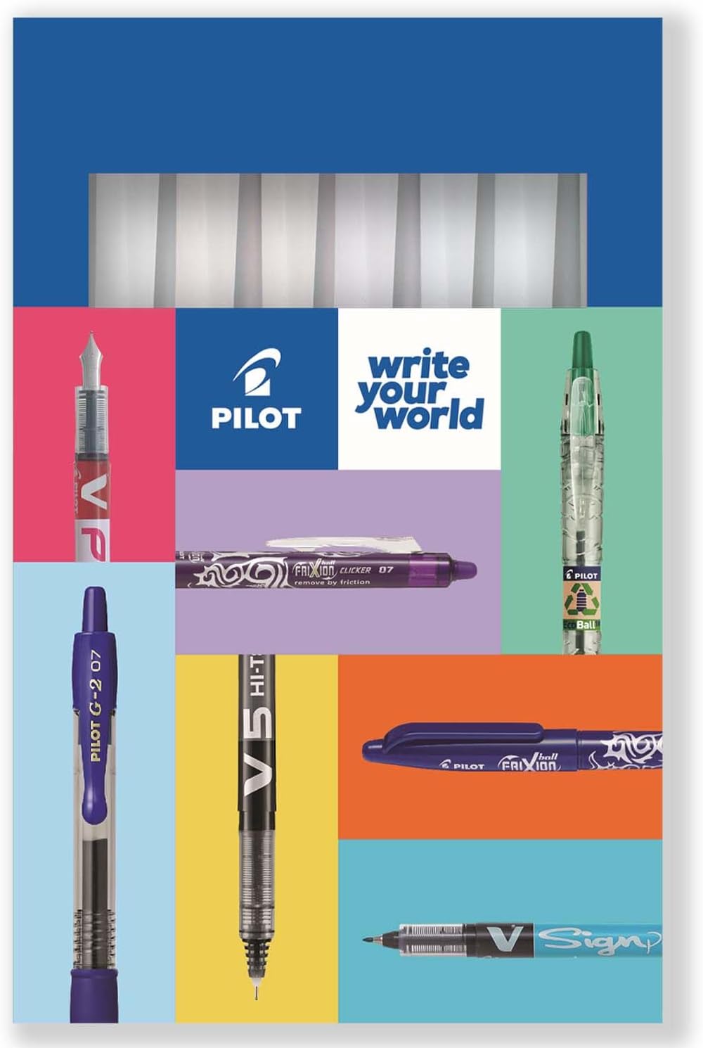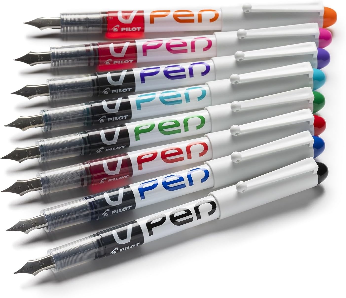 Unisce il comfort e la praticità di una penna roller alla precisione di una penna stilografica. Presenta una molla da 0,58 mm. Niente più cartucce disordinate o carta assorbente. Queste penne contengono inchiostro liquido puro e offrono un risultato fluido e vibrante. Il livello di inchiostro visibile significa che puoi tenere sempre d'occhio il livello di inchiostro e il suo pennino arrotondato lo rende adatto ai mancini. La V-PEN è ideale come prima penna per chi impara a scrivere con l'inchiostro perché se commetti un errore, l'inchiostro verrà cancellato utilizzando gomme da cancellare standard. Questo set contiene otto penne stilografiche usa e getta Pilot Pen con i seguenti colori di inchiostro: 2 x nero, rosso, rosa, viola, blu, pavone e verde.