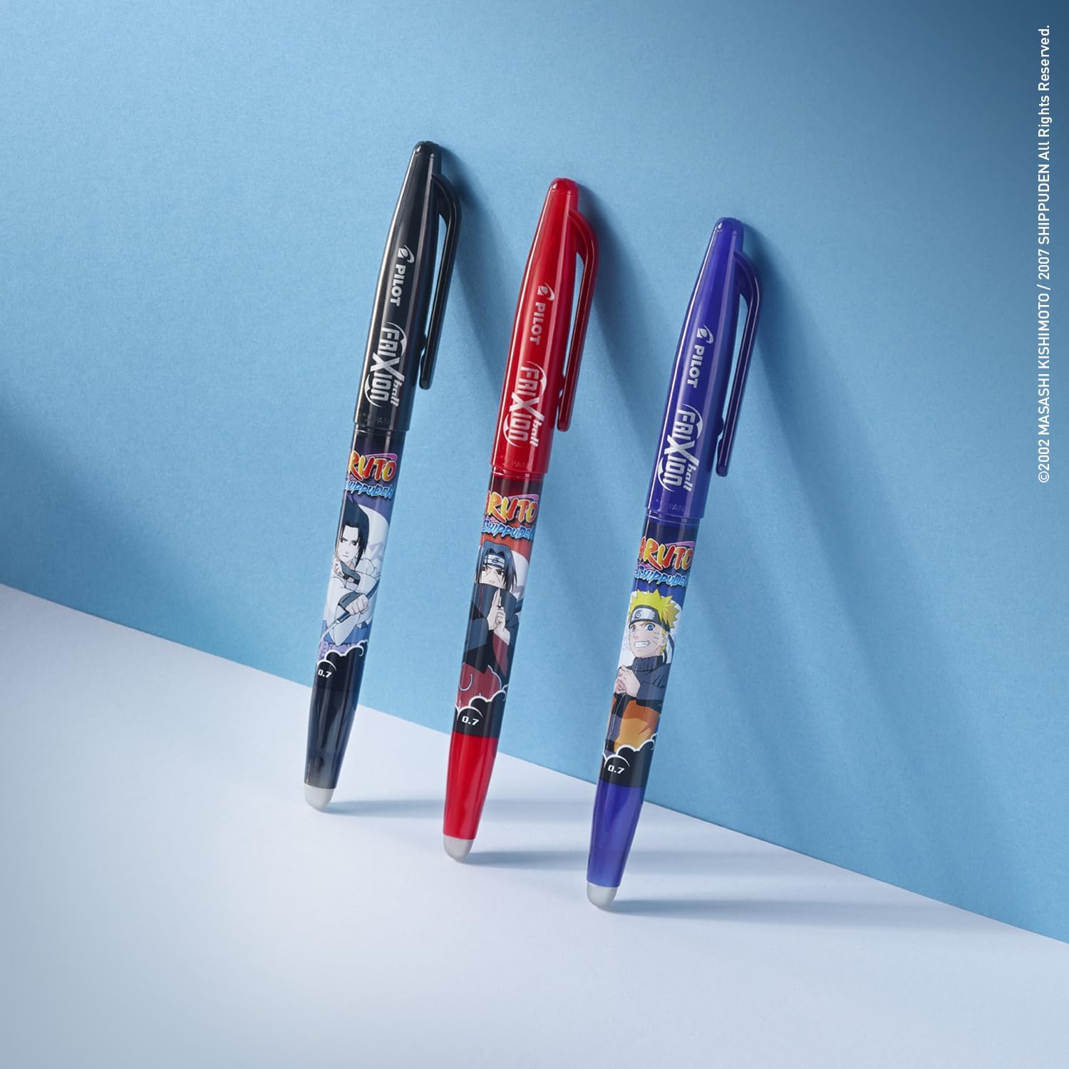 ️EDIZIONE LIMITATA PILOT FriXion x NARUTO SHIPPUDEN: Immergiti nell'universo di Naruto Shippuden con la nostra nuova collaborazione! Ispirate ai personaggi iconici, le nostre penne in edizione limitata offrono un design unico e accattivante. Collezionali ora e unisciti alla comunità dei fan. Innovazione rivoluzionaria: la penna cancellabile FriXion reinventa il tuo modo di scrivere. Grazie alla sua tecnologia unica, scrivi, cancellare e riscrivere istantaneamente senza la minima traccia o ratura. Niente più sprechi di carta, finito le pagine strappate, con le penne FriXion, la tua scrittura è sempre perfetta. Scrittura fluida e precisa: il FriXion Ball e FriXion Ball Clicker 0,7 offrono una scrittura di medie dimensioni, perfetta per tutte le tue prese di appunti, compiti e attività a casa. La punta resistente a cadute e urti garantisce una scrittura morbida e senza sbavature, per un risultato impeccabile ogni volta. Penna cancellabile 2 in 1 ultra pratica: non perdere più tempo a ricominciare i tuoi scritti dall'inizio! Con FriXion, cancellate gli errori in un istante, senza lasciare residui. Ottieni un lavoro pulito e risparmia tempo prezioso. Porta il tuo roller cancellabile ovunque con te grazie alla pratica clip, da appendere a quaderni, fogli e diari Questo pacchetto contiene: 3 rulli cancellabili FriXion Ball 0,7 mm nero, blu e rosso. Con i personaggi Naruto, Sasuke e Itachi. 2002 MASASHI KISHIMOTO / 2007 SHIPPUDEN All Rights Reserved.