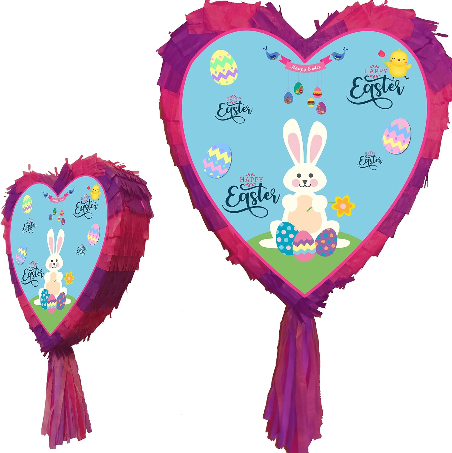 La piñata a forma di cuore pasquale viene fornita con rilegatura in stick e carta. Pinata include finestra di riempimento e cinturino o cinturino. La Pinata è vuota e può essere facilmente riempita con 1-2 kg di caramelle o mini giocattoli. Adatto sia a bambini che ad adulti. Unisex Sarà imballato in un sacchetto di plastica e imballato in un cartone resistente. Piñata a cuore con due lati piatti. Ogni pagina con stampa. Le foto del display mostrano la parte anteriore e posteriore della pinata. Può essere utilizzato per giochi di festa di Pasqua o feste di compleanno durante le vacanze di Pasqua.