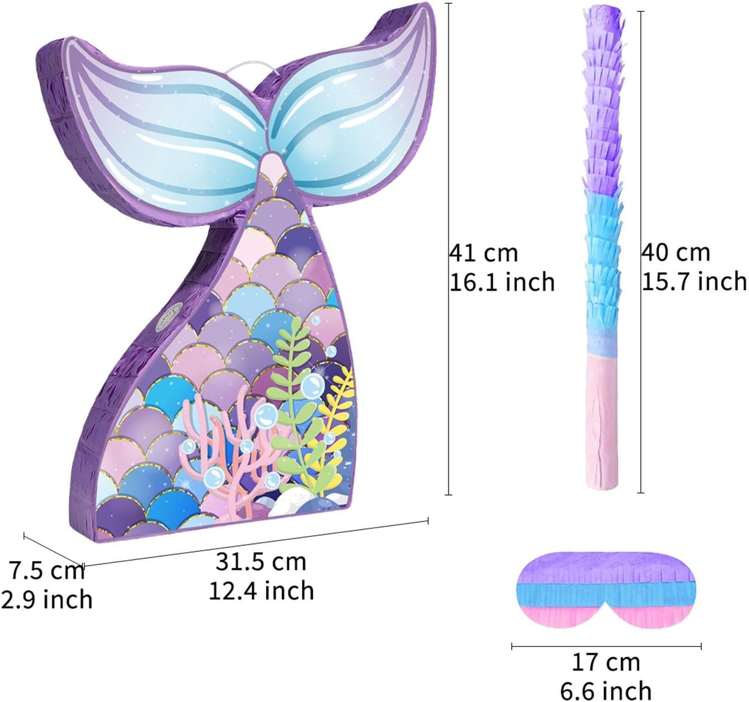 【Facile da usare】: Dotata di un robusto anello di sospensione e di fori pre-forati nella parte superiore, questa decorazione a forma di farfalla per compleanno è facile da riempire con dolcetti. Puoi colpirla con l'asta inclusa o tirare la corda in basso. 【Ideale per varie celebrazioni】: Adatto per feste a tema sirena, compleanni, feste in giardino, riunioni di famiglia, attività in classe, anniversari o qualsiasi altra occasione speciale in cui si desidera aggiungere un po' di divertimento ed eccitazione 【Dimensioni adatte per il divertimento】: Misurando 31,5 cm x 7,5 cm x 41 cm / 12,40 pollici x 2,95 pollici x 16,14 pollici, questa decorazione per feste ha le dimensioni perfette per contenere molti snack o regali senza essere troppo pesante, rendendola facile da appendere e con cui giocare durante il tuo 【Design elegante】: questa a forma di sirena presenta un design straordinario con colori e dettagli intricati, che la rendono una splendida aggiunta a qualsiasi festa 【Costruzione robusta】: realizzata in carta, questa per compleanno è progettata per resistere a colpi entusiastici, reggendo in modo sicuro fino a chili di dolci, mini giocattoli e altre prelibatezze fino al momento del rilascio.