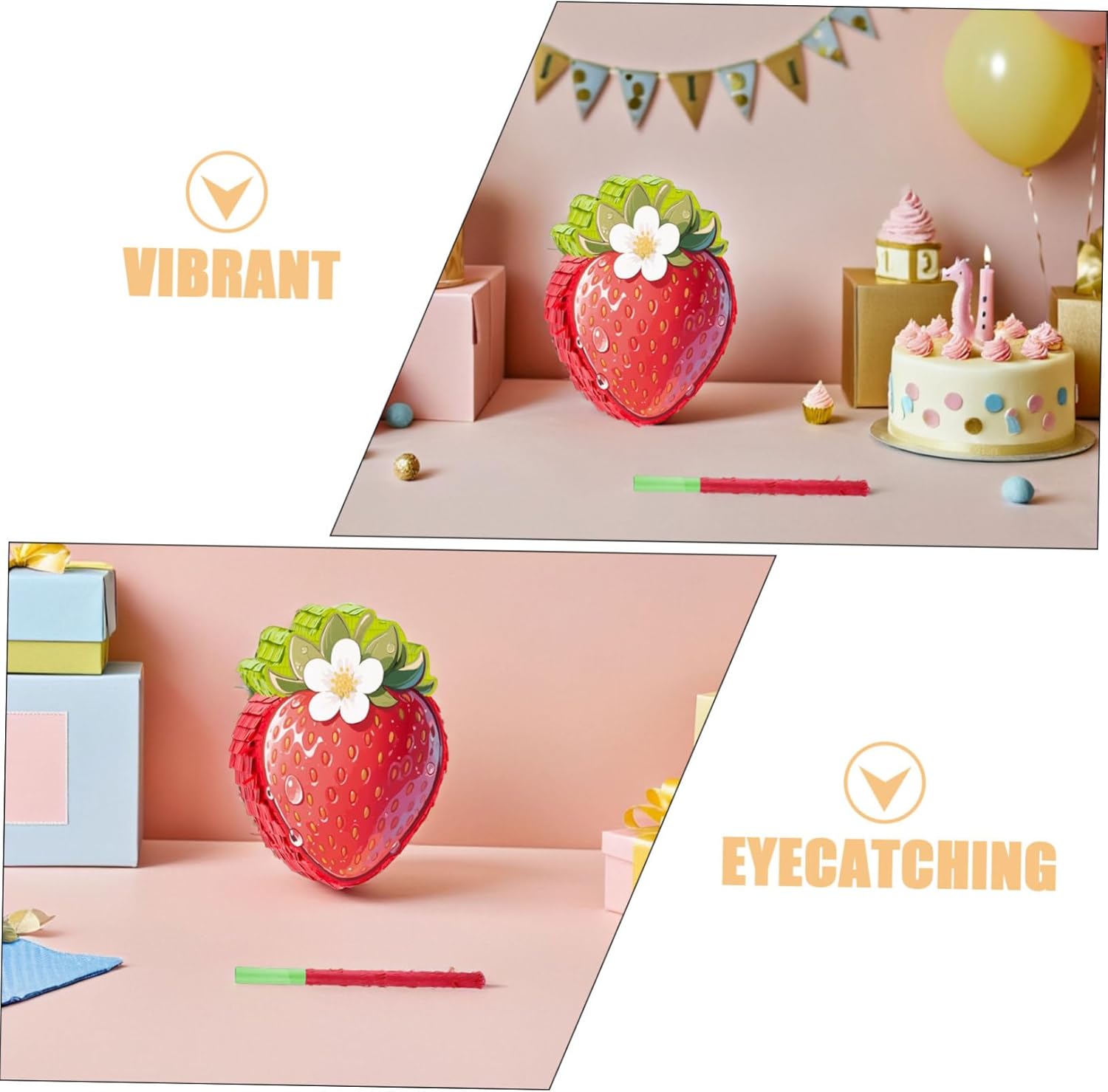 Per varie occasioni: ideale per la decorazione per la prima festa di compleanno alla fragola, per i giochi di piñata per il Cinco de Mayo o per attività a tema alimentare, porta divertimento in ogni celebrazione, decorazione per feste di compleanno 3D, gioco per feste con le fragole per E design vivace: questa piñata per feste di compleanno alle fragole in cartone e decorata con carta crespa garantisce resistenza e un aspetto luminoso, accattivante, centrotavola per feste alle fragole, coriandoli di carta colorata Ideale per le celebrazioni: per giochi di società Cinco de Mayo, forniture per feste di compleanno alle fragole o compleanno a tema fragole attività di piñata che rendono ogni evento indimenticabile, piñata con cibo per feste di compleanno, giochi per feste con fragole Design di alta qualità: questa piñata alla fragola in cartone e decorata con carta crespa fornisce decorazioni robuste e colorate per decorazioni di fragole per feste, giochi di piñata per feste con gli occhi bendati e regali per feste di piñata alle fragole. Emozionante attività di festa: include una benda e un bastone per emozionanti giochi di cibo per feste con gli occhi bendati, giochi di feste con fragole e divertenti giochi di piñata con cibo che garantiscono un divertimento senza fine per i bambini, divertenti giochi di piñata con gli occhi bendati, decorazioni per la festa del primo compleanno con fragole