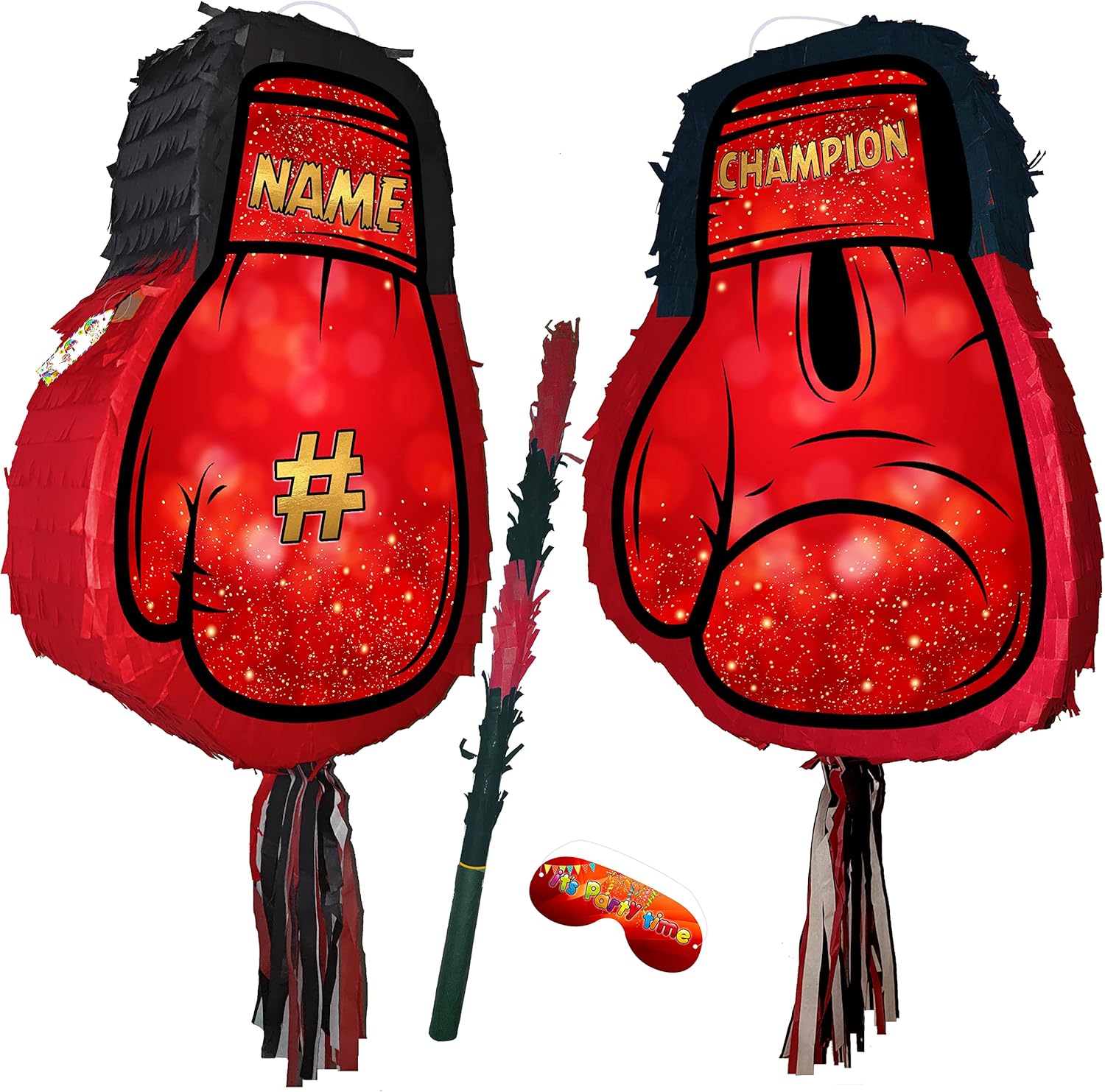 Realizzato con carta e cartone. Contiene una finestra di riempimento e una cinghia di fissaggio. Design unisex adatto a tutti. Adatto sia a bambini che ad adulti. Il bastone è lungo 50 cm e la benda è di carta. La foto mostra la parte anteriore e posteriore della piñata.