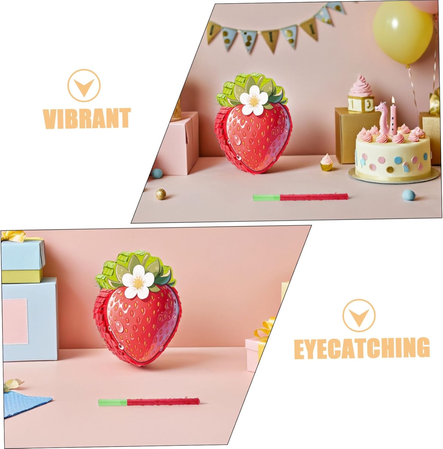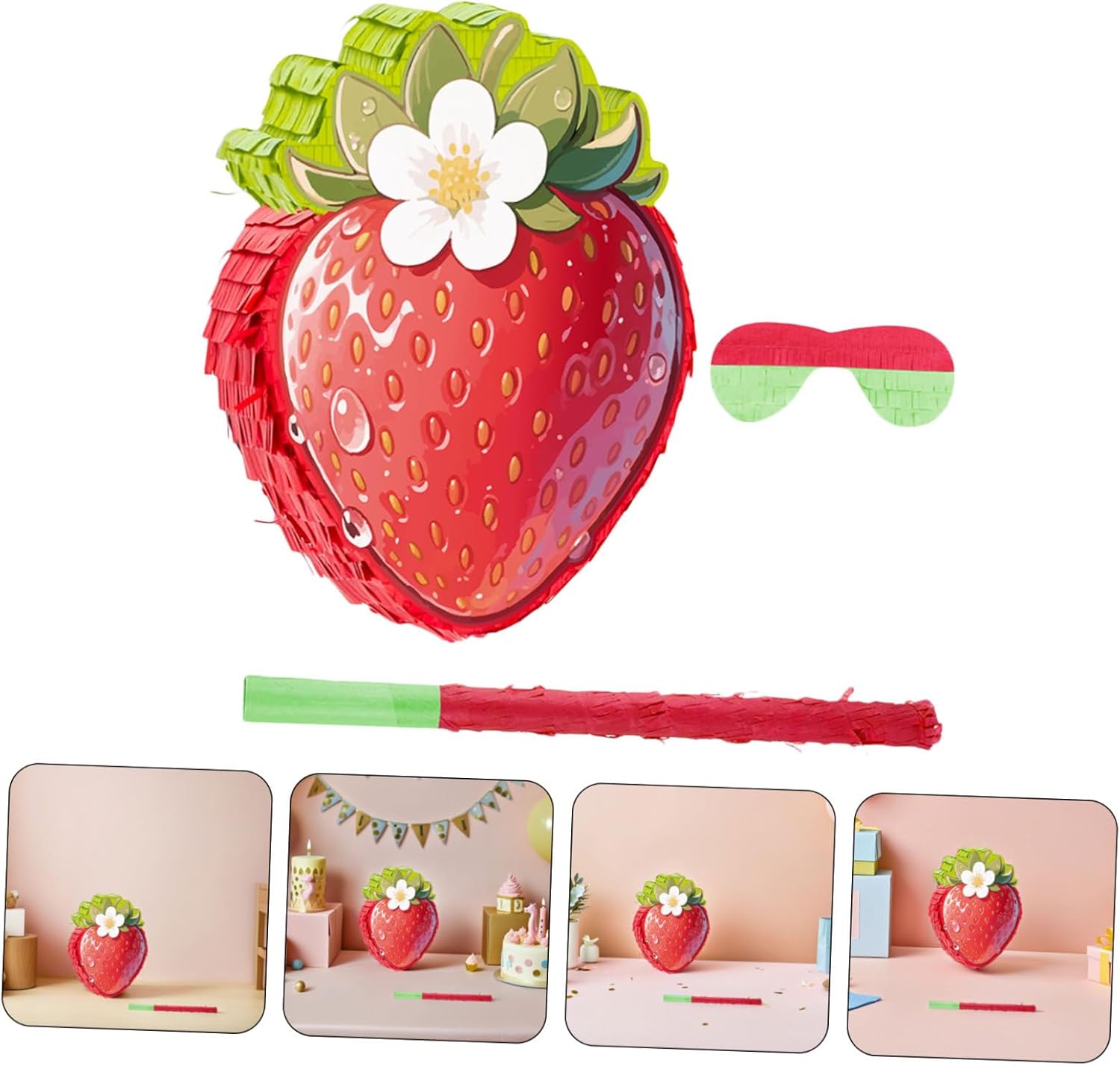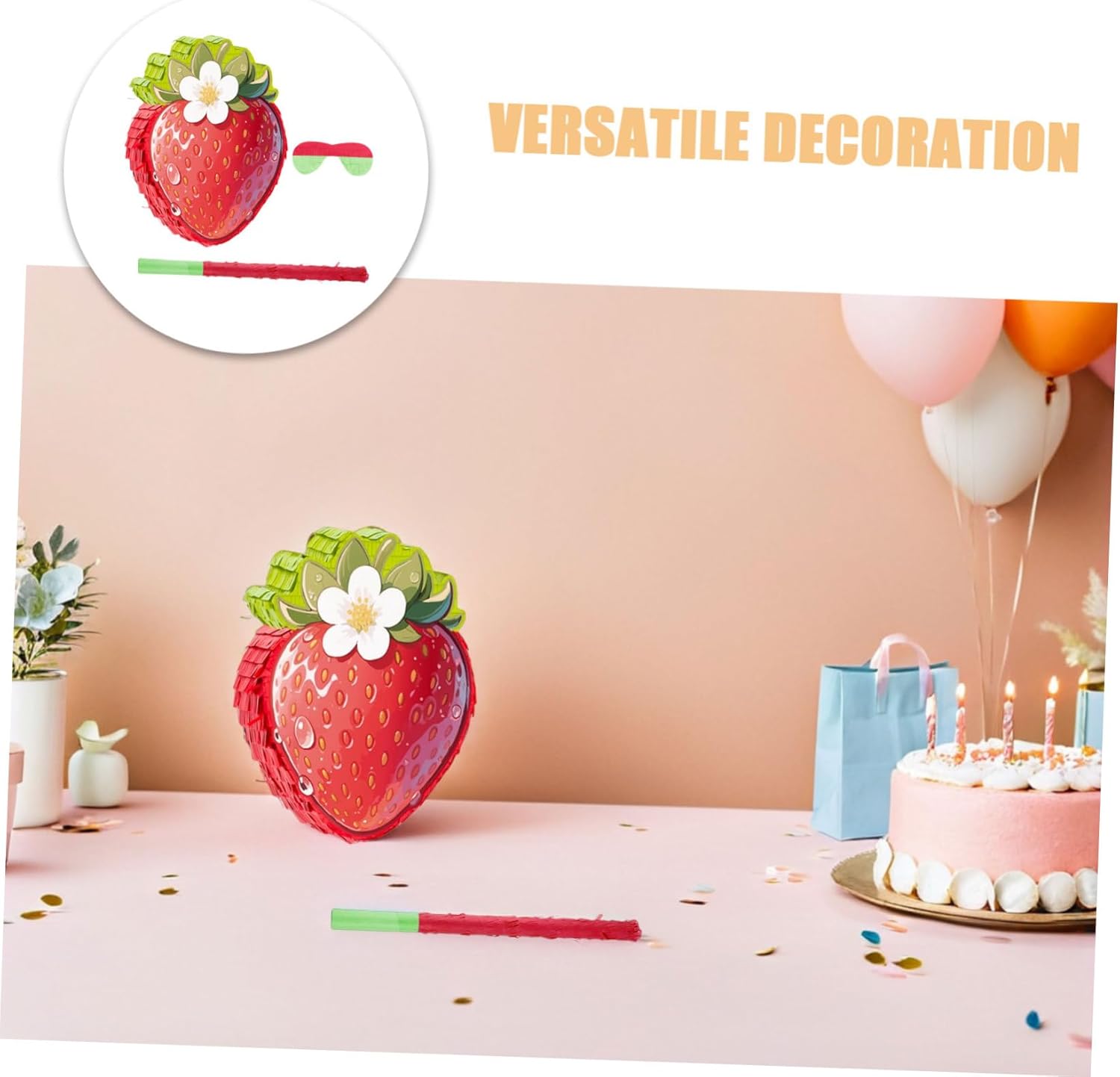 Versatilità decorativa: usalo come decorazione per bomboniere alla fragola o appendilo come parte di una decorazione alla fragola per aggiungere fascino alle feste a tema fragola, piñata di compleanno a tema fragola e divertenti piñata alimentari. Elemento di gioco interattivo: viene fornito con una benda e un bastone per divertenti giochi di piñata con gli occhi bendati per feste di compleanno, un gioco di fragole per attività di decorazione di compleanno a tema cibo, una piñata cinco de mayo e una divertente piñata con fette di fragola in dotazione Ideale per celebrazioni: per giochi di società cinco de mayo, forniture per feste di compleanno con fragole o attività a tema piñata compleanno con fragole che rendono qualsiasi evento indimenticabile, piñata di compleanno cinco de mayo, giochi alimentari cinco de mayo Facile da usare: con Dotato di appendino anello e un foro di riempimento, può essere facilmente riempito con coriandoli, regali di compleanno, caramelle o decorazioni per feste a tema fragola, decorazioni per feste con coriandoli o oggetti di scena per foto di fragole. Decorazione versatile: usa questa piñata alla fragola come accessorio fotografico per una festa alla fragola o appendila al soffitto, alle finestre o alle pareti per decorazioni di compleanno a tema fragola, coriandoli di carta colorata, decorazioni alla fragola per la festa del primo compleanno