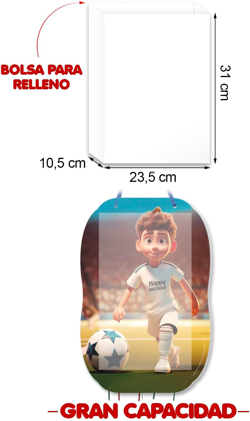 DIVERTIMENTO A TEMA: Scegli tra le nostre numerose varianti di attrezzatura da calcio: Rojiblanca, Azulgrana, Merengue, Rojita. Dimensioni grandi: misurando 30 x 46 cm, queste pinate sono abbastanza grandi da distinguersi in ogni celebrazione e garantire un'esperienza unica. GRANDE CAPACITÀ: riempi queste pignatte con regali e dolcetti per garantire a tutti i più piccoli il brivido di romperle e ricevere sorprese. Facile da montare: dimentica le complicazioni. Ogni piñata viene fornita con semplici istruzioni per un montaggio facile e veloce, così puoi concentrarti sul divertimento. GARANZIA AL 100%: Se non sei soddisfatto del nostro prodotto, contattaci al più presto e ti forniremo la soluzione migliore.