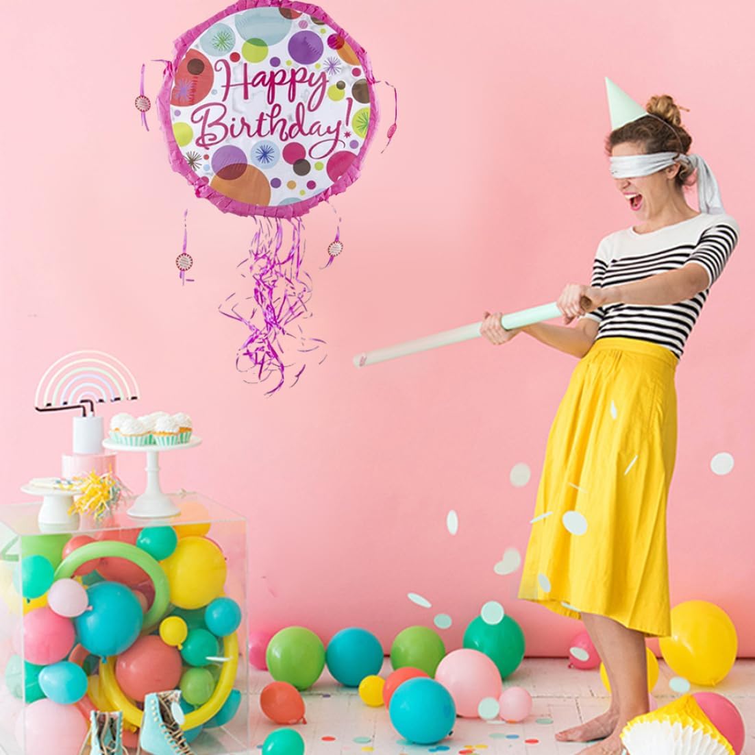 Carta di qualità: le pignatte arcobaleno realizzate con carta di alta qualità sono ecologiche e robuste. Le pignatte arcobaleno offrono spazio sufficiente per installarle. Con colori brillanti, questa decorazione rotonda di pignatte è squisita e adatta a tutti i tipi di eventi di festa. Decorazione di compleanno: le pignatte di compleanno sono un'ottima decorazione di compleanno per portare un'atmosfera divertente e festosa alla tua festa. Le pignatte di compleanno sono adatte anche per diverse occasioni come feste in ufficio o feste di compleanno per bambini. Facile da usare: le pignatte sono dotate di cordoncini.. Basta riempire le pigne con alcuni giocattoli, carta, caramelle e altri riempitivi.. Puoi lasciare che i tuoi amici disegnino il nastro sottostante.. Solo la persona fortunata disegna il nastro collegato al riempitivo, il riempitivo all'interno.. Quindi appare la persona fortunata. Ampie applicazioni: queste pignatte sono popolari a qualsiasi festa e possono facilmente trasformare il tuo evento in una festa a tema di carnevale come Cinco de Mayo, festa Fiesta, festa taco, festa a tema messicana, festa di compleanno per bambini, decorazione di ghirlande, oggetti fotografici per feste, collezione di famiglia, decorazioni per celebrazioni. Facile da riempire: le Pinatas da festa possono essere facilmente riempite con dolcetti Pinatas come caramelle, cioccolatini, mini giocattoli o coriandoli. Le pignatte da festa sono un'ottima fornitura per sorprendere i tuoi ospiti con un'attività divertente e dolcetti (riempitivi non inclusi)