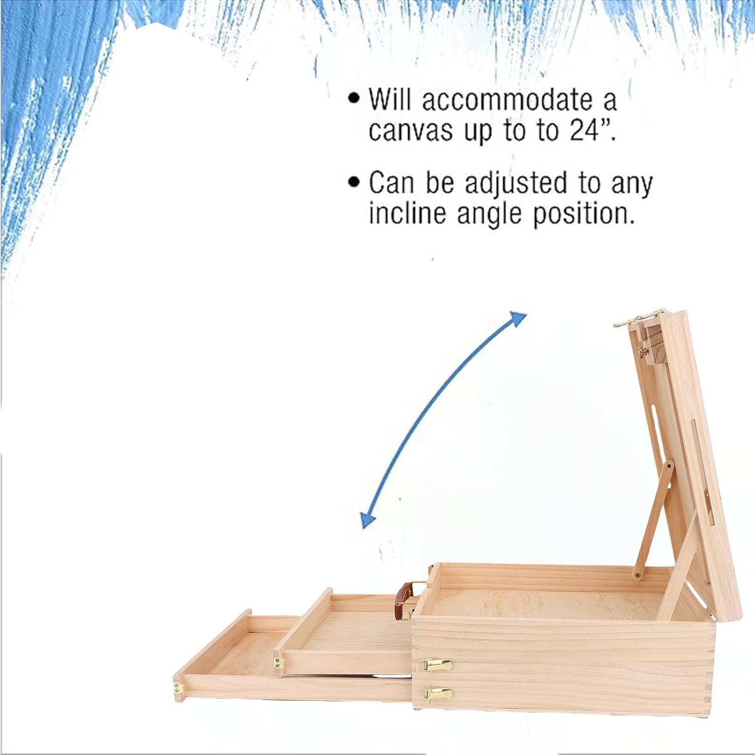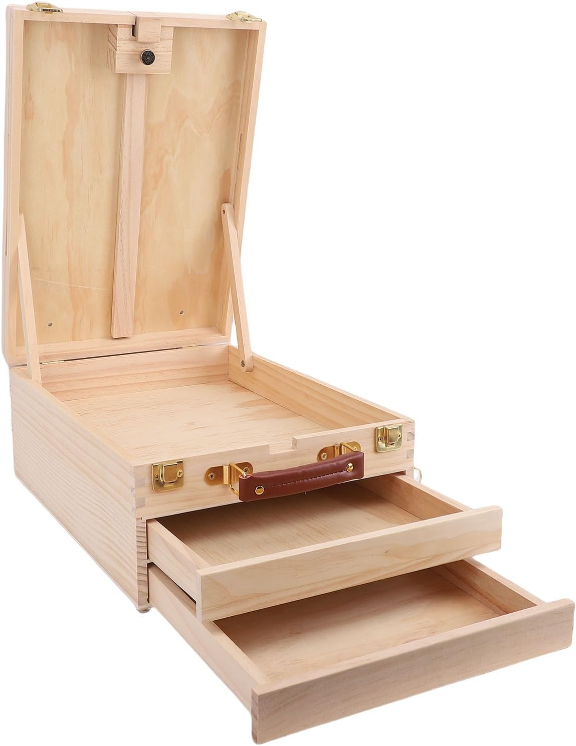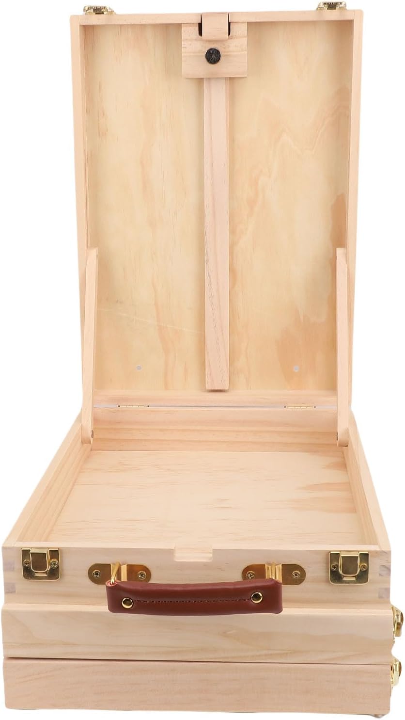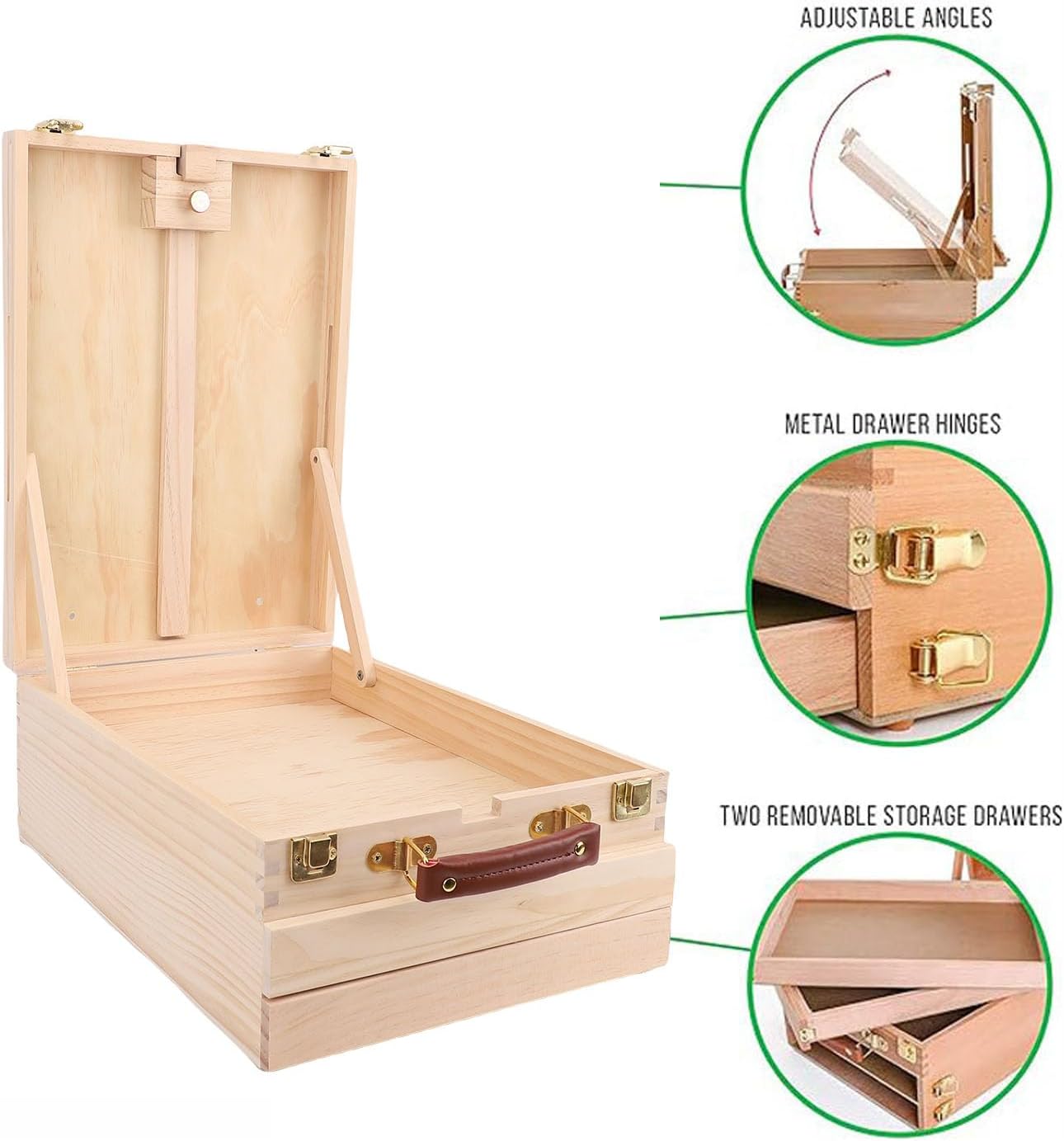 Design del cavalletto: questa scatola Pochade combina un classico cavalletto francese con un ampio vano per la conservazione, realizzato in legno di pino per durata. Si converte facilmente una scatola di trasporto compatta in un robusto cavalletto tavolo per la pittura e lo schizzo Altezza e angolo regolabili: il cavalletto tavolo ospita tele fino a 24 pollici, con una staffa superiore estendibile e un angolo di inclinazione regolabile per la posizione ergonomica. Adatto agli artisti che cercano flessibilità nel loro spazio di lavoro Ampia spazio di archiviazione: due cassetti scorrevoli forniscono un archivio organizzato per pennelli, penne di pittura, pennarelli, carta e altre forniture d'arte. Progettato per mantenere le forniture d'arte accessibili ma ordinate durante le sessioni di pittura all'interno o all'esterno Compatto e portatile: si piega a 10,75 x 14,75 x 6,25 pollici, che si espande a 32 pollici di altezza. La costruzione di pini leggeri rende questa scatola Pochade facile trasportare per schizzi e pittura artistici, molto adatto a studenti e artisti senior Soluzione di pittura: questa scatola di schizzi in legno Elamel integra una stazione di lavoro stabile con funzione di stoccaggio, eliminando il disordine tavolo. Una scelta pratica per studenti e artisti professionisti che necessitano di una configurazione mobile ma funzionale