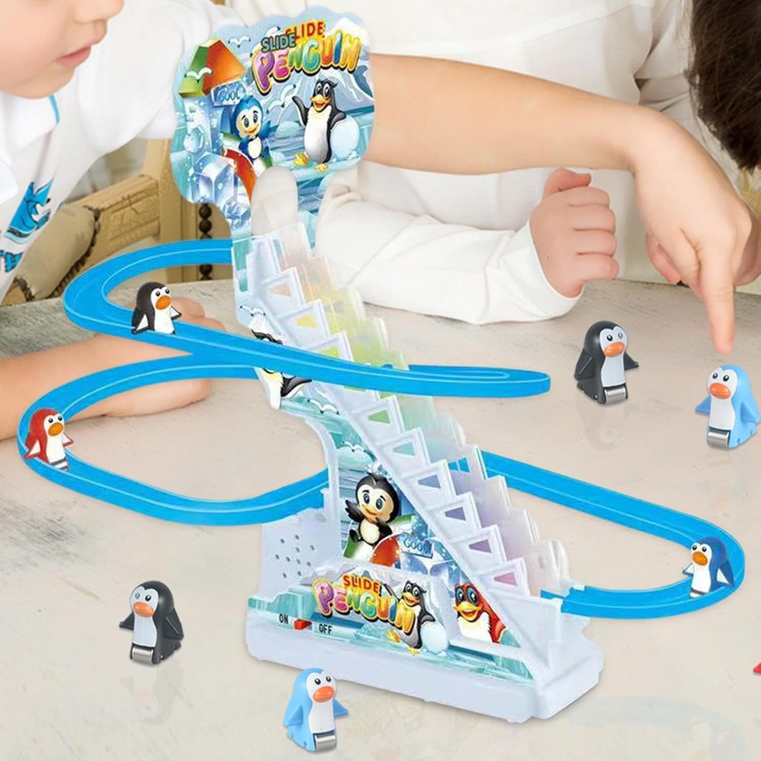 Vivi il brivido: fai sorridere il tuo bambino con questo divertente ed eccitante giocattolo scivolo pinguino. pinguini correre in pista, offrendo intrattenimento senza fine, perfetto per i secoli. DIVERTIMENTO D'ESCALATE: Il giocattolo scivolo pinguino stuporà le con la sua funzione di arrampicata automatica, permettendo al pinguino dei cartoni animati di salire e sulle scale senza sforzo. i bambini si innamorano delle affascinanti piste da arrampicata e trascorri ore a giocare con le animazioni. DESIGN DI LUCI E MUSICA: Il giocattolo scorrevole pinguino presenta un mix di musica orecchiabile e luci lampeggianti LED incantevoli, rendendolo il regalo perfetto per il compleanno del tuo bambino o una festa di Natale. Un ottimo modo per aggiungere divertimento e divertimento a queste occasioni speciali. ASSEMBLAGGIO DIVERTENTE IN FAMIGLIA : Fissare facilmente le parti in cartone per creare un ambiente interattivo che promuova i legami familiari creando insieme impronte di pinguini. Sviluppa la coordinazione occhio-mano: con una costruzione ABS robusta e di alta qualità, il giocattolo scorrevole pinguino è un ottimo strumento per aiutare a sviluppare la coordinazione occhio-mano. Progettato per i 3 anni in su, questo giocattolo garantisce una durata duratura e offre un piacere e uno sviluppo di abilità senza fine.