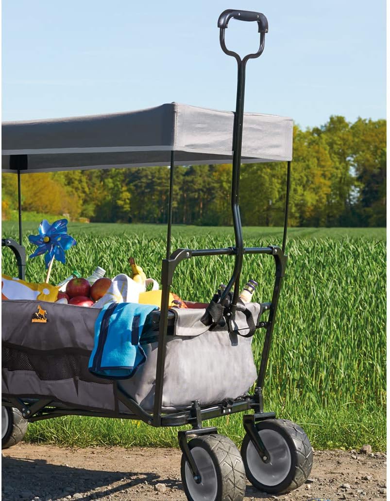 Carrello pieghevole 'Paxi' con tettuccio parasole, borsa per il trasporto e borsa posteriore. Telaio in metallo: laccato nero, tessuto grigio in 100% poliuretano. Dimensioni L 124 x P 59 x H 67 con tetto 102 cm, peso 11 kg, capacità di carico 70 kg, n. art. 238001 Il carrello a mano può essere ripiegato in pochi semplici passaggi per risparmiare spazio. Riposto nella pratica borsa per il trasporto, può essere facilmente portato con sé con un peso di soli 11 kg e si adatta anche al bagagliaio più piccolo. La borsa posteriore esistente offre spazio di stivaggio aggiuntivo per tutti i compagni di viaggio importanti oltre all'ampia superficie di carico L 86 x P 43 x A 25 cm Il carico nel carrello pieghevole è protetto dalla luce solare diretta grazie al tetto incluso Con gli assi in acciaio e le gomme in PU, il carrello pieghevole è adatto a tutti i sentieri e anche alla spiaggia. Grazie alla robusta barra di trazione, il carrello può essere facilmente tirato e manovrato. Il ricamo Pinolino è un ulteriore colpo d'occhio I prodotti internazionali hanno condizioni diverse, sono venduti dall'estero e possono differire dai prodotti locali, per quanto riguarda vestibilità, classificazione in base all'età, lingua del prodotto, etichettatura o istruzioni.