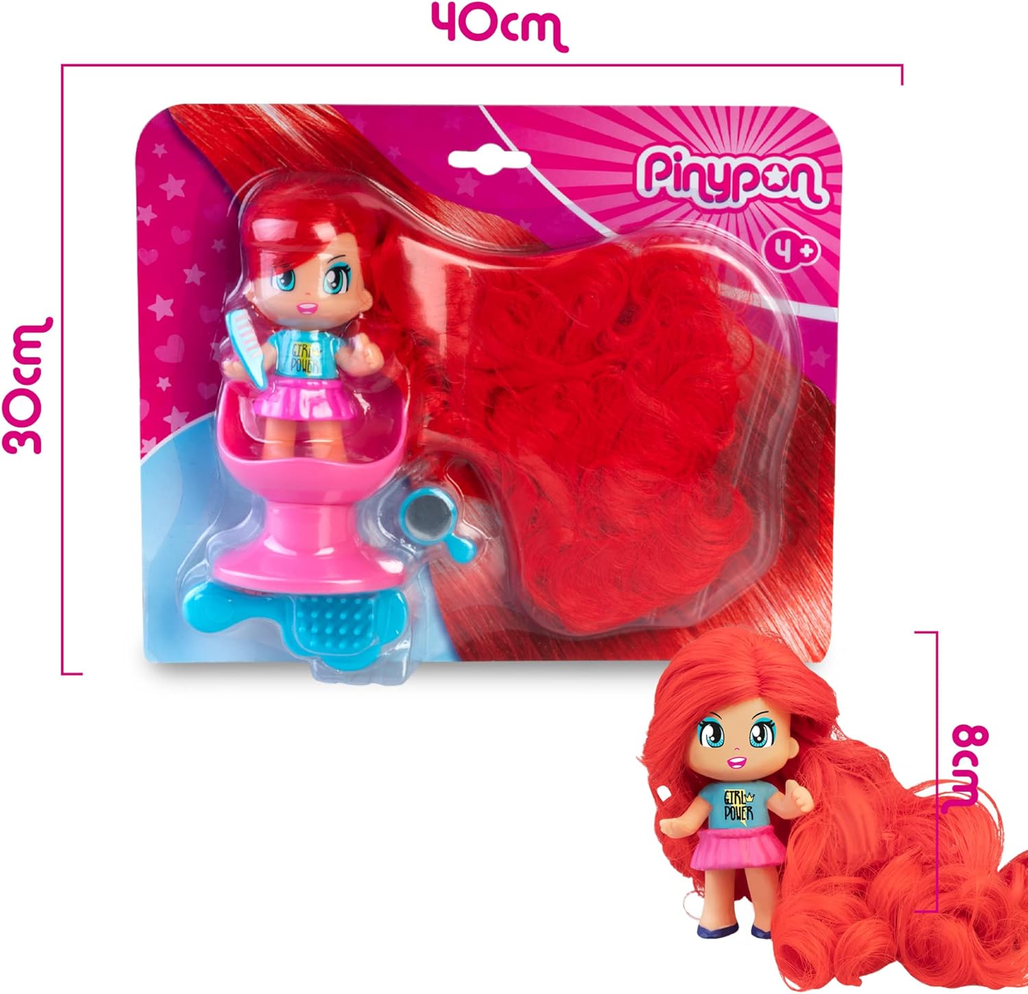 Personaggi Pinypon capelli sono I personaggi che hanno capelli veri lunghi da acconciare, disponibili in tre colori: capelli rosa, capelli rossi e capelli viola I 3 personaggi indossano un completo composto da una gonna e una maglietta di diversi colori e con diversi disegni Include una poltrona da parrucchiere e 3 piccoli accessori: un divertente set di 2 pettinini e uno specchio Queste 3 mini bambole sono Pop e Swap, puoi scambiare le parti del corpo con il resto delle figure Pinypon e fare combinazioni; il viso ha due espressioni differenti, girandola cambia espressione Sono un ottimo regalo per bambini dai 4 anni, che amano i capelli lunghi e fare acconciature; sarà possibile fare divertenti combinazioni e innumerevoli storie; personaggio con capelli rossi