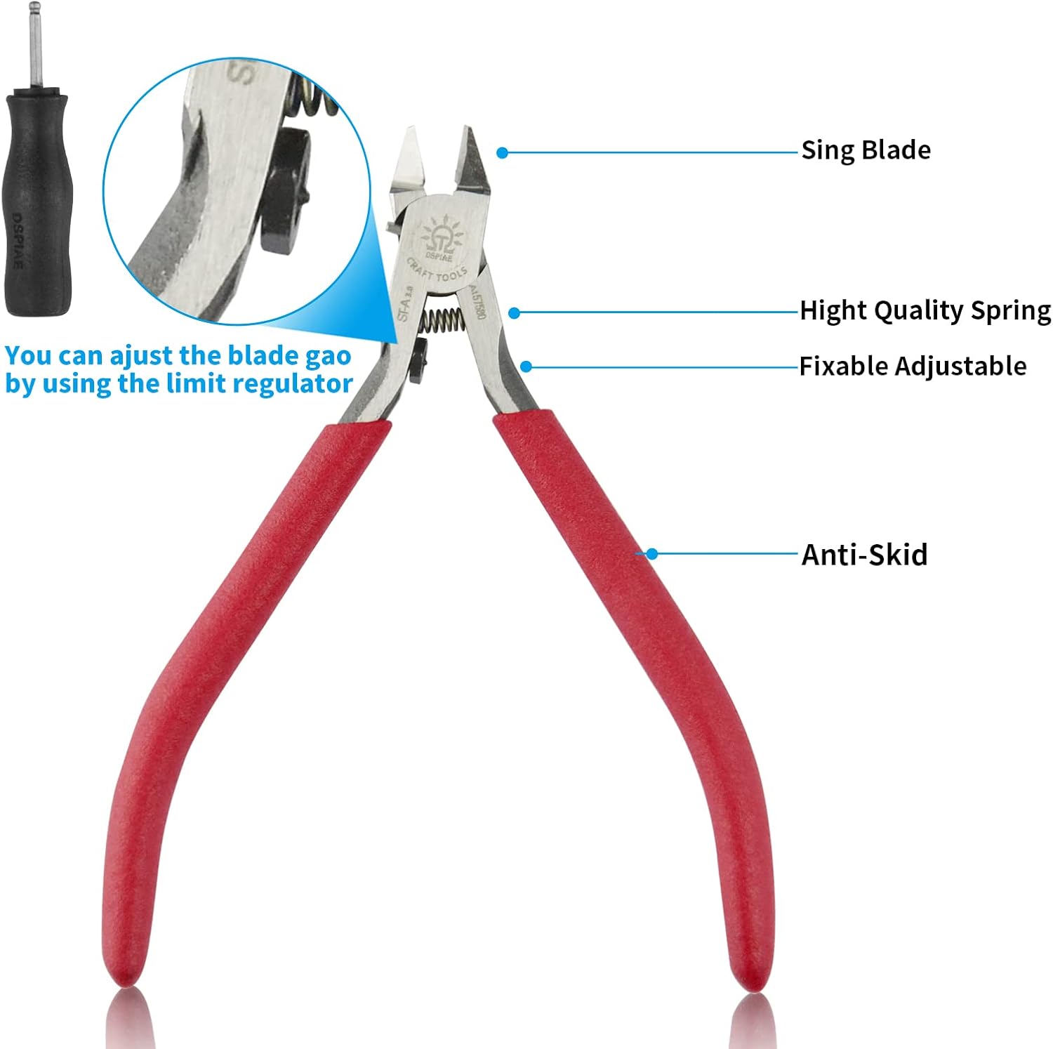 Lama affilata a filo singolo per tagli impeccabili. Prodotto con una lama precisa a filo singolo realizzata in acciaio temprato di alta qualità. Queste pinze eseguono tagli puliti e senza sforzo su parti di modelli in plastica, riducendo al minimo i segni di stress e garantendo ogni volta una finitura professionale. Durevole e sicuro con arresti della lama regolabili. Con arresti regolabili per evitare che la lama si rompa a causa di una forza eccessiva. Queste pinze sono costruite per prestazioni durature proteggendo al tempo stesso il tuo investimento. Compatto ed ergonomico per un utilizzo confortevole. Con una lunghezza di soli 5 pollici, la ST-A 3.0 presenta un design opaco e antiscivolo dell'impugnatura che riduce l'affaticamento della mano durante l'uso prolungato e fornisce un migliore controllo e stabilità per l'utilizzo con una sola mano. Perfetta per parti minuscole e dettagli complessi. Con una bassa densità di chiusura, queste pinze bloccano e tagliano senza sforzo parti di assemblaggio di modelli di piccole dimensioni fino a 3 mm di spessore, rendendole ideali per tagliare materozze, rimuovere linee di stampo e lavori di finitura dettagliati. Portatile e protettiva con accessori premium. Include un cappuccio protettivo per la lama e una robusta scatola di conservazione per sicurezza. trasporto e stoccaggio organizzato, garantendo che le tue pinze rimangano al sicuro e pronte per l'uso ovunque ti portino i tuoi progetti.