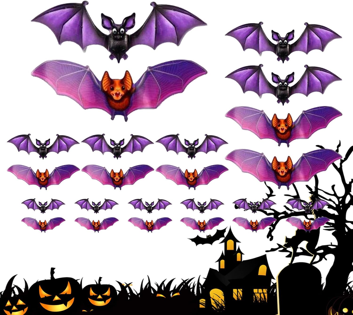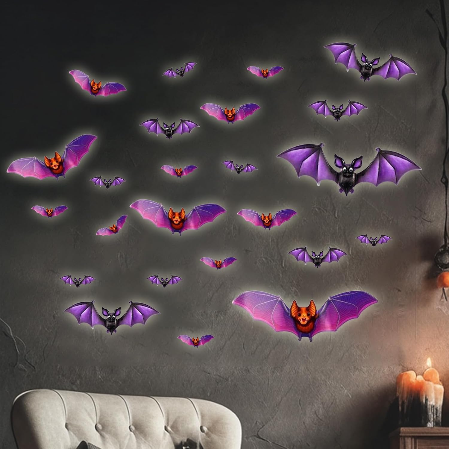 Per molte occasioni: gli adesivi creano un'atmosfera spettrale alle feste o come decorazione quotidiana in cucina, giardino o camino. Come decorazione da parete, tavolo o camino, offrono una soluzione accattivante per diversi ambienti. FACILE DA USARE Questi adesivi per Halloween trasformano istantaneamente qualsiasi area in un ambiente tematico grazie all'applicazione senza sforzo e al posizionamento versatile, ideali per la decorazione della casa su diverse superfici e in stanze diverse per creare un'atmosfera istantanea di Halloween senza sforzo Design accattivante: questi adesivi con luci a LED creano un bagliore incantevole che arricchisce il design classico e crea un'atmosfera misteriosa, ideale per feste spaventose o decorazioni in case infestate durante le feste di Halloween. Crea atmosfera: gli adesivi migliorano l'atmosfera festosa della tua casa con decorazioni creative. Offrono divertimento per famiglie e un modo semplice per i bambini di partecipare, e trasformano qualsiasi stanza in un ambiente stagionale memorabile con un effetto ricordo ideale. Effetto decorativo: con la funzione di illuminazione a LED, questi adesivi trasformano qualsiasi stanza in un misterioso paesaggio notturno, creano un'atmosfera incantevole e inquietante e sono perfetti per decorare finestre o decorazioni murali durante le feste di Halloween