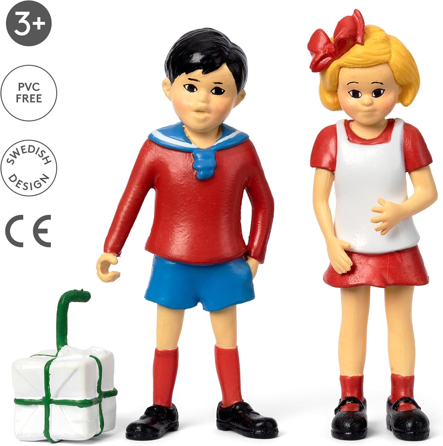 TOMMY E ANNIKA FIGURES Pippi intraprende molte avventure con i suoi cari amici Tommy e Annika. Questi adorabili giocattoli per ragazze e ragazzi si adattano alla casa delle bambole di Pippi. Il set da 3 pezzi ha 2 action figure e una confezione regalo. È un regalo per Pippi? Regalo di compleanno per ragazze giocattoli regalo popolari per ragazze e ragazzi dai 3 ai 12 anni. A 80 mm, queste figure per bambini hanno le stesse dimensioni della action figure Pippi Calzelunghe e sembrano proprio come i personaggi dei libri Pippi Calzelunghe. STORIE DI GIOCO DI RUOLO CREATIVE Ogni figura giocattolo è fedele alle illustrazioni originali nei libri di Pippi. Piccole mani si rafforzano mentre afferrano queste figure giocattolo. L'immaginazione fiorisce e le abilità sociali migliorano durante il gioco. Quale sarà la loro prossima avventura? La sicurezza viene sempre prima di tutto. I nostri giocattoli magici per bambini sono realizzati in plastica di qualità conforme allo standard EN71 e alle normative chimiche applicabili in REACH e SVHC. Senza PVC e ftalati. Attenzione: Non adatto ai bambini di età inferiore ai 3 anni. Design originale svedese e licenza ufficiale. Le nostre figure giocattolo Pippi Longstocking sono prodotte da Micki in collaborazione con la Astrid Lindgren Company, fedeli alle illustrazioni di Ingrid Vang Nyman. I bambini adorano i nostri mini giocattoli per bambini per ragazze e ragazzi.